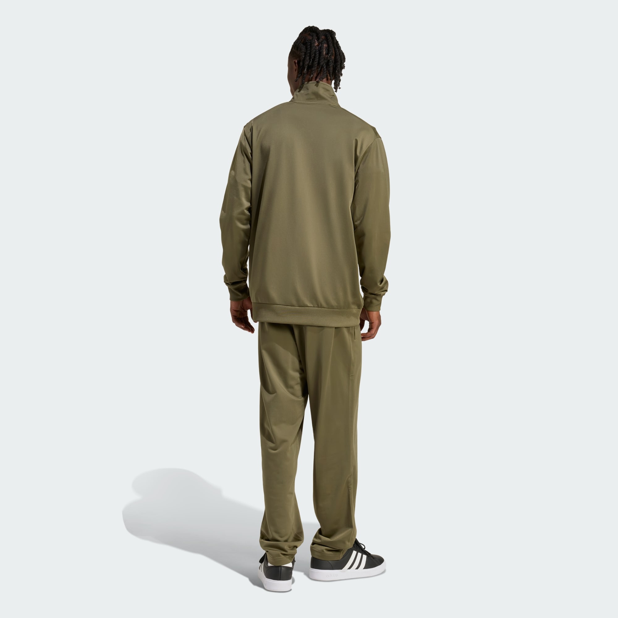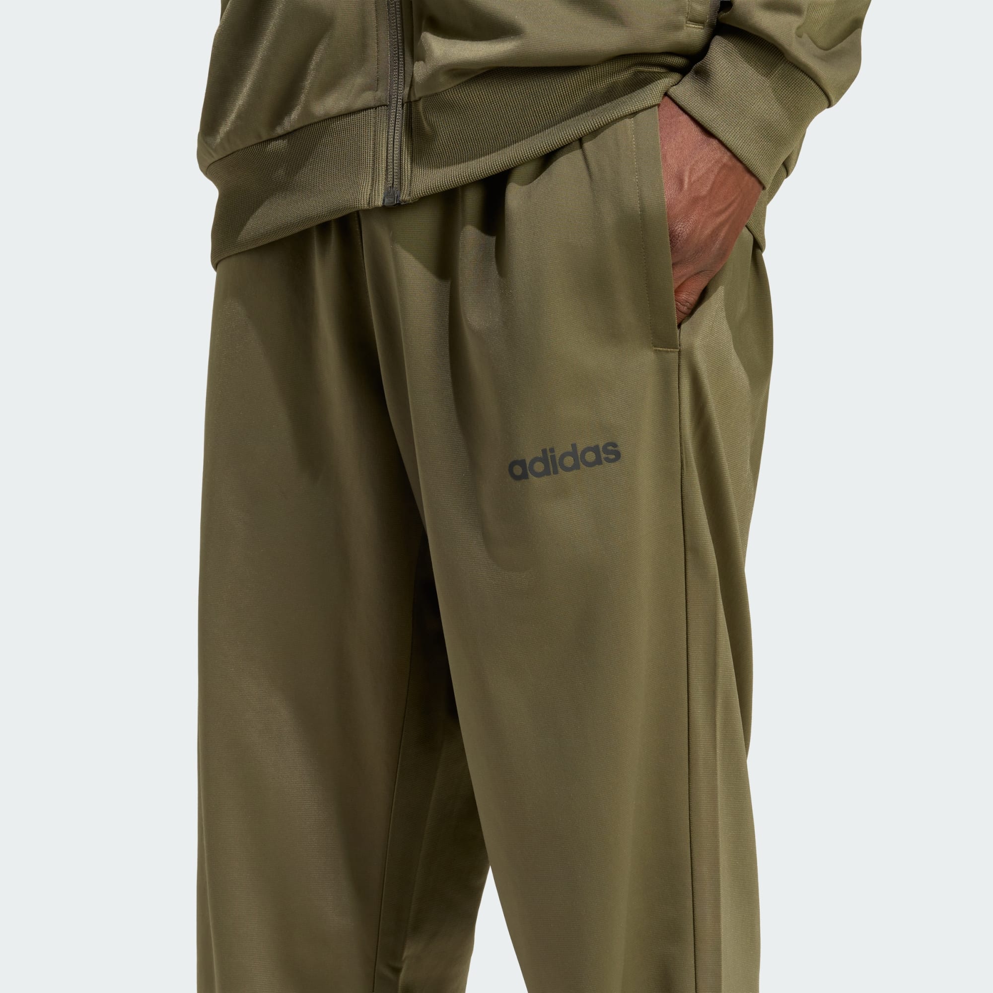 Este agasalho da adidas tem tudo a ver com estilo fácil. Vista uma malha suave e macia e você estará pronto para sair. A gola alta oferece cobertura adicional e a cintura elástica com cordão ajustável garante o justo perfeito. Os bolsos da jaqueta e da calça guardam sua identidade e chaves.
