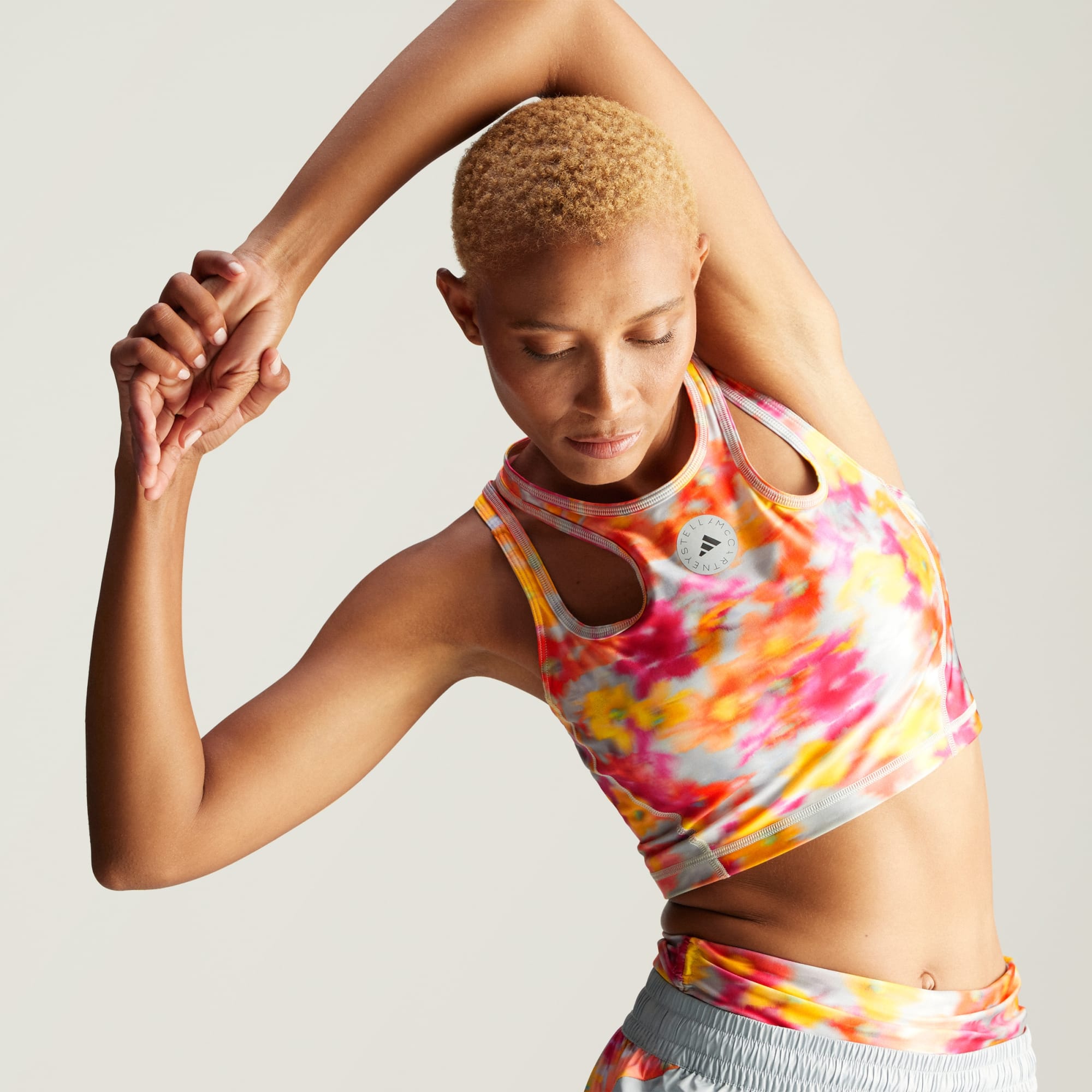O mundo está girando o tempo todo. O que não é uma coisa ruim, e também é parte da razão pela qual nos encontramos indo para o treino — para nos equilibrarmos. Esta camiseta cropped adidas by Stella McCartney representa a fusão dos mundos físico, digital e biológico pelos quais todos nós transitamos, com sua estampa floral vibrante. À medida que nos movemos, a estrutura de suporte garante que você se sinta bem, graças ao ajuste firme e elástico. Bojos removíveis oferecem cobertura e suporte para corridas em treinos intervalados de alta intensidade. Este produto é feito com pelo menos 70% de materiais reciclados. Ao escolher o reciclado, podemos reutilizar materiais já criados, o que ajuda a reduzir o desperdício e a nossa dependência de recursos finitos, além de reduzir a pegada dos produtos que fabricamos.