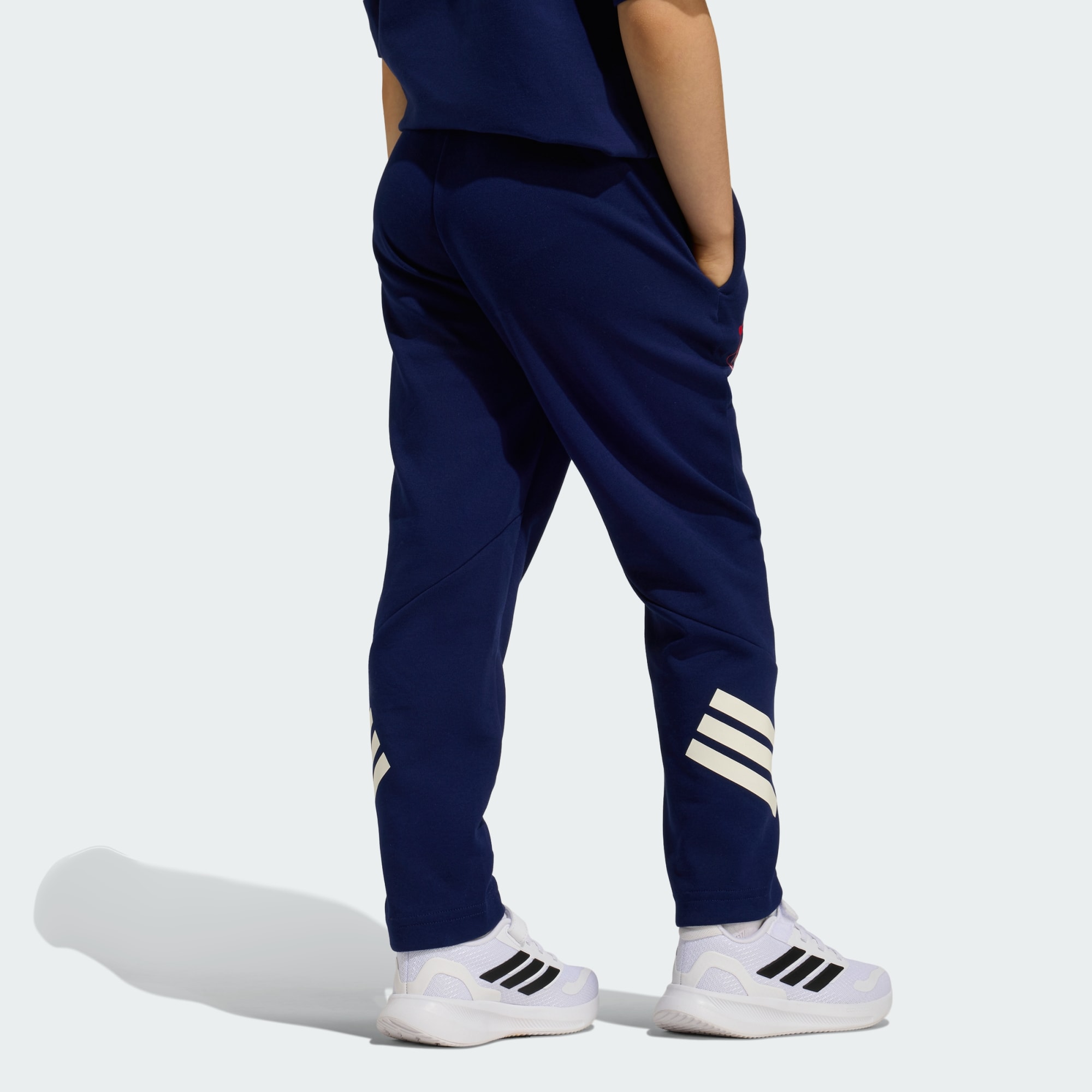 A CALÇA adidas MARVEL HOMEM-ARANHA traz o espírito de super-herói para as aventuras diárias das crianças. Parte da coleção Future Icons, ela equilibra conforto e estilo para a hora do recreio, da escola ou dos esportes. Feitas de um interlock durável, essas calças jogger são macias contra a pele delicada, mas foram feitas para suportar o desgaste. A cintura média oferece uma modelagem firme que se move com o corpo, enquanto as pernas afuniladas mantêm o visual moderno. O branding adidas e as Três Listras exclusivas conectam as calças jogger à herança esportiva, enquanto os gráficos arrojados do Homem-Aranha adicionam personalidade ao visual e trazem uma energia que certamente se conectará com as crianças.
