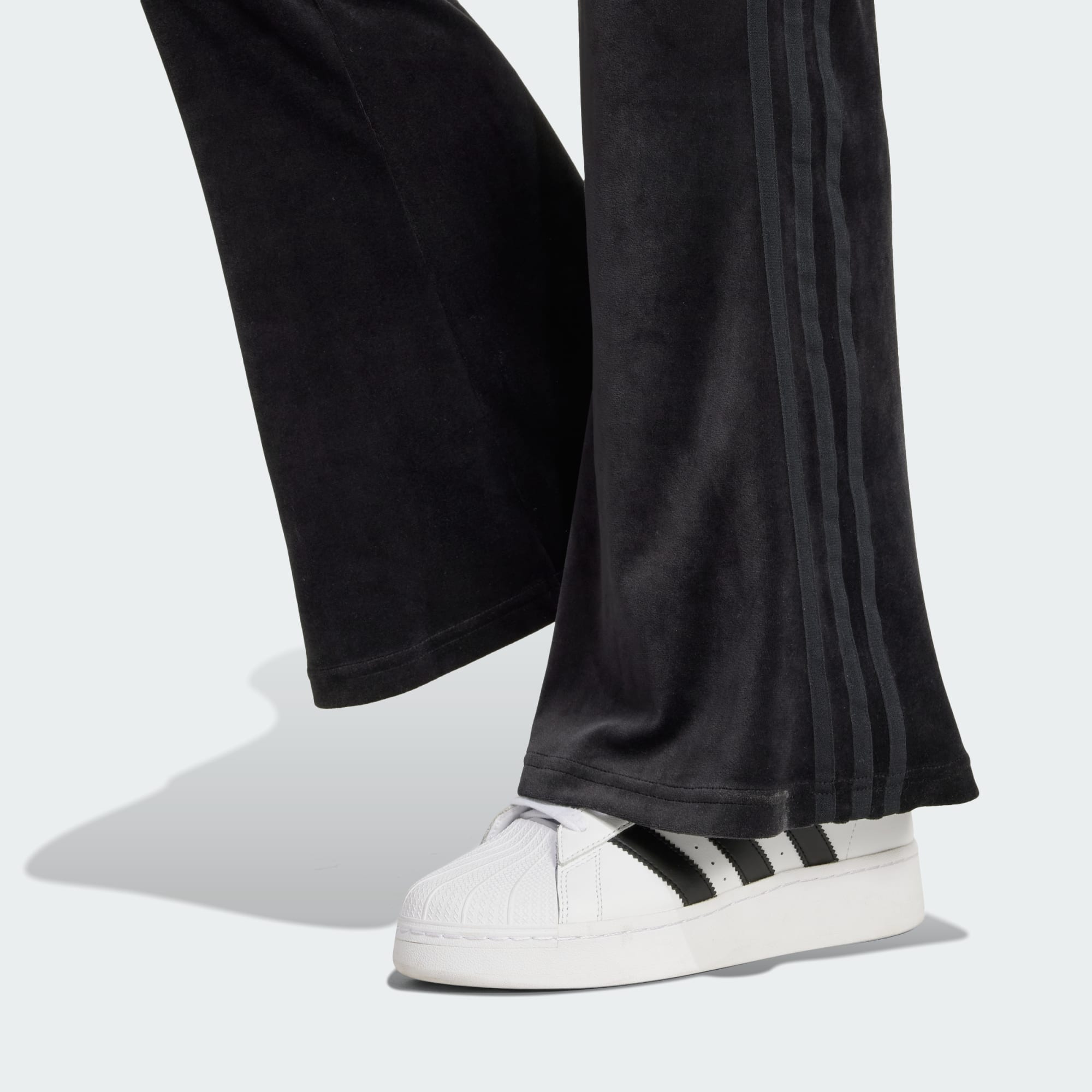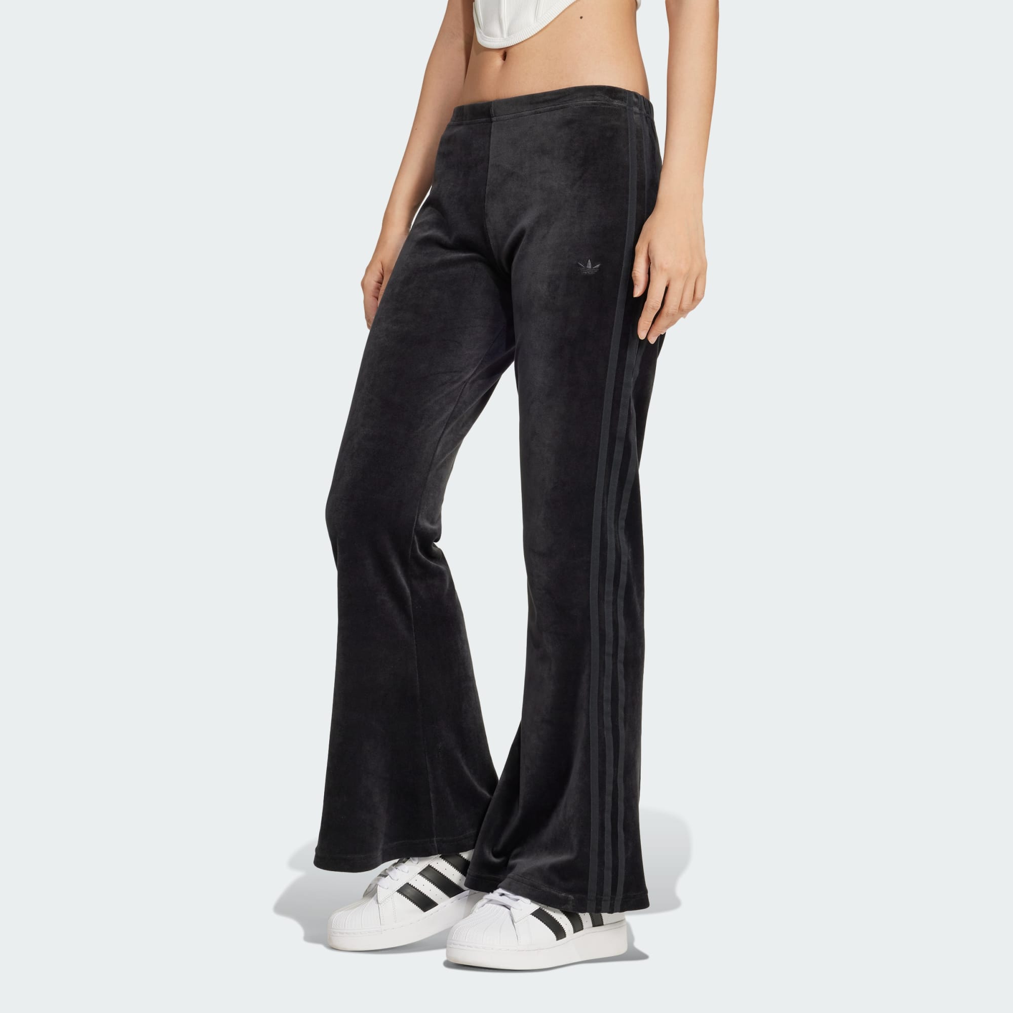 Inspirada nos anos 70, esta calça adidas é ideal para absolutamente qualquer ocasião. Feita de veludo amassado macio, ela possui cintura alta e pernas boca de sino drapeadas abaixo da parte mais justa. A cintura elástica garante o conforto e fica linda tanto com uma camiseta quanto com uma jaqueta folgada. Este produto é feito com pelo menos 70% de materiais reciclados. Ao reutilizar materiais que já foram criados, ajudamos a reduzir o desperdício e a nossa dependência de recursos não renováveis, além de reduzir a pegada dos produtos que fabricamos.