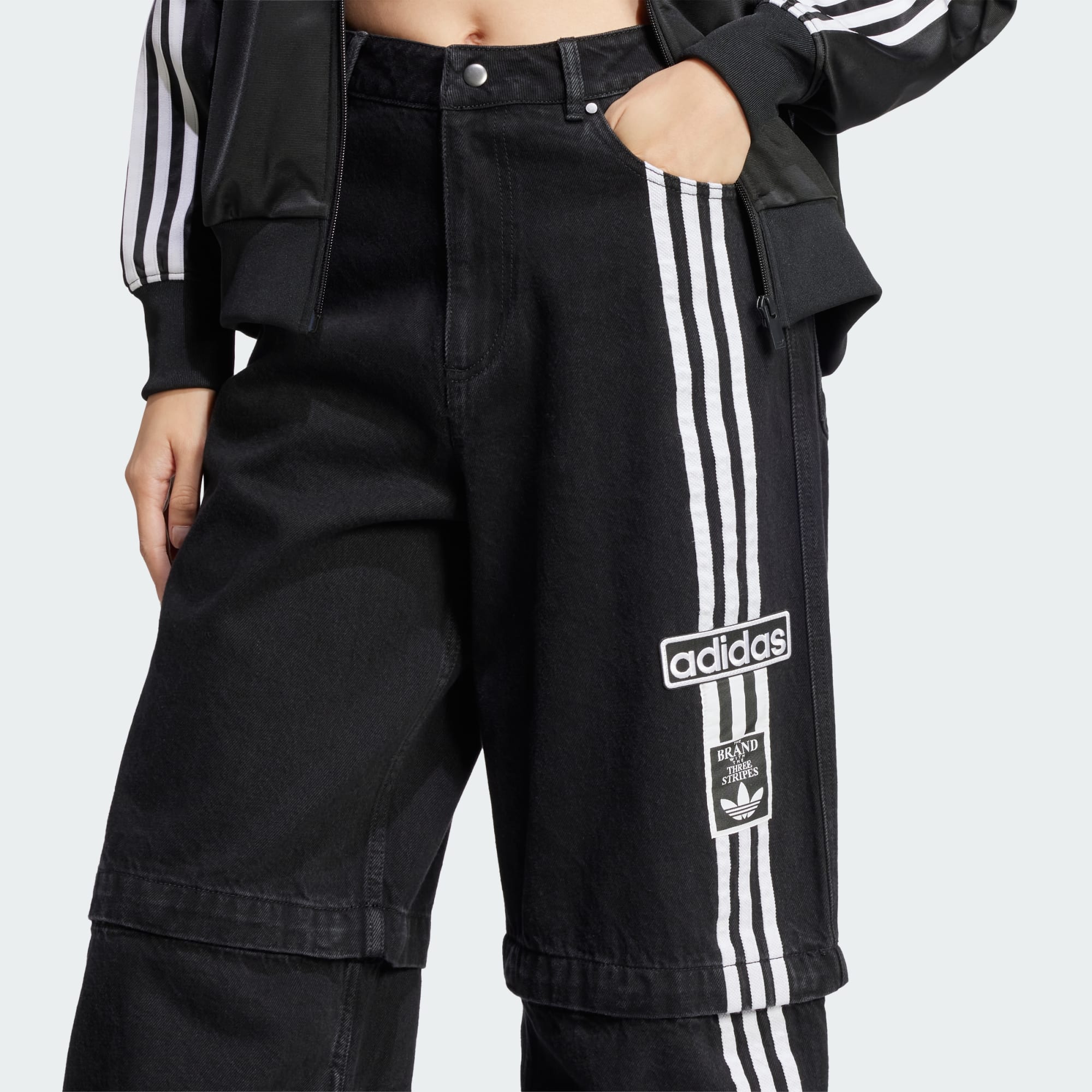 Se bateu a nostalgia dos anos 90, esta calça adidas é a escolha perfeita. Você pode usá-la como shorts longo ou jeans de cintura alta. Com botões de pressão na parte inferior das pernas, ela reinventa a clássica calça rasgada, um ícone da época, com um toque moderno.