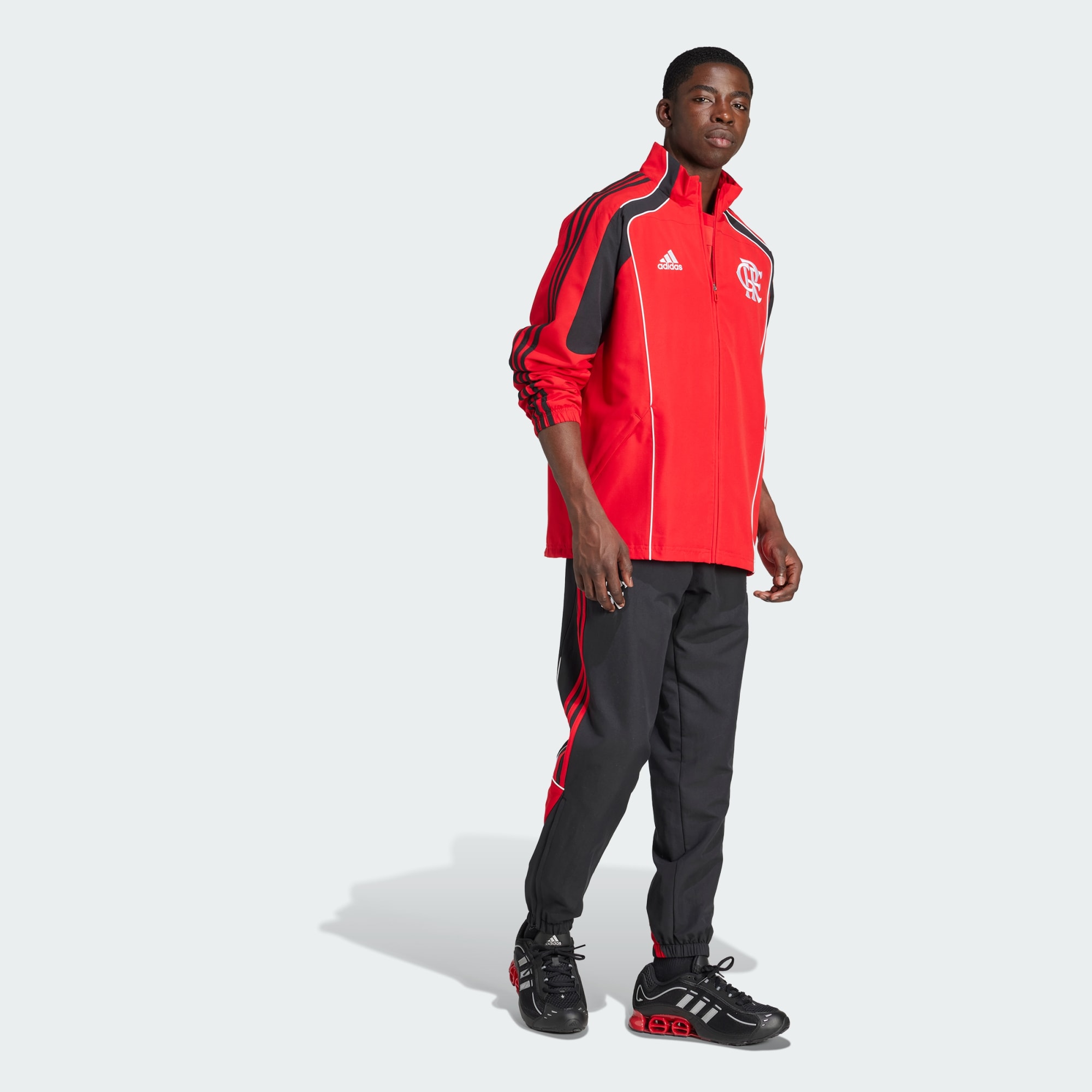 Represente o CR Flamengo fora do campo com esta calça esportiva da adidas. Criadas para fazer você voltar no tempo, elas apresentam um design com 3 listras em estilo retrô e o importante escudo do clube. O tecido liso e macio significa que você se manterá confortável enquanto demonstra seu apoio.