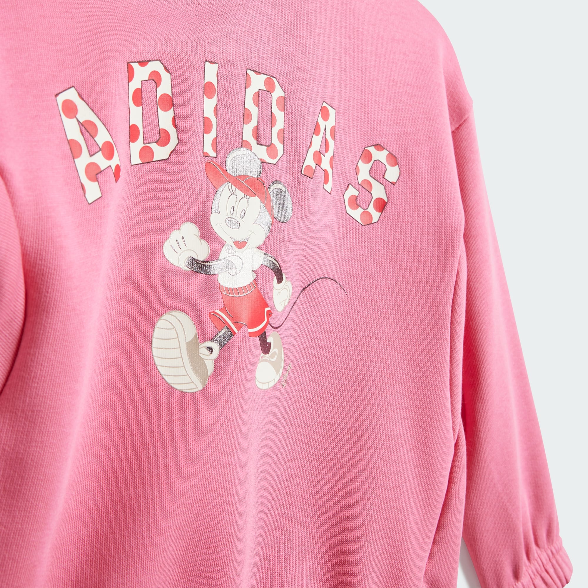 Este conjunto de moletom infantil da adidas, com bolinhas e detalhes em glitter, traz um toque de magia e diversão ao look da sua pequena. O moletinho macio mantém as pernas confortáveis enquanto as crianças engatinham e brincam. A amigável Minnie Mouse da Disney sorri na frente do moletom, pronta para entrar na diversão.