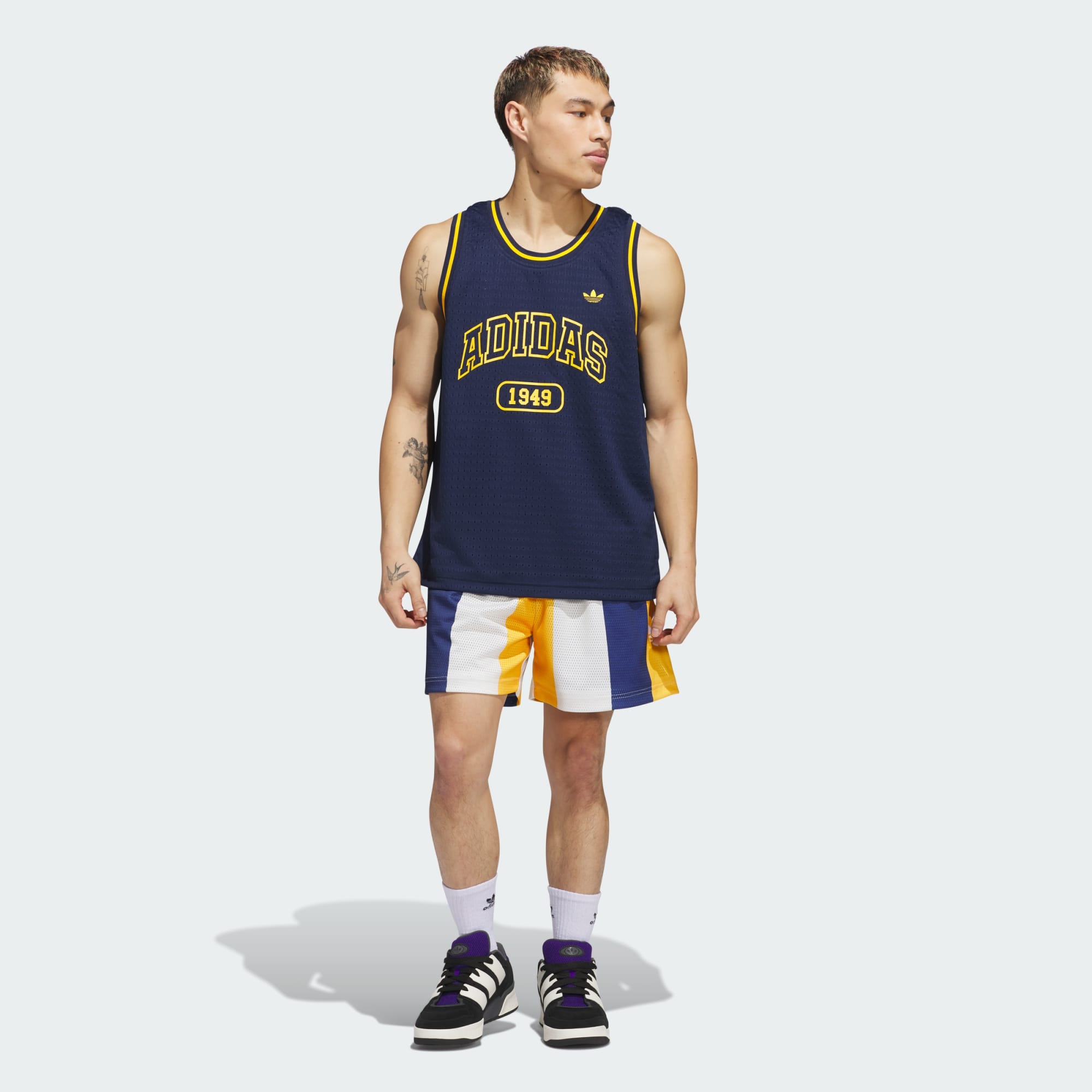 Preste homenagem ao jogo com esta camisa de basquete adidas. A estrutura em malha elástica mantém você refrescado, seja mostrando suas habilidades nas quadras ou seu estilo fora delas. A estampa inspirada nos anos 70 remete à era em que o basquete se tornou um fenômeno global.
