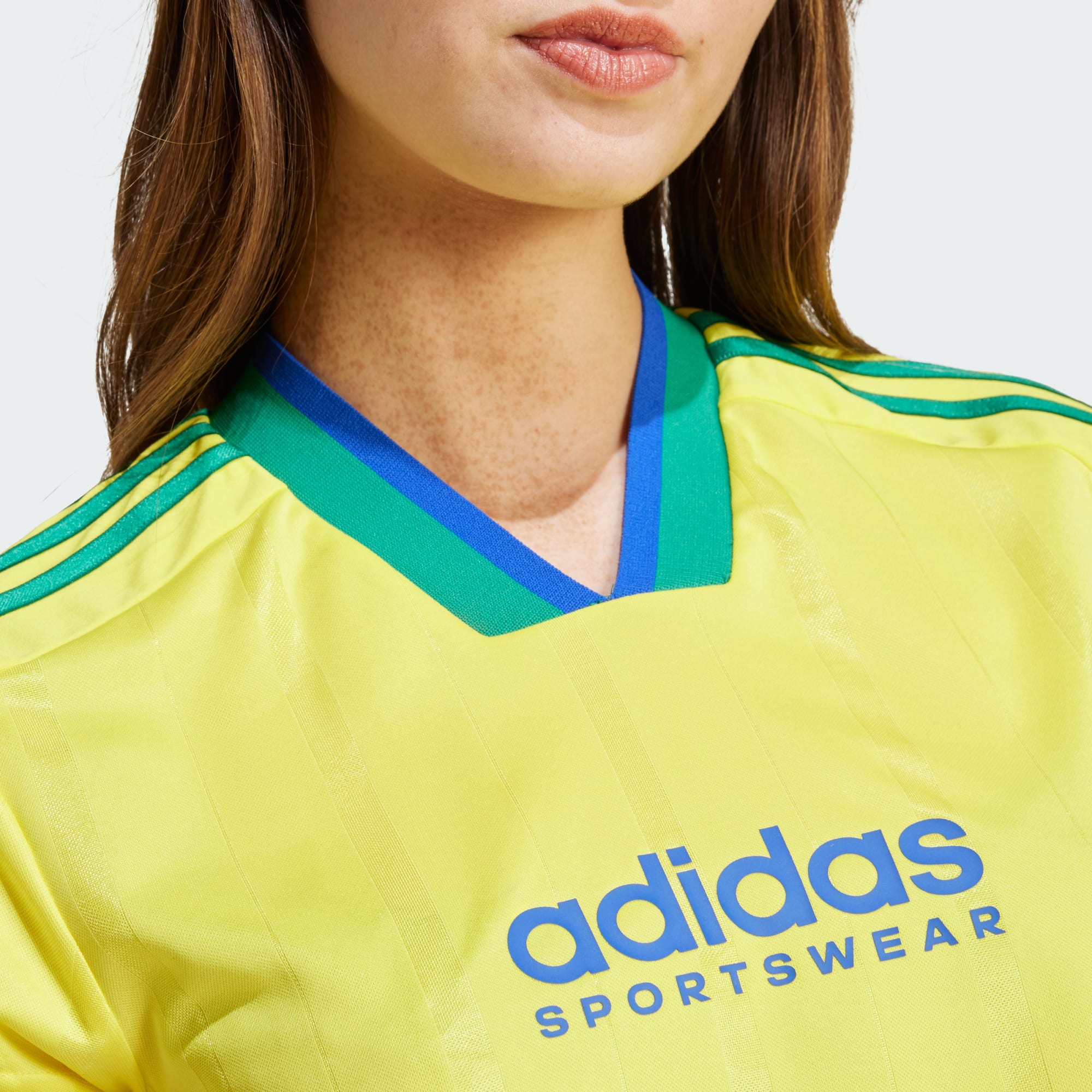 Seja para ir a um show ou curtir o fim de semana, esta camisa adidas adiciona um estilo inspirado no futebol ao seu look casual. O tecido de malha dupla possui toque macio na pele e o corte cropped adiciona um toque fashion. Nascida do futebol, mas reimaginada para o dia a dia, as listras largas e a gola V canelada mantêm as raízes no esporte. Combinada com leggings ou jeans, esta camiseta transita perfeitamente do dia para a noite. Este produto é 100% feito com materiais reciclados. Ao escolher o reciclado, podemos reutilizar materiais já criados, o que ajuda a reduzir o desperdício e a nossa dependência de recursos finitos, além de reduzir a pegada dos produtos que fabricamos.