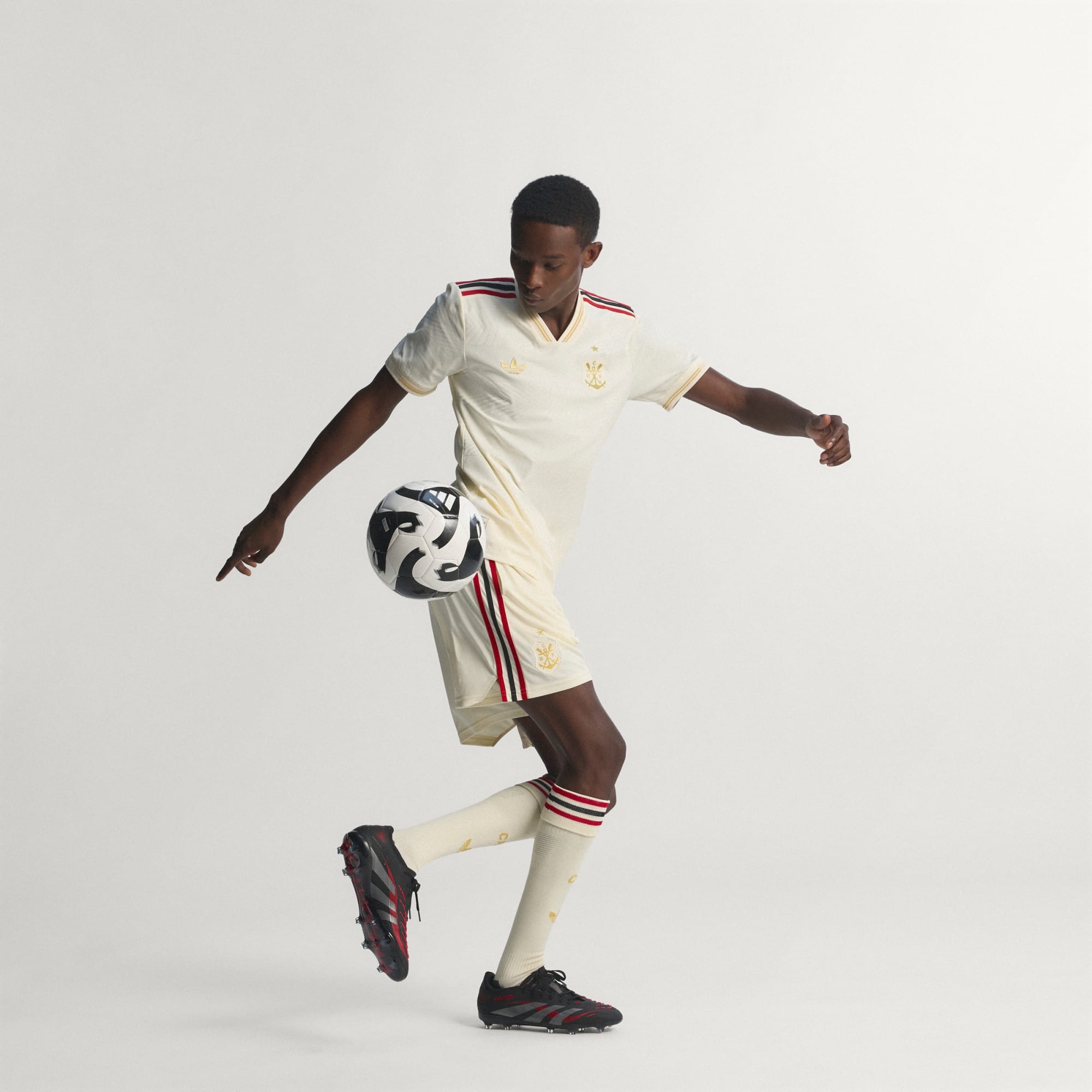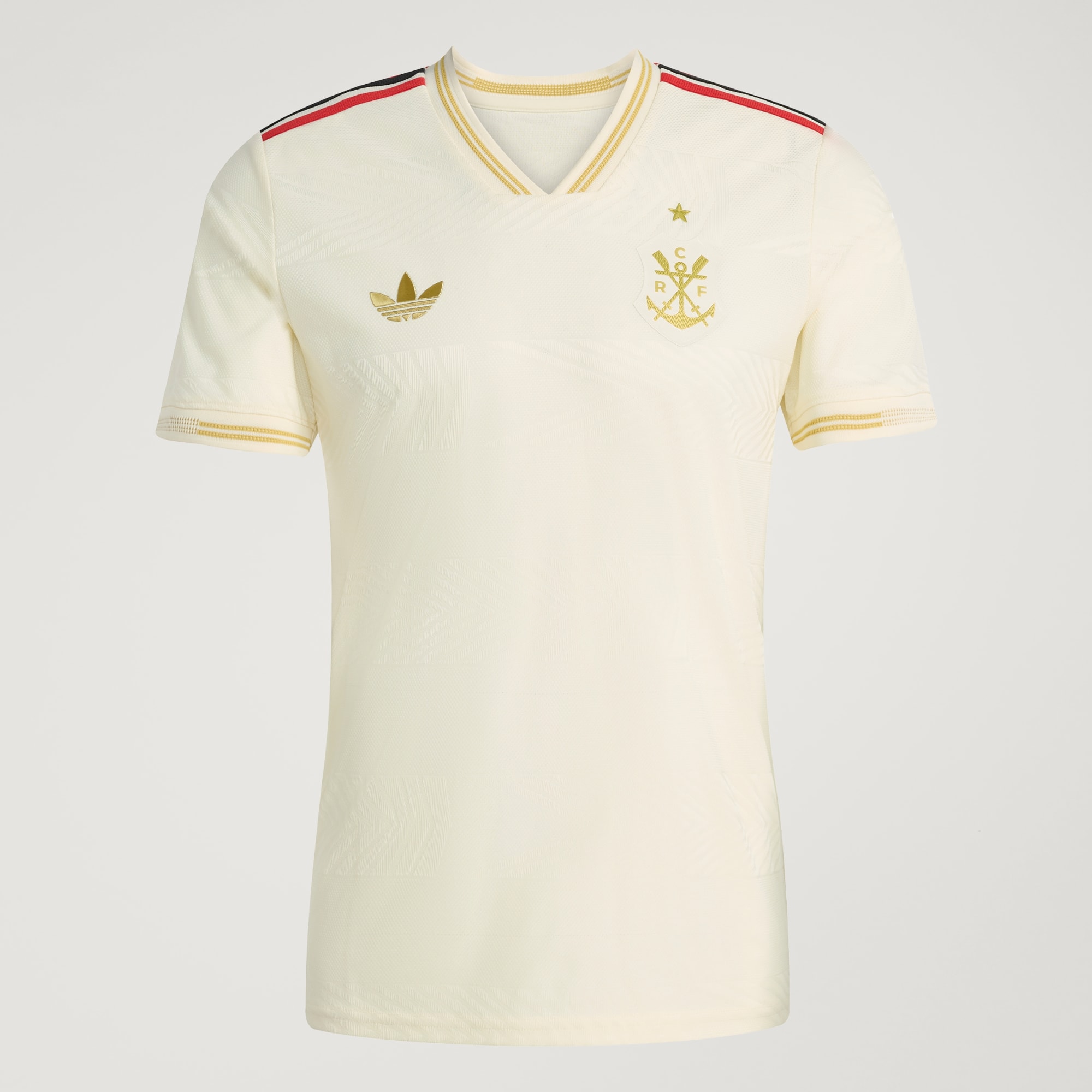Com 130 anos de futebol brilhante na esteira do CR Flamengo, esta elegante terceira Camiseta de malha autêntica adidas homenageia as origens do clube de regatas. Faz uma declaração com um emblema vintage, detalhes em ouro e argolas sutis criadas a partir de uma engenharia inspirada no movimento de remadas. Seu design de alta performance e o tecido leve proporcionam um jogo focado toda vez que você entra em campo.