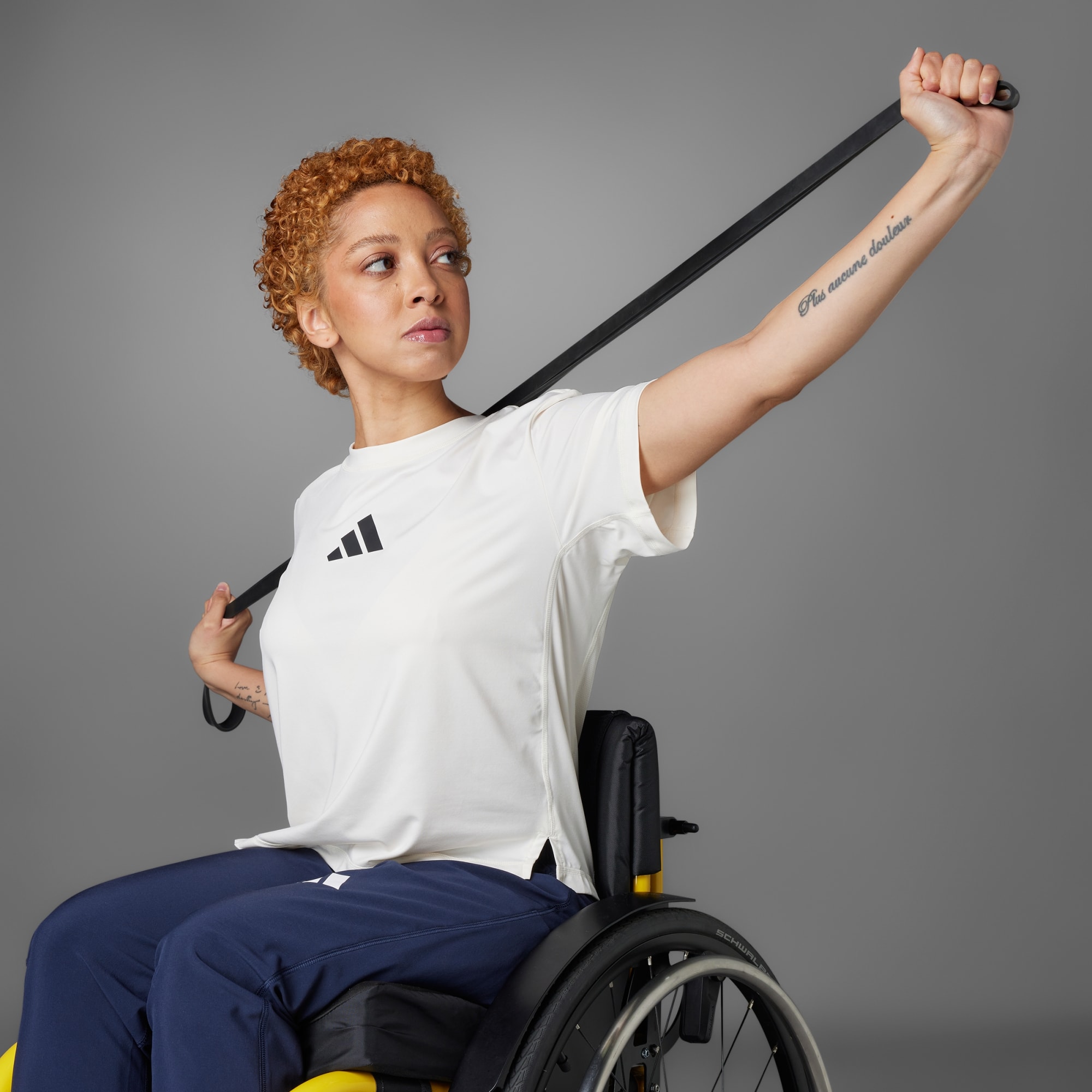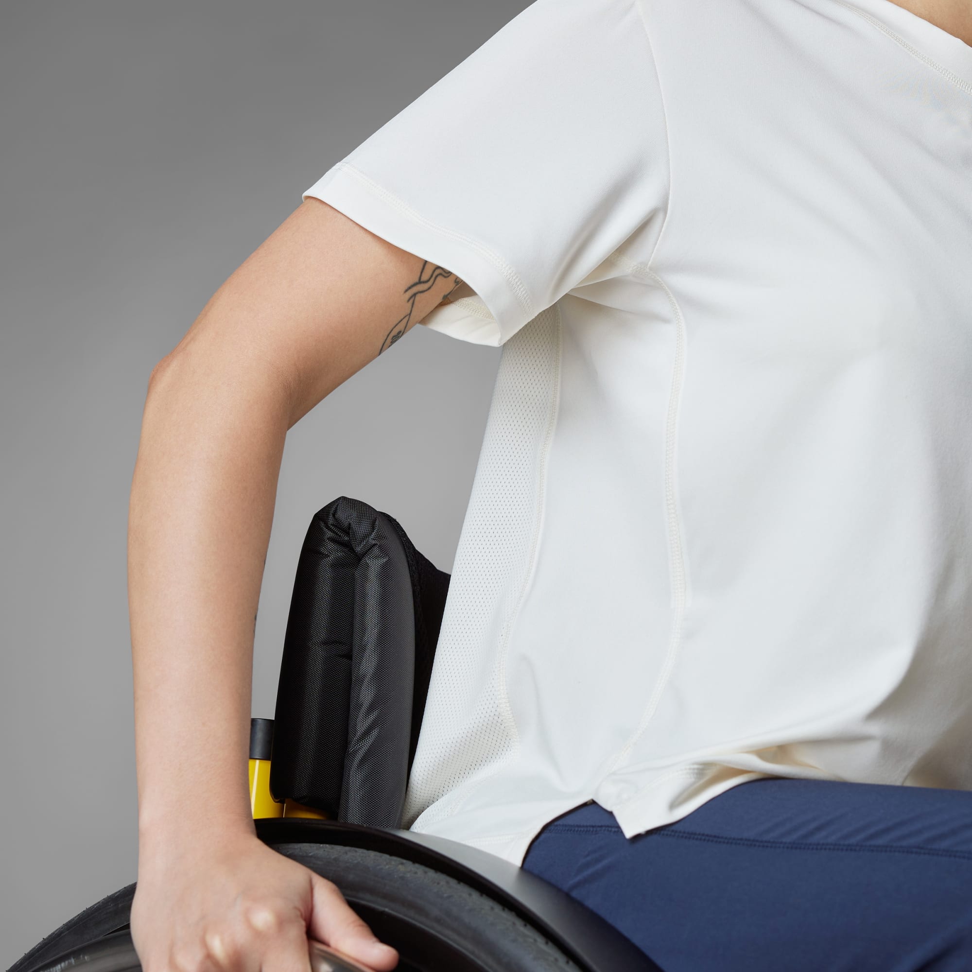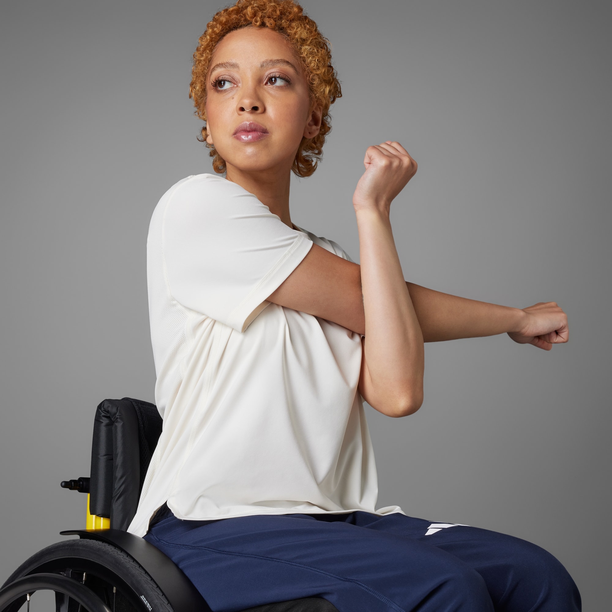Desenvolvida especificamente para atletas que utilizam cadeira de rodas, esta camiseta de treino adidas é levemente mais curta na frente e tem malha elástica respirável nas costas para ventilação extra. O tecido AEROREADY antissuor mantém seu corpo seco enquanto o calor aumenta. Uma pequena alça para o polegar na gola facilita e agiliza as mudanças. Este produto é feito com pelo menos 70% de materiais reciclados. Ao escolher o reciclado, podemos reutilizar materiais já criados, o que ajuda a reduzir o desperdício e a nossa dependência de recursos finitos, além de reduzir a pegada dos produtos que fabricamos.