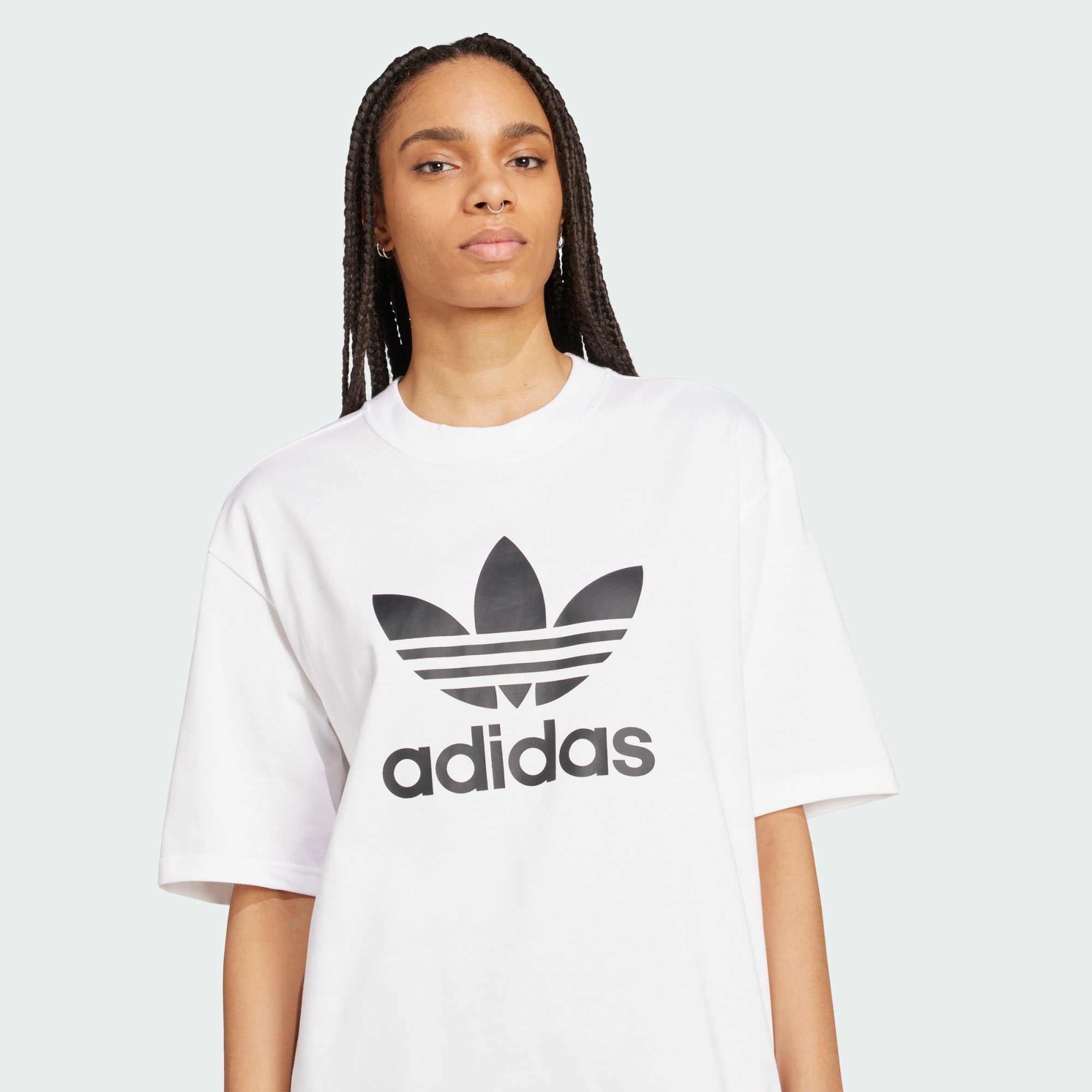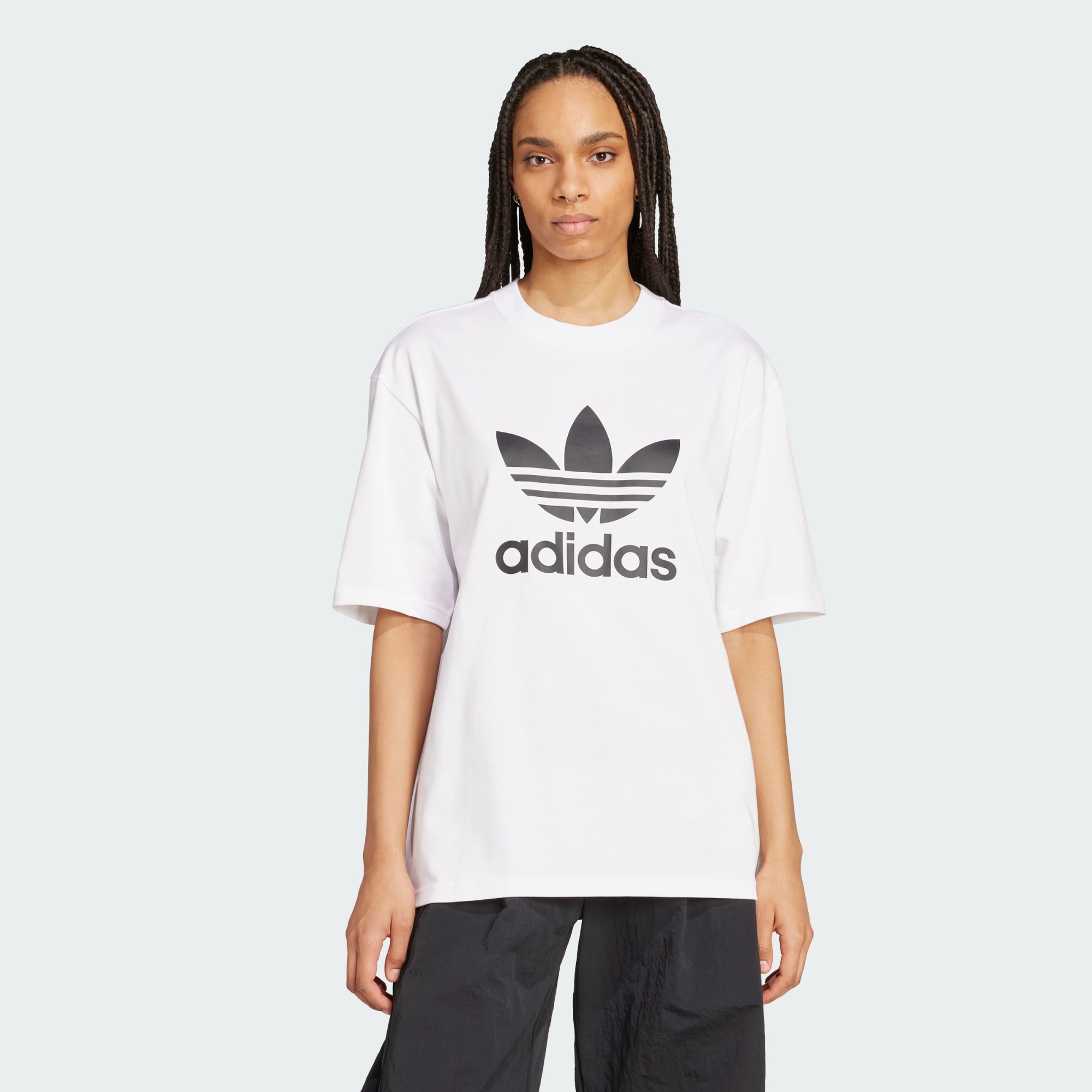 O logo Trefoil é uma parte icônica do legado da adidas. Esta camiseta celebra essa herança com uma versão oversized do logo na parte de trás. Não importa se o dia é de descanso em casa ou de aventura por aí — o tecido macio e o caimento descomplicado combinam com tudo, de legging a jeans ou jogger.