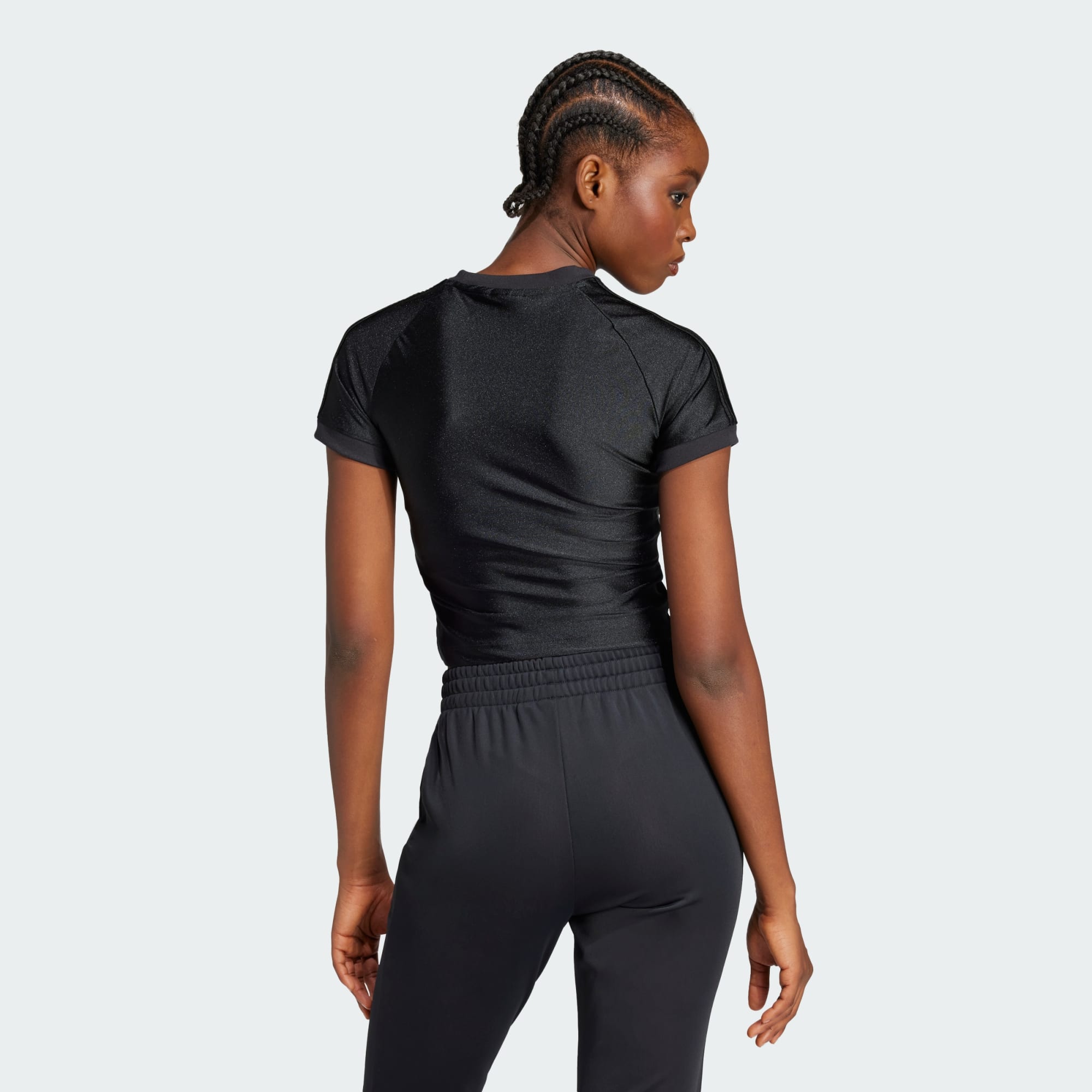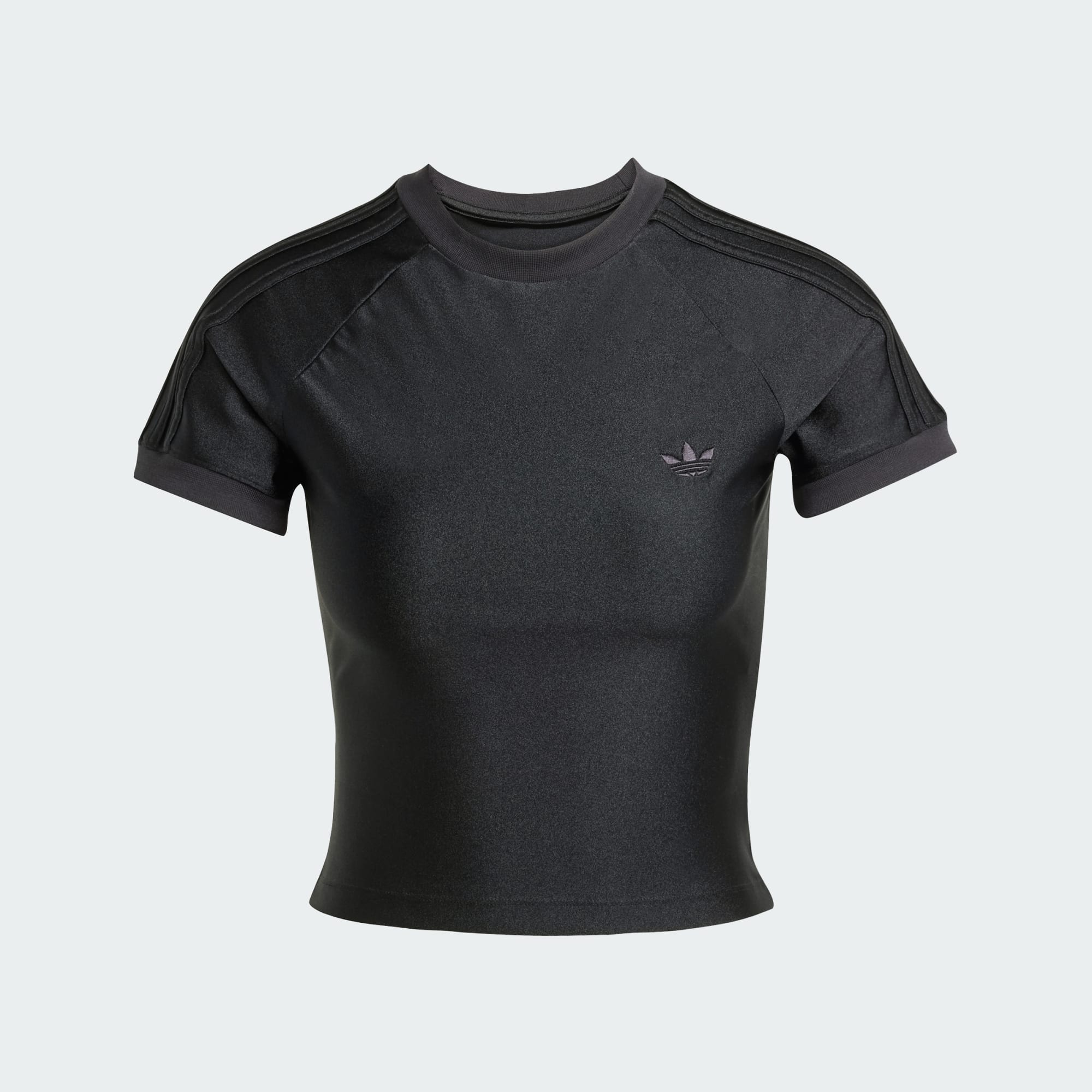 Uma camiseta adidas brilhante e colada ao corpo com uma linha de corte de arquivo.