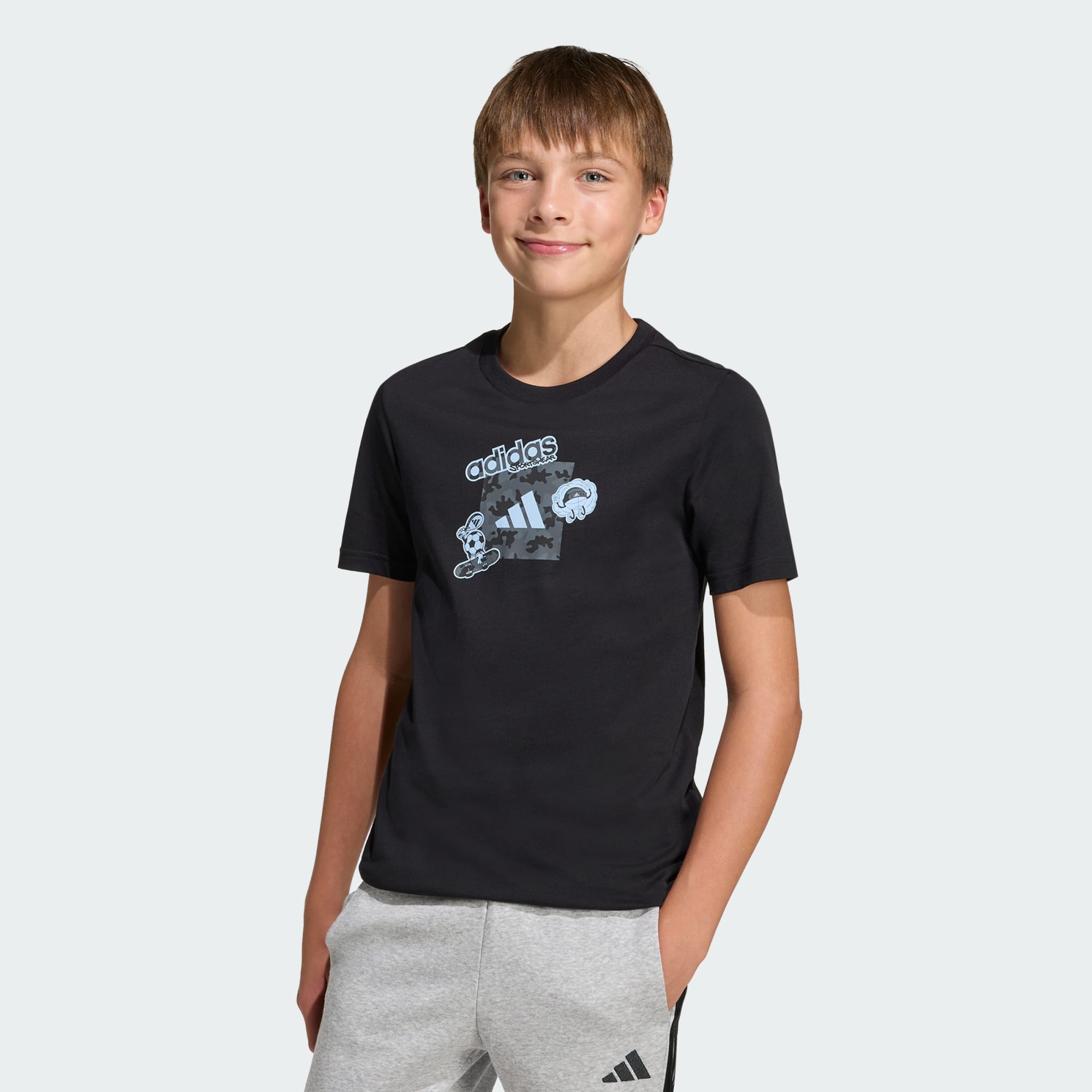 Projetada para acompanhar as crianças em movimento, a Camiseta Camo Graphic oferece um estilo camuflado diferenciado e um toque esportivo descolado. De aventuras a explorações, é uma adição divertida à linha do dia a dia. Confeccionada em malha simples e macia, esta camiseta de malha tem um toque suave na pele, oferecendo conforto leve para o uso diário. A estampa camuflada adiciona um toque marcante, tornando-a a favorita das crianças que gostam de se destacar. Do esporte no parque a um dia na sala de aula, seu filho pode canalizar seu espírito aventureiro com uma camiseta que combine com seu ritmo e energia. Essa camiseta incorpora o compromisso da adidas de criar roupas que apoiem estilos de vida ativos.