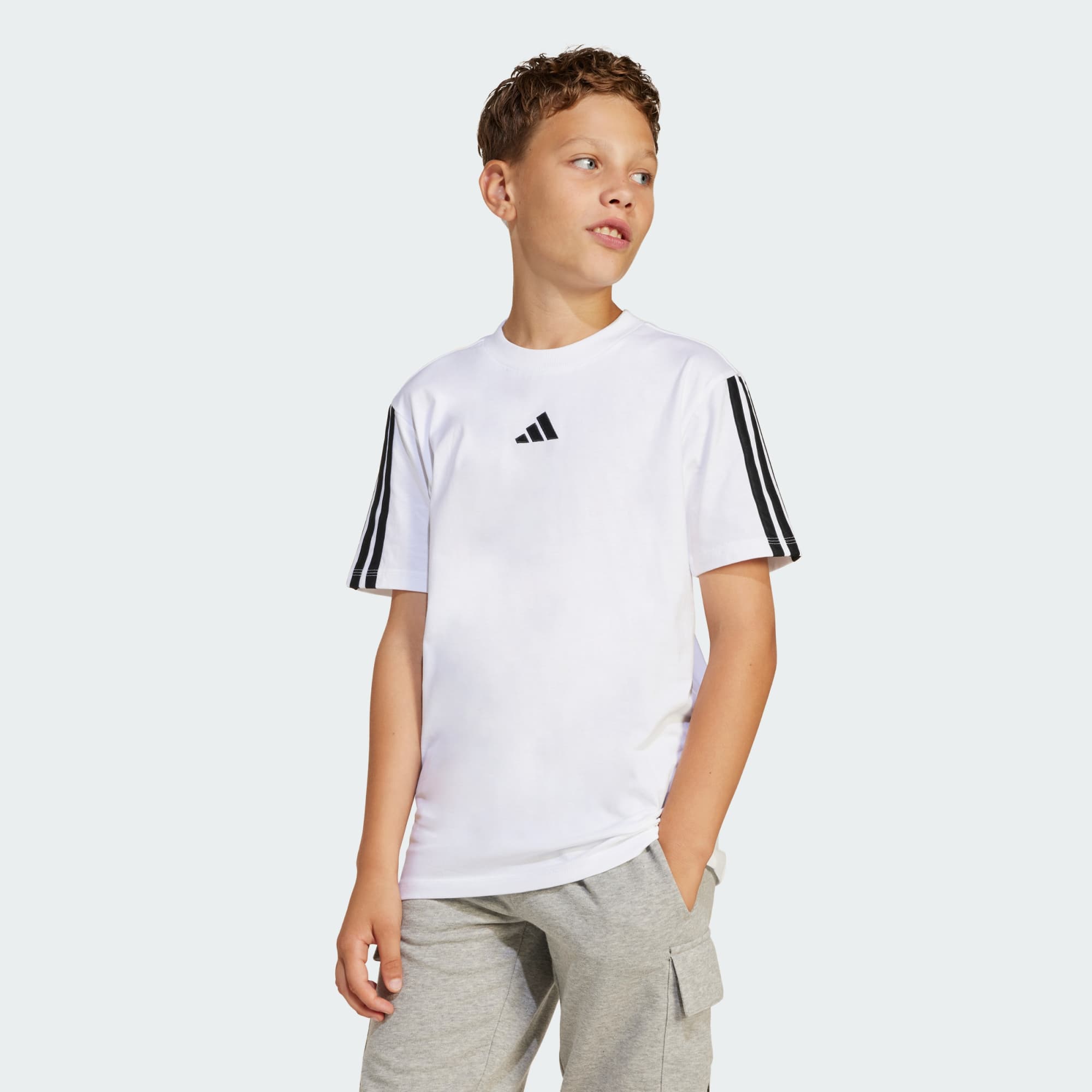 Casual e versátil, esta camiseta infantil adidas será a escolha certa para o seu guarda-roupa do dia a dia. O tecido macio e o ajuste clássico mantêm você confortável, seja para cumprir as suas tarefas ou sair com os amigos. Finalizada com as Três Listras autênticas e um logo bordado, esta camiseta transita facilmente do dia para a noite.