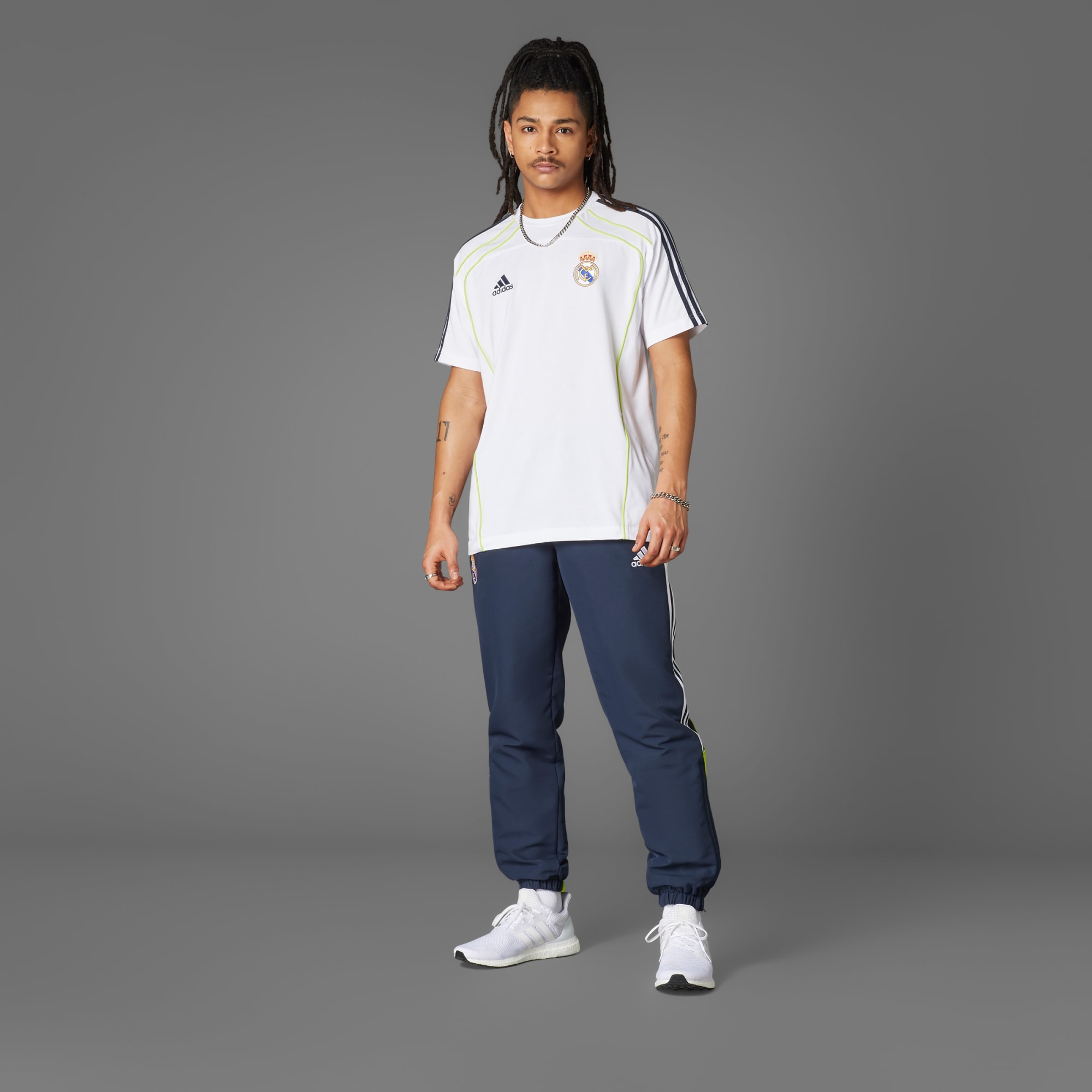 Mostre sua paixão pelo Real Madrid com esta camiseta clean e clássica adidas. Criada para transmitir a vibe dos dias de jogo dos anos 2010, ela é feita de malha simples macia para oferecer conforto respirável toda vez que você a veste. Bordado no peito, o famoso escudo do clube tem sido um símbolo de excelência em cada era do futebol. Ao escolher reciclados, podemos reutilizar materiais que já foram criados, o que ajuda a reduzir os resíduos. As opções de materiais renováveis também nos ajudam a reduzir a nossa dependência de recursos finitos. Os nossos produtos feitos com uma mistura de materiais reciclados e renováveis contam com pelo menos 70% desses materiais no total.