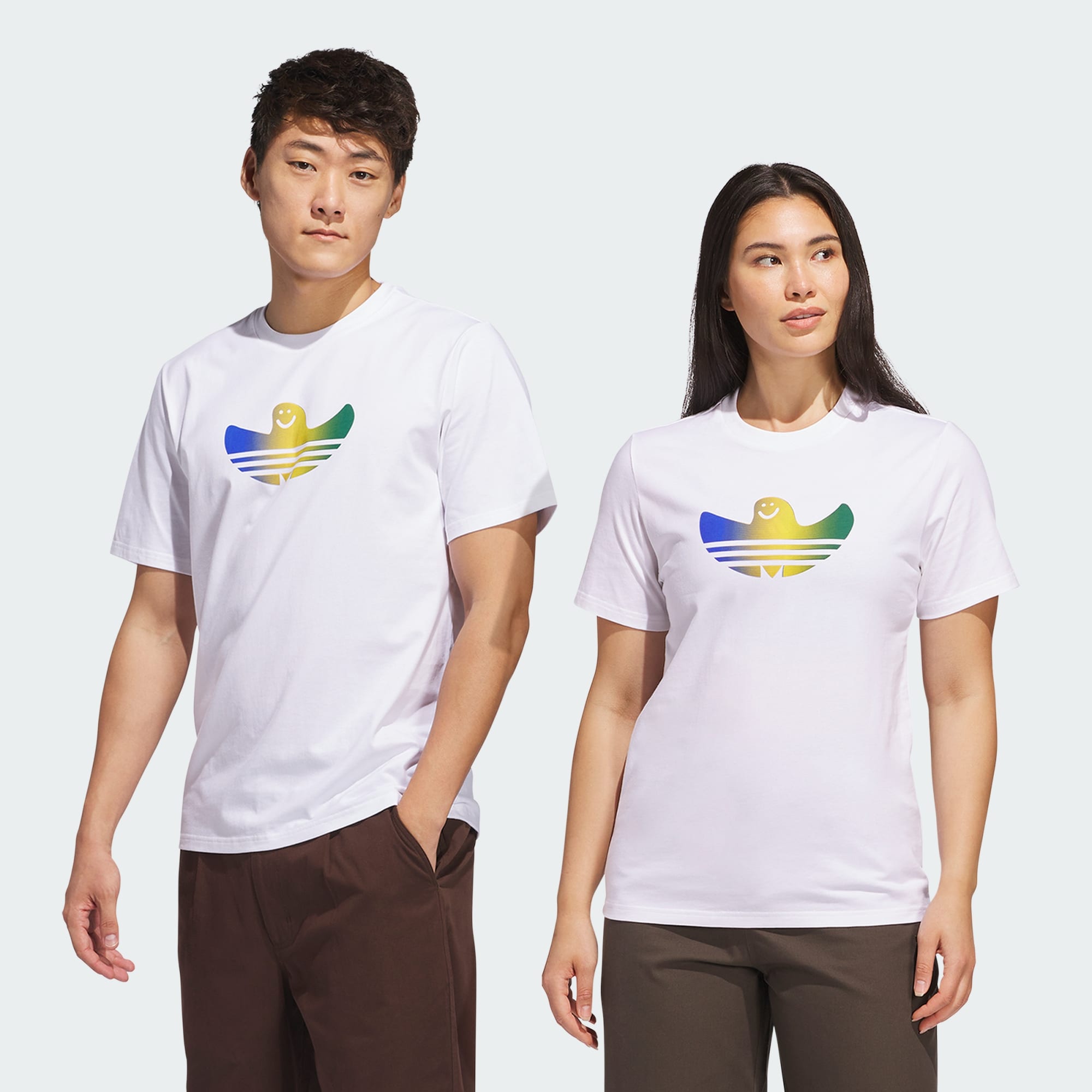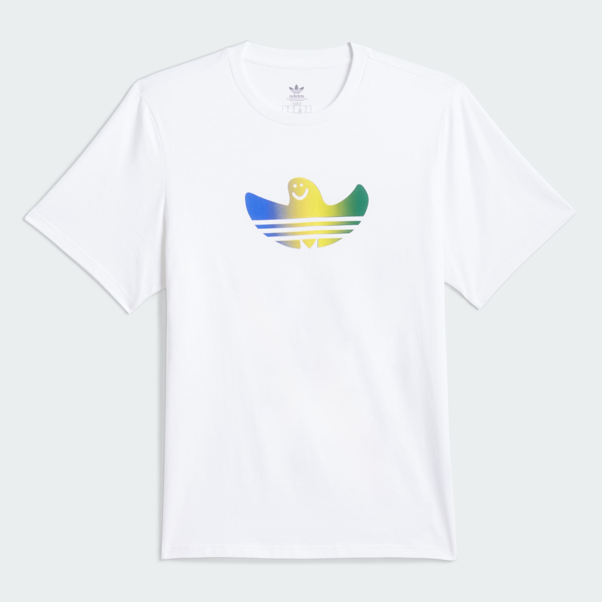 Uma versão gradiente da reinterpretação icônica do logo adidas Trefoil por Mark Gonzales, a camiseta Shmoofoil Fill apresenta ajuste clássico e estrutura 100% algodão. Esta camiseta foi produzida com UNITEFIT, um sistema de ajuste para todos os gêneros, criado pensando em um variado espectro de tamanhos, corpos e formas.