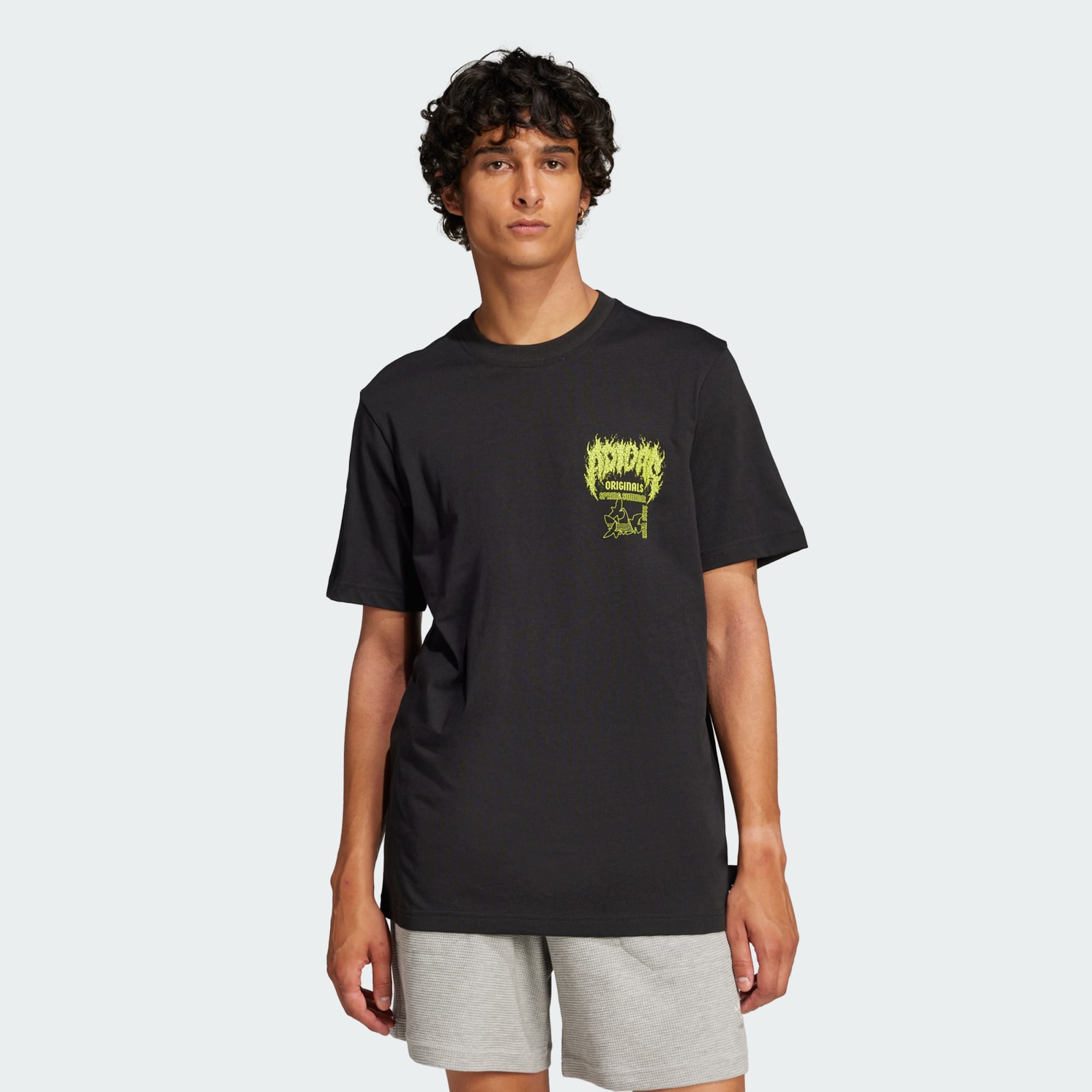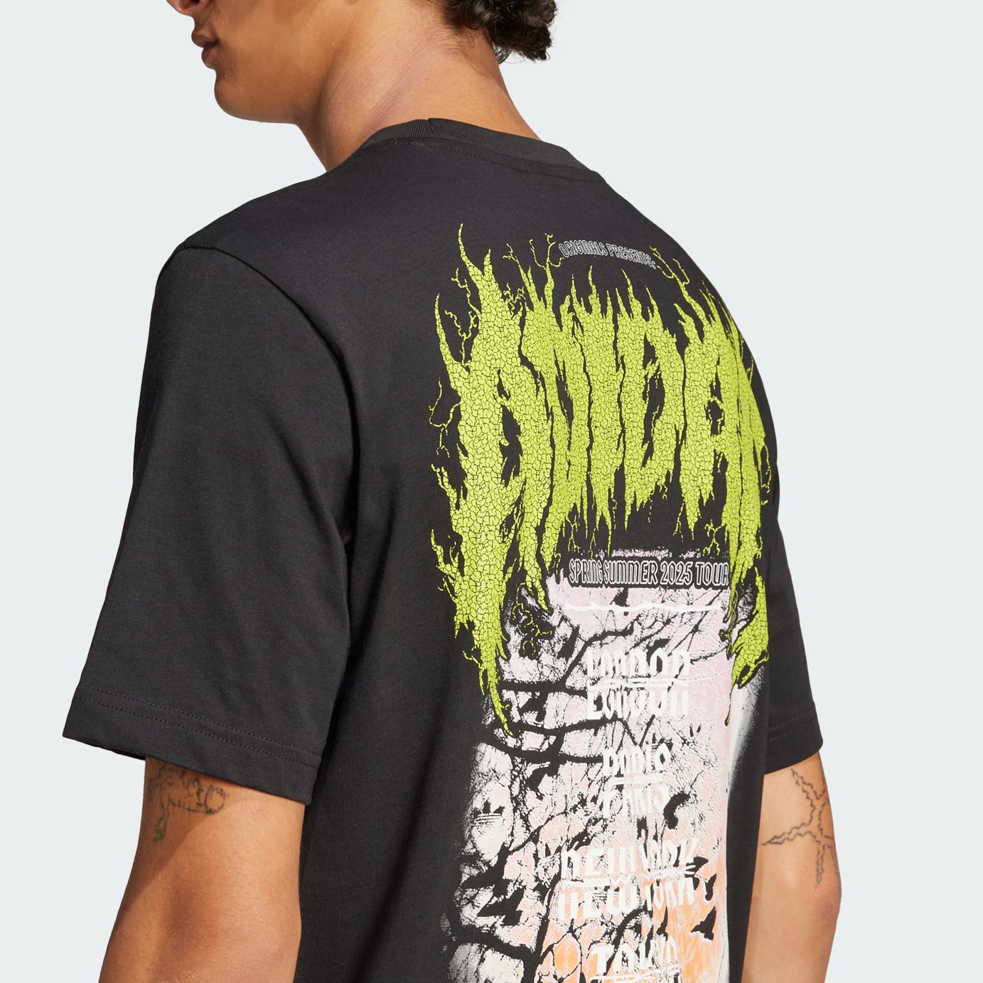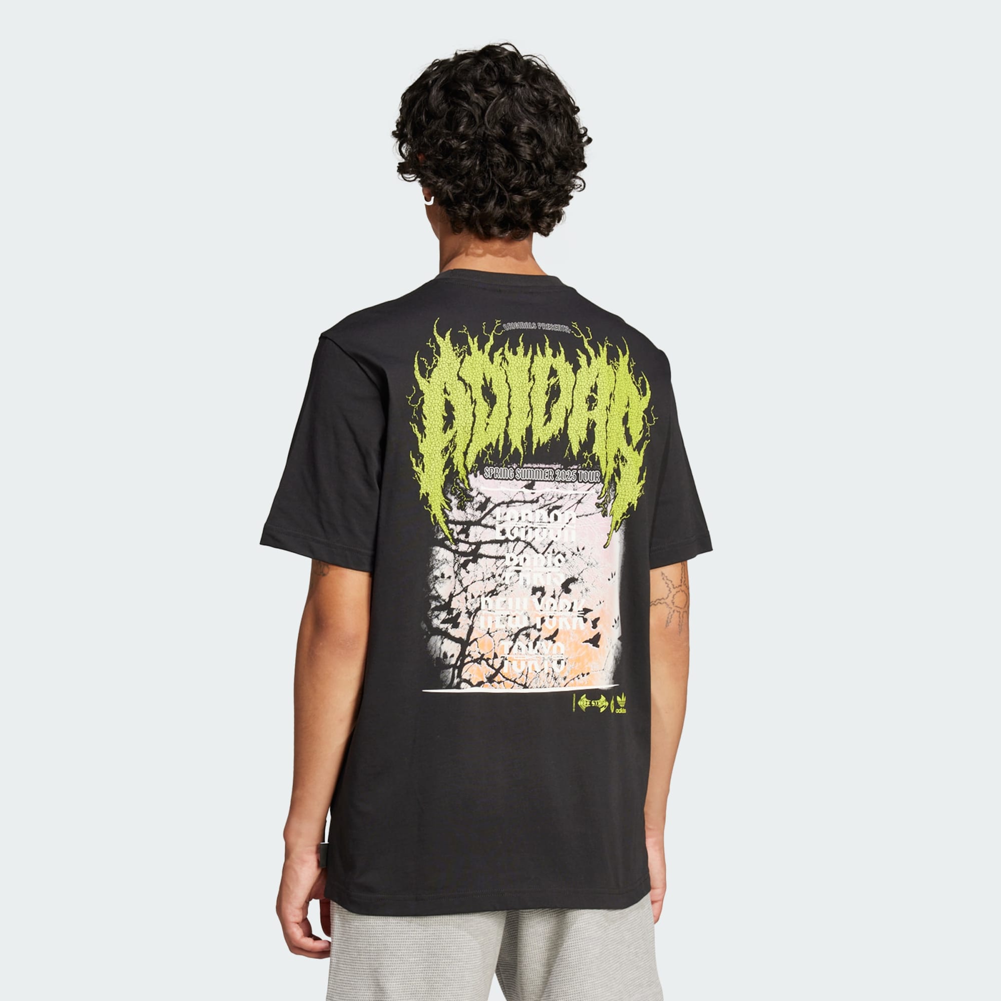 Feita para as ruas, mas com o apoio do esporte. Esta camiseta adidas é 100% feita de algodão, para manter você se movimentando confortavelmente o dia todo. A estampa grande nas costas e a menor no peito celebram a adidas Originals com um design inspirado em camisetas de concertos de Death Metal.