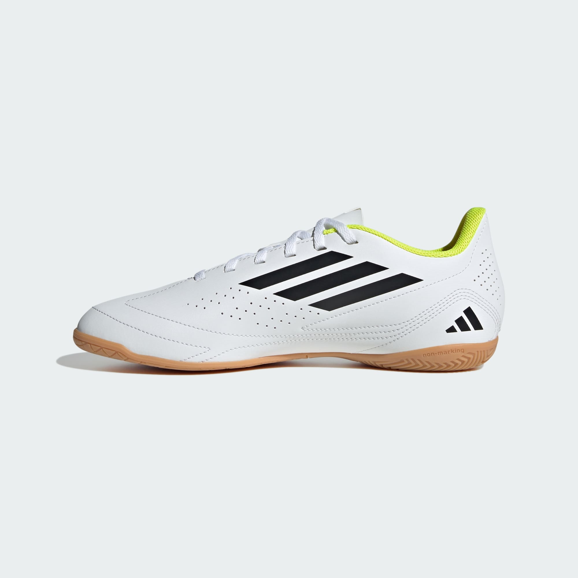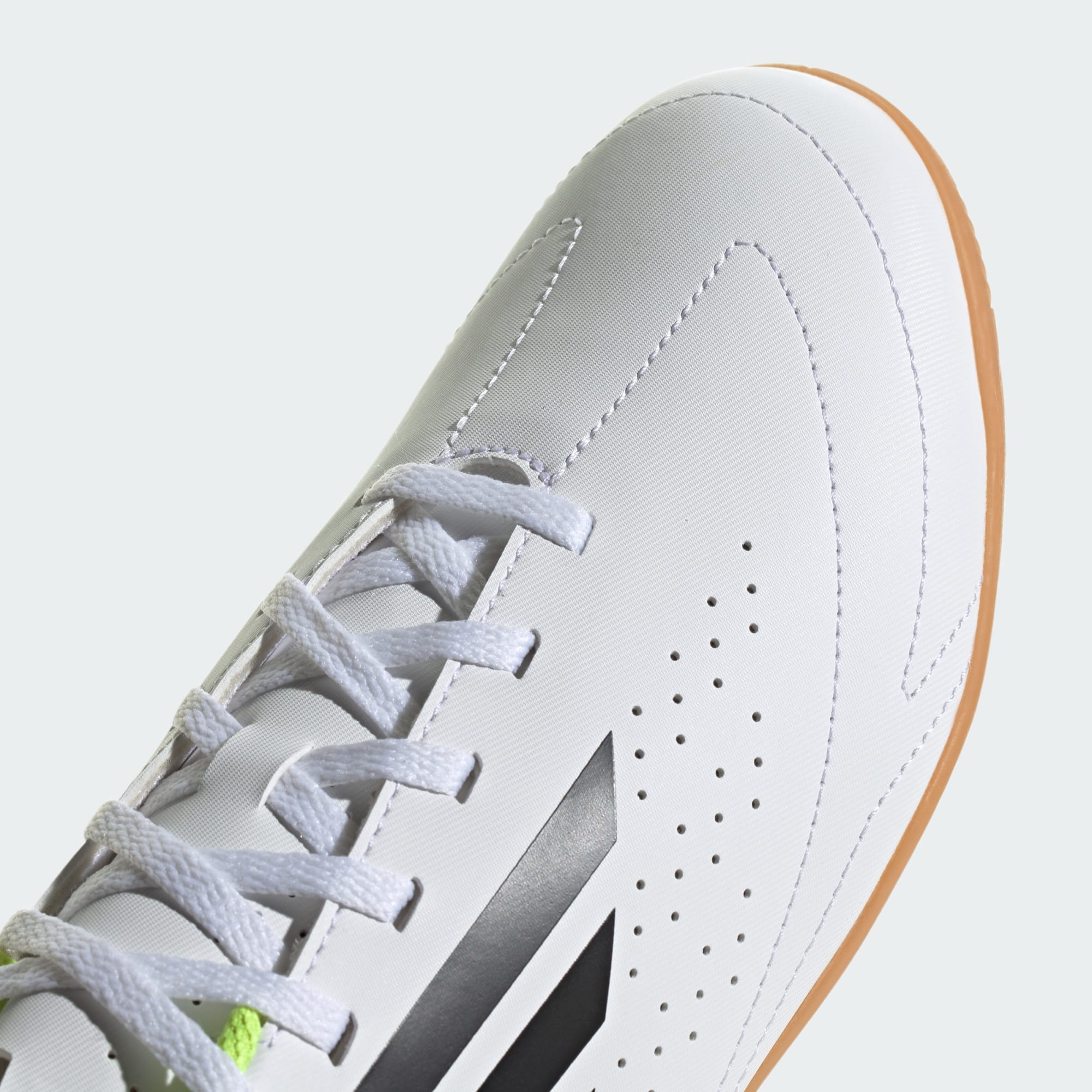 Leve o belo jogo a sério com essas chuteiras adidas. Projetadas para jogar em quadras, elas têm uma língua perfurada e um forro macio para manter seus pés frescos durante longas partidas. As costuras sintéticas na ponta do pé melhoram o controle de bola, permitindo passes precisos e chutes potentes. O calcanhar com formato anatômico mantém os pés firmes para jogos rápidos.