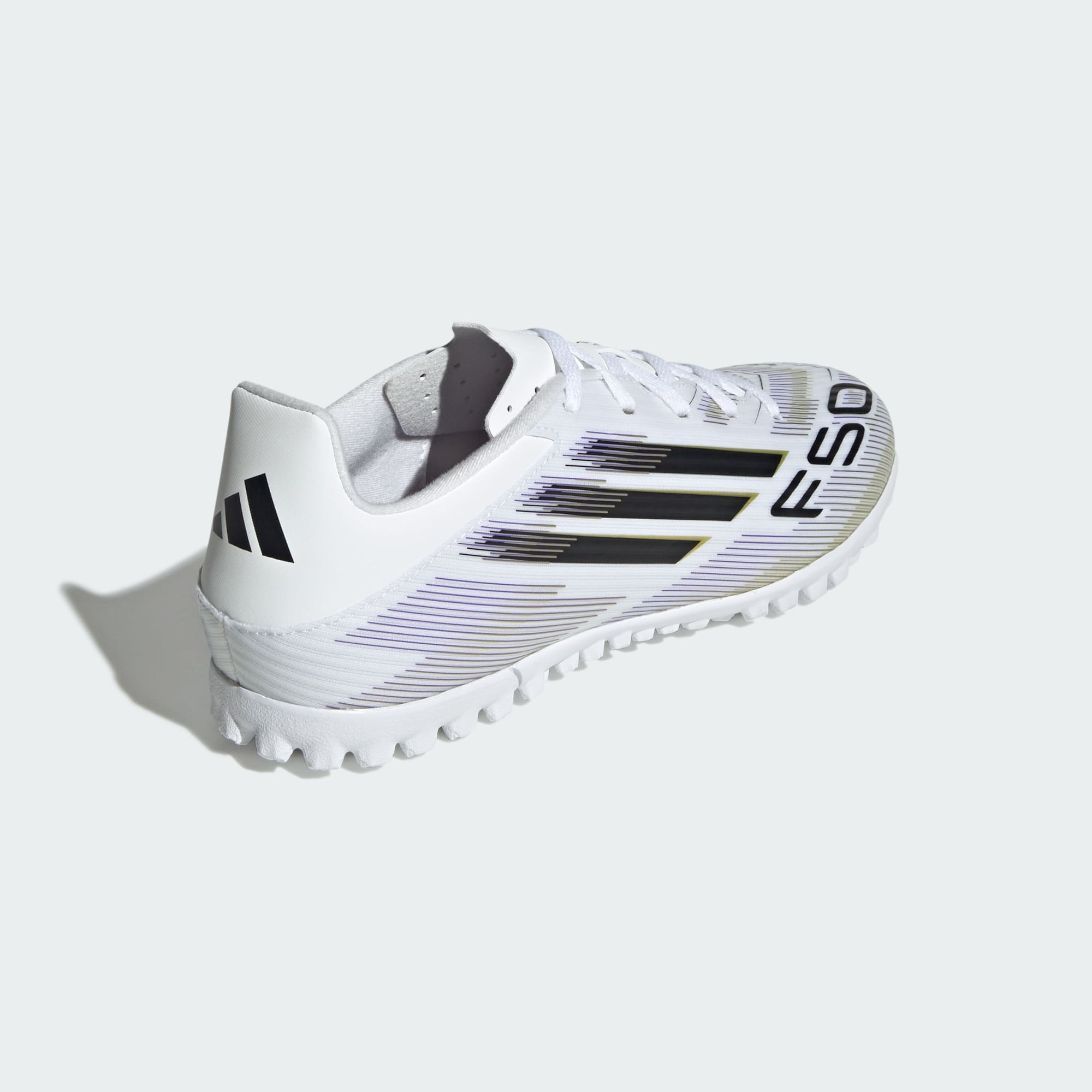 Encontre sua velocidade para se expressar verdadeiramente no campo. Sinta a adrenalina com a chuteira adidas F50 projetada para a velocidade. Esta chuteira mantém você confortável em movimento com o cabedal de suporte Fiberskin e a língua perfurada. Vire a chuteira e você encontrará o solado de borracha sulcado que oferece suporte para jogos rápidos em gramados de society.