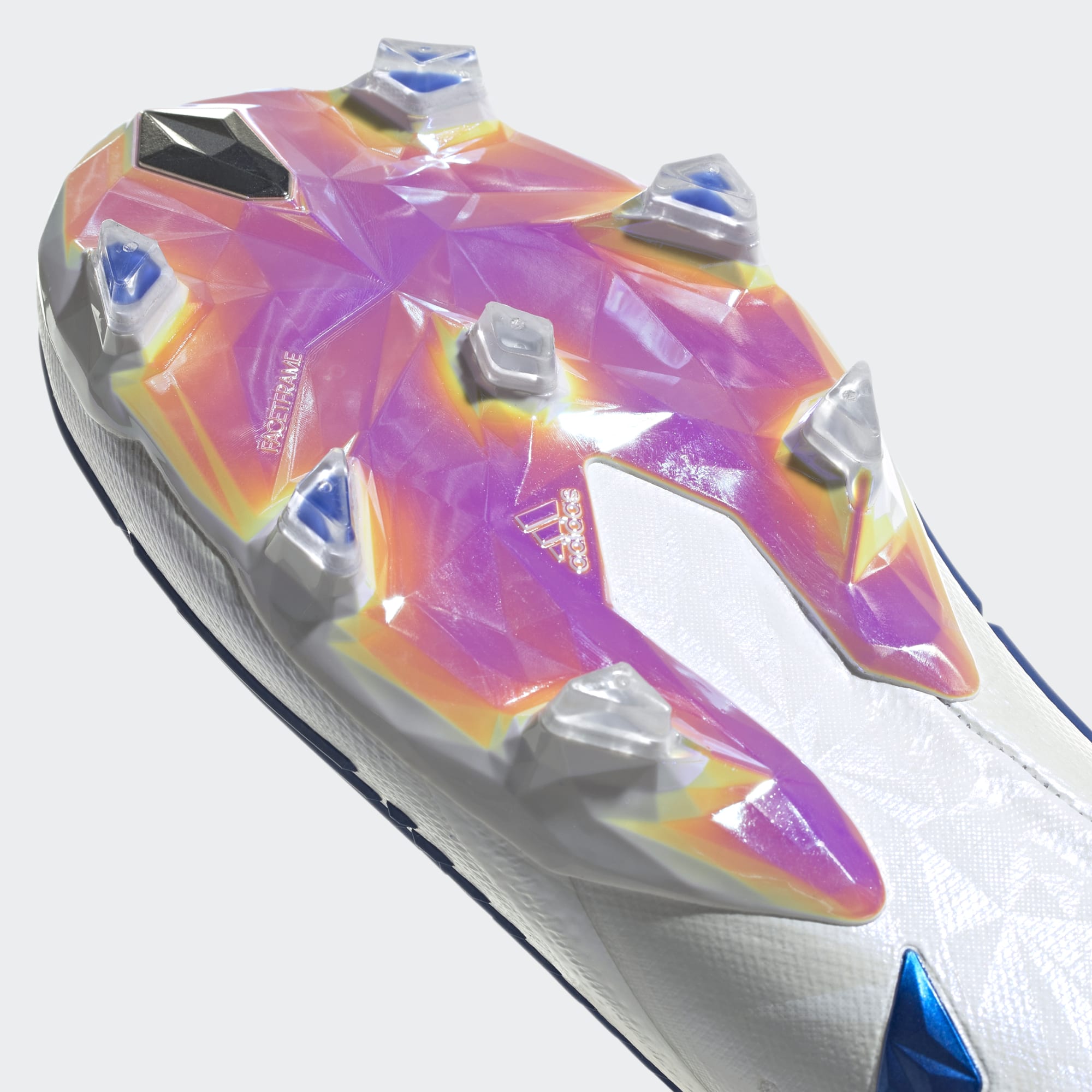O Power Facet na ponta do pé redistribui o peso para a parte dianteira da chuteira, ajudando a aumentar a potência dos seus ataques.