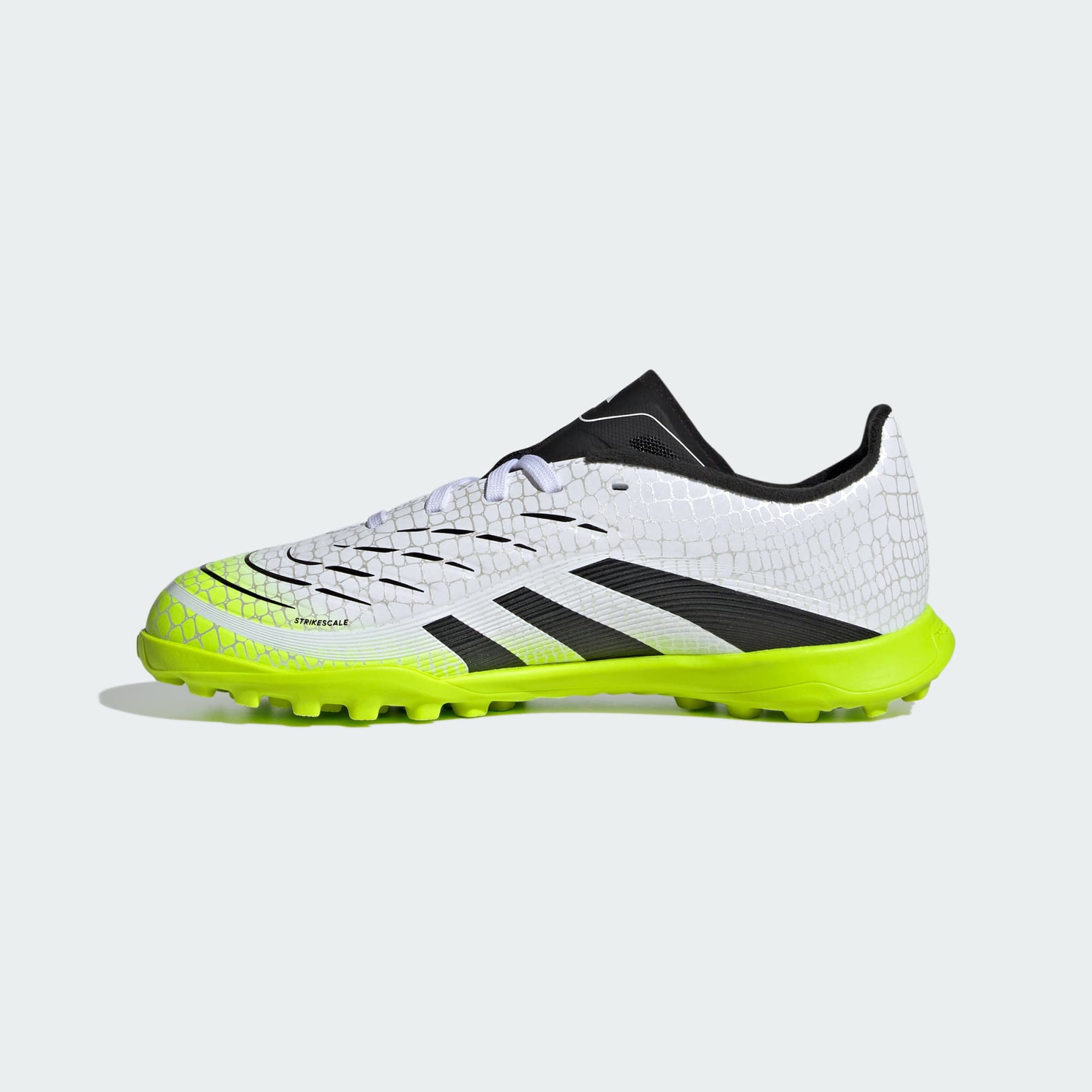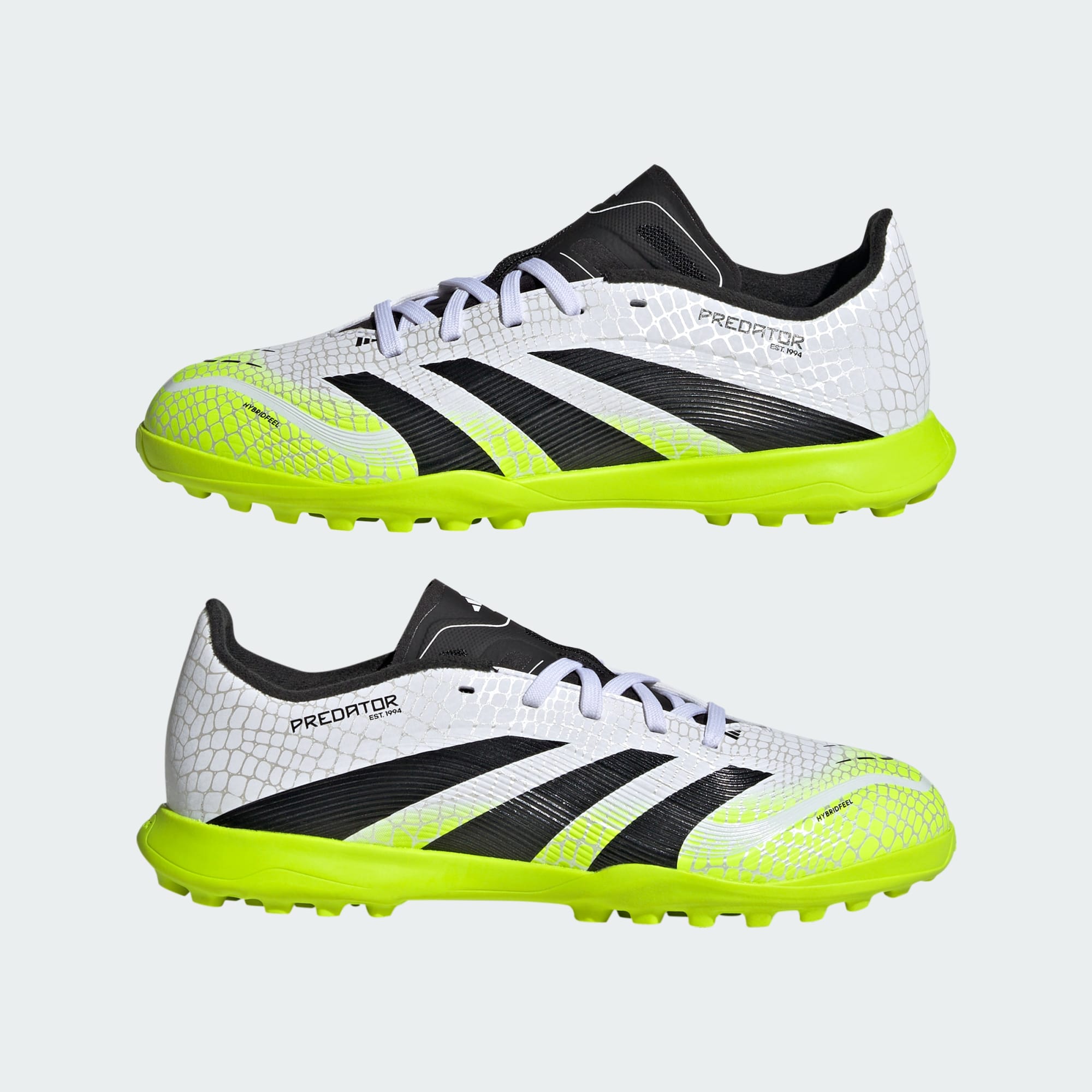Descubra a diferença entre tentar marcar um gol e saber que vai conseguir, com a chuteira adidas Predator, feita para gols. Esta chuteira infantil League tem cabedal Hybridfeel que incorpora uma textura 3D em toda a superfície e detalhes aderentes Strikescale para ajudar você a manipular a bola durante os ataques. O solado de borracha sulcado mantém você estável em campos de grama artificial de society.