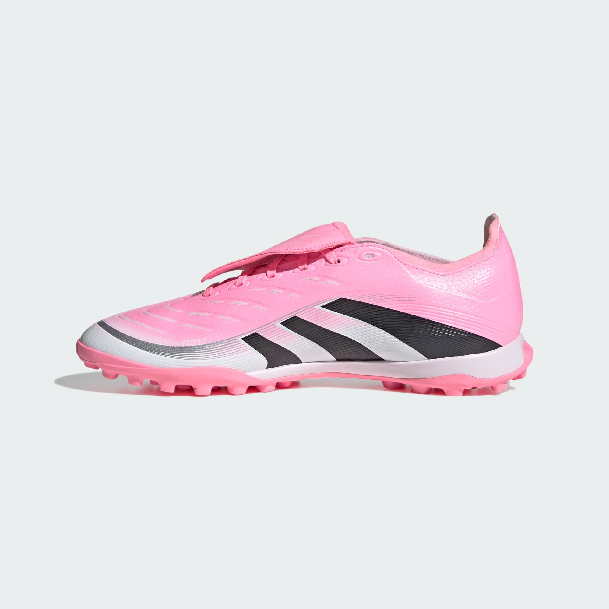 Descubra a diferença entre tentar marcar e ter certeza de que vai marcar com as chuteiras adidas Predator, criadas para fazer gols. Essas chuteiras League têm cabedal Hybridfeel que incorpora uma textura 3D em toda a superfície, uma língua dobrável e detalhes aderentes Strikescale para ajudar na manipulação da bola durante ataques. A entressola Lightstrike e o solado de borracha com sulco mantêm você confortável e estável em gramados artificiais.