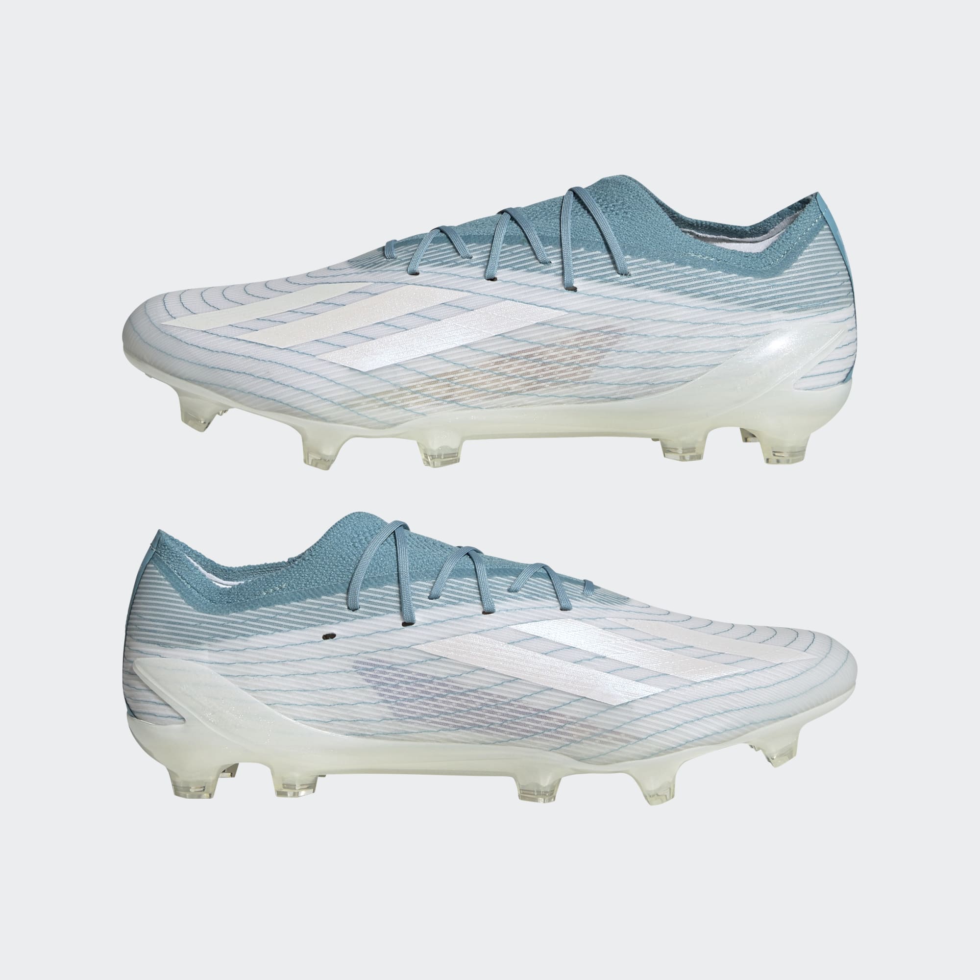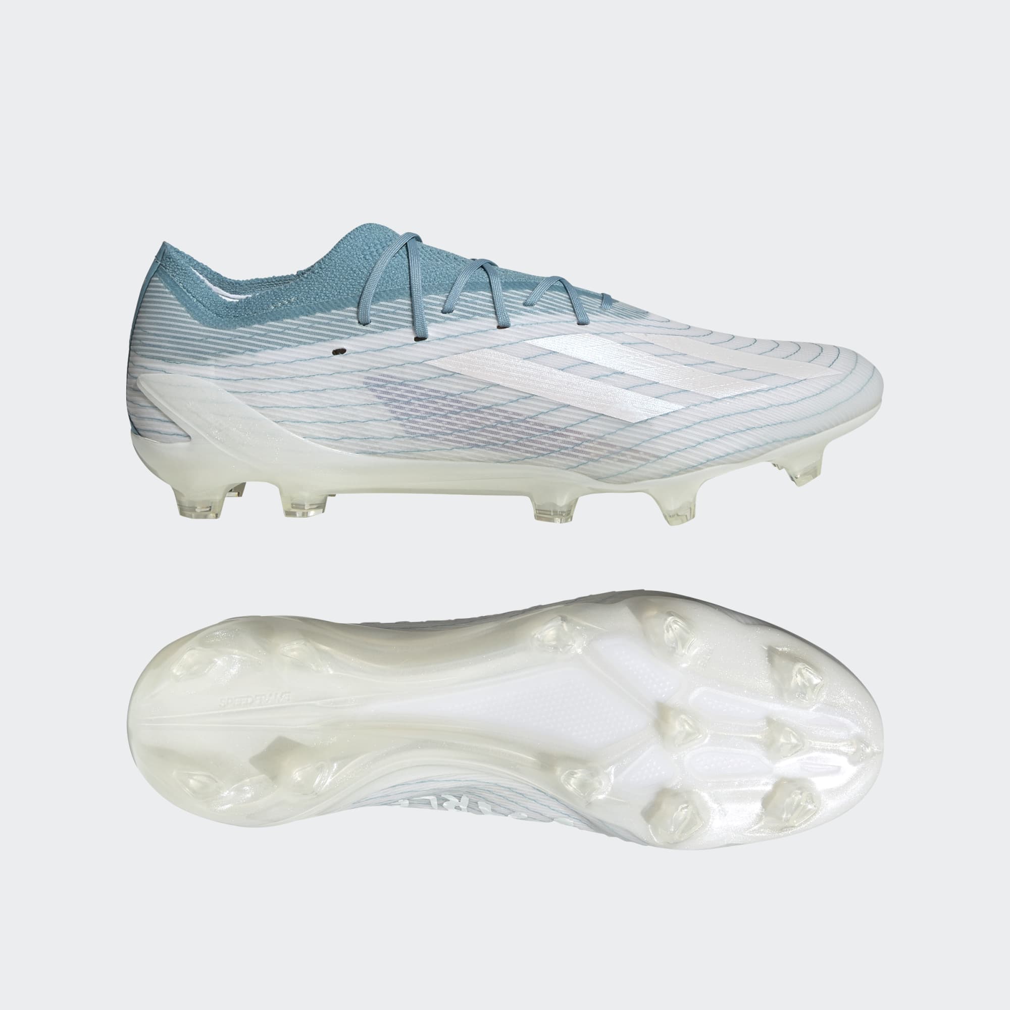 Para os artilheiros. Pelos oceanos. Criada em parte com Parley Ocean Plastic, esta chuteira X marca presença em campo com design influenciado pelo tênis adidas x Parley original. Abaixo da superfície, ela tem todos os benefícios da tecnologia X Speedportal.1, incluindo o solado Speedframe, que aumenta a aceleração, e uma trava estabilizadora de carbono no calcanhar. Educação e ação. Visite o site da Parley for the Oceans para saber mais, fazer seu cadastro e participar em adidas.com/parley. O cabedal deste tênis é feito com fios de alta performance contendo pelo menos 50% Parley Ocean Plastic, resíduo plástico reimaginado interceptado em ilhas remotas, praias, comunidades costeiras e litorais, evitando poluir os oceanos. Os outros 50% dos fios são de poliéster reciclado.