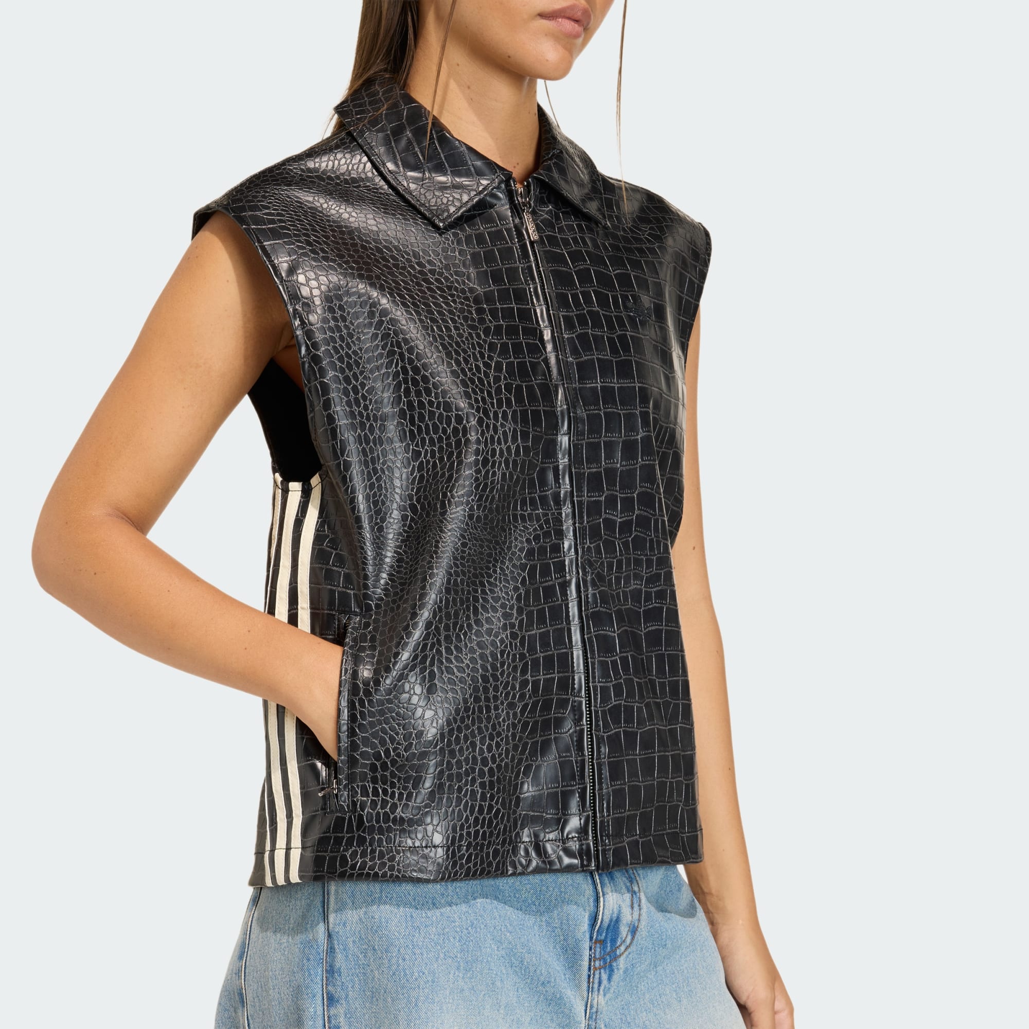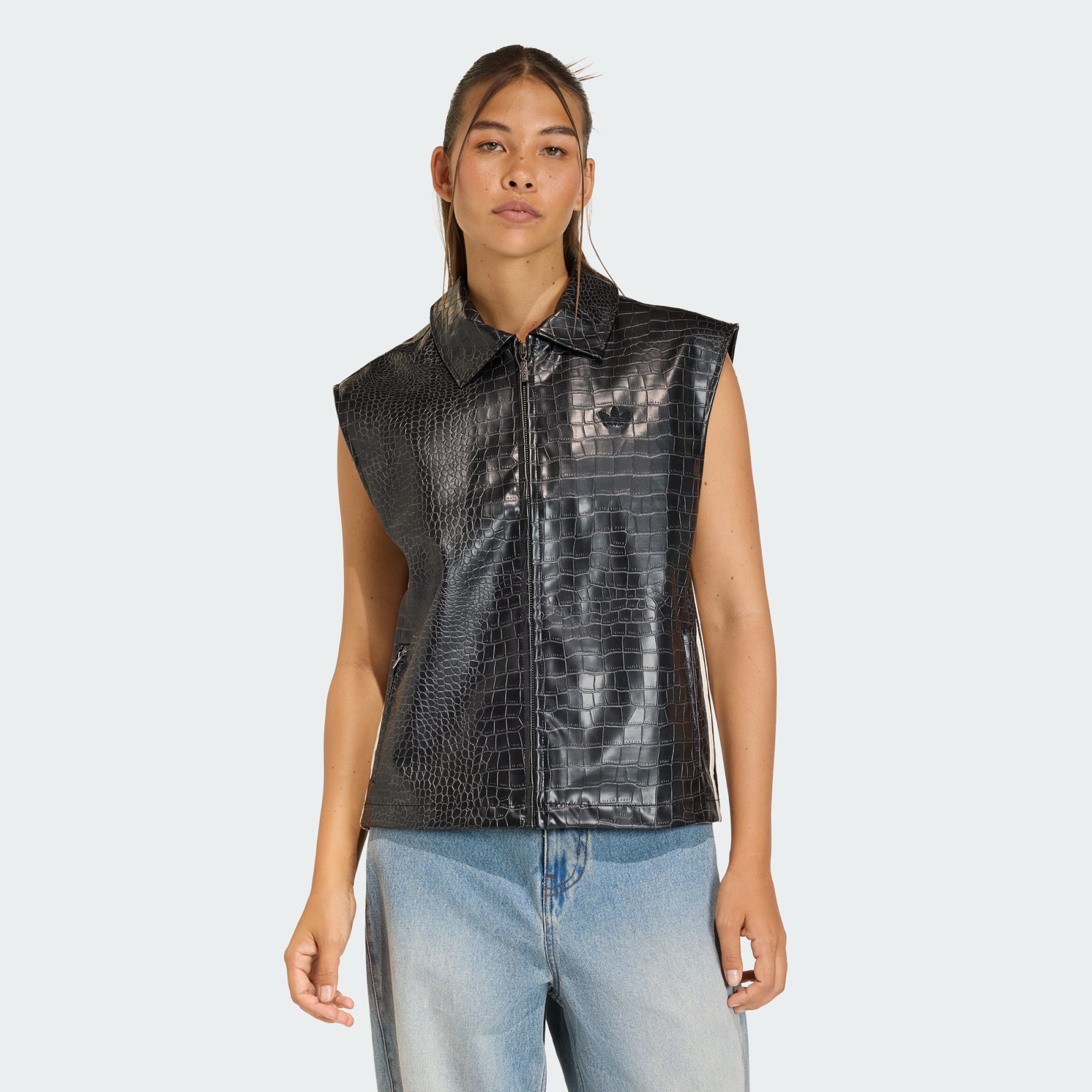 A moda urbana encontra a herança esportiva com o colete adidas Pleather. Inspirado na estética dinâmica do futebol, tanto dentro quanto fora do campo, este colete combina perfeitamente com o visual streetwear. O blocking domina o design, trazendo um toque do icônico tênis Predator para o seu guarda-roupa. Com um caimento solto que se ajusta sem esforço, este colete é ótimo para ser usado com uma camiseta ou camisa polo. O fecho de cordão acrescenta uma vantagem funcional, permitindo que você ajuste o caimento ao seu gosto, mantendo uma vibração descontraída, seja para uma roupa casual para o dia ou para sair à noite. Faça uma declaração com este colete arrojado.