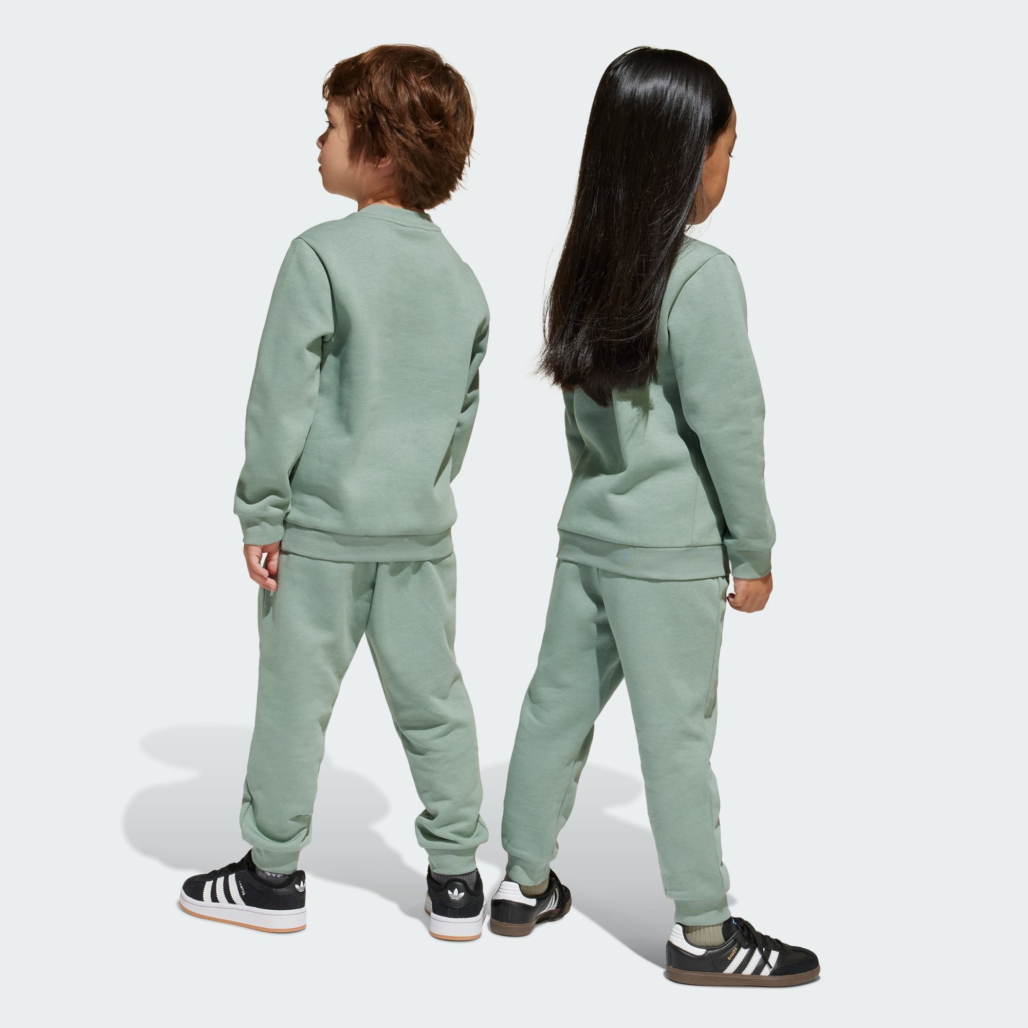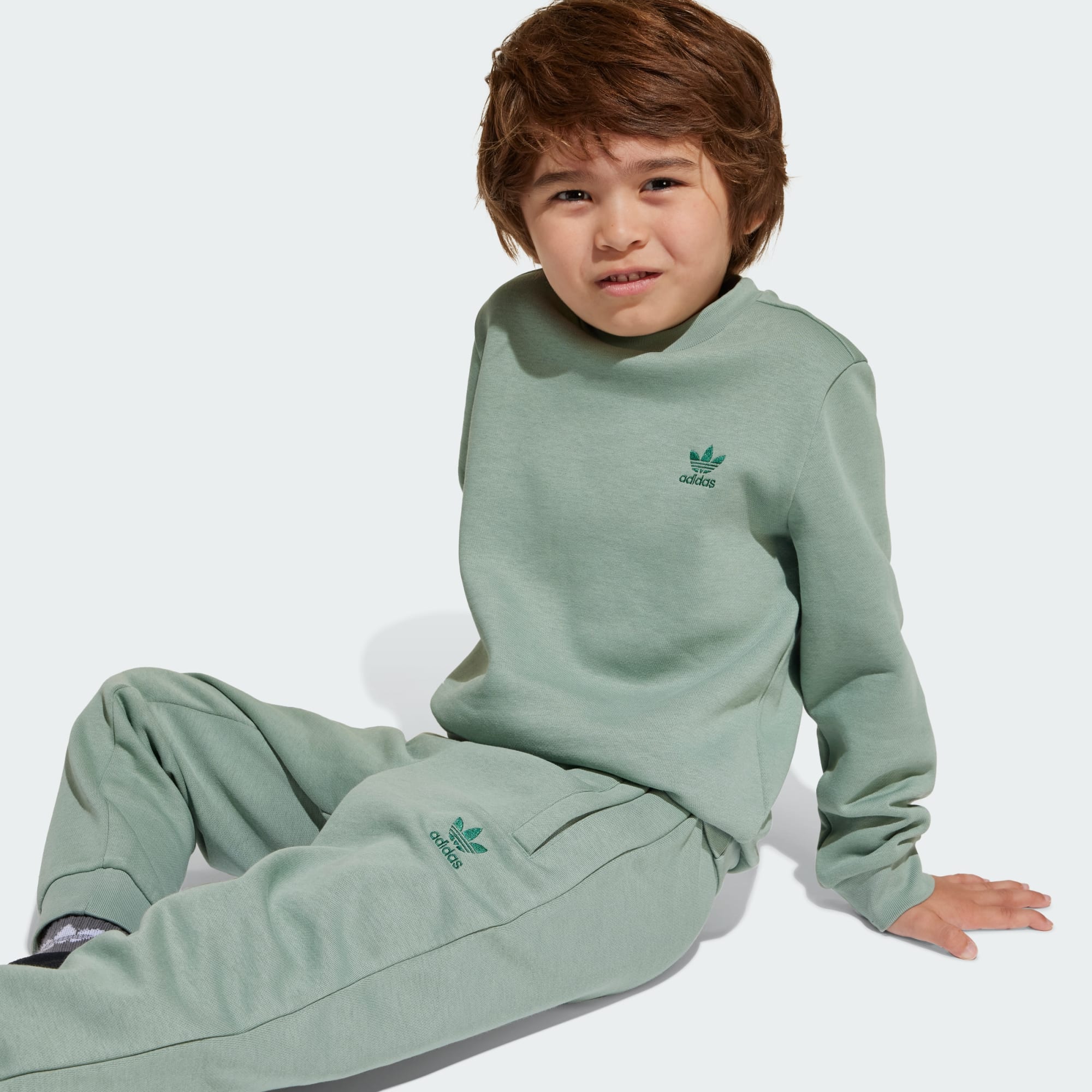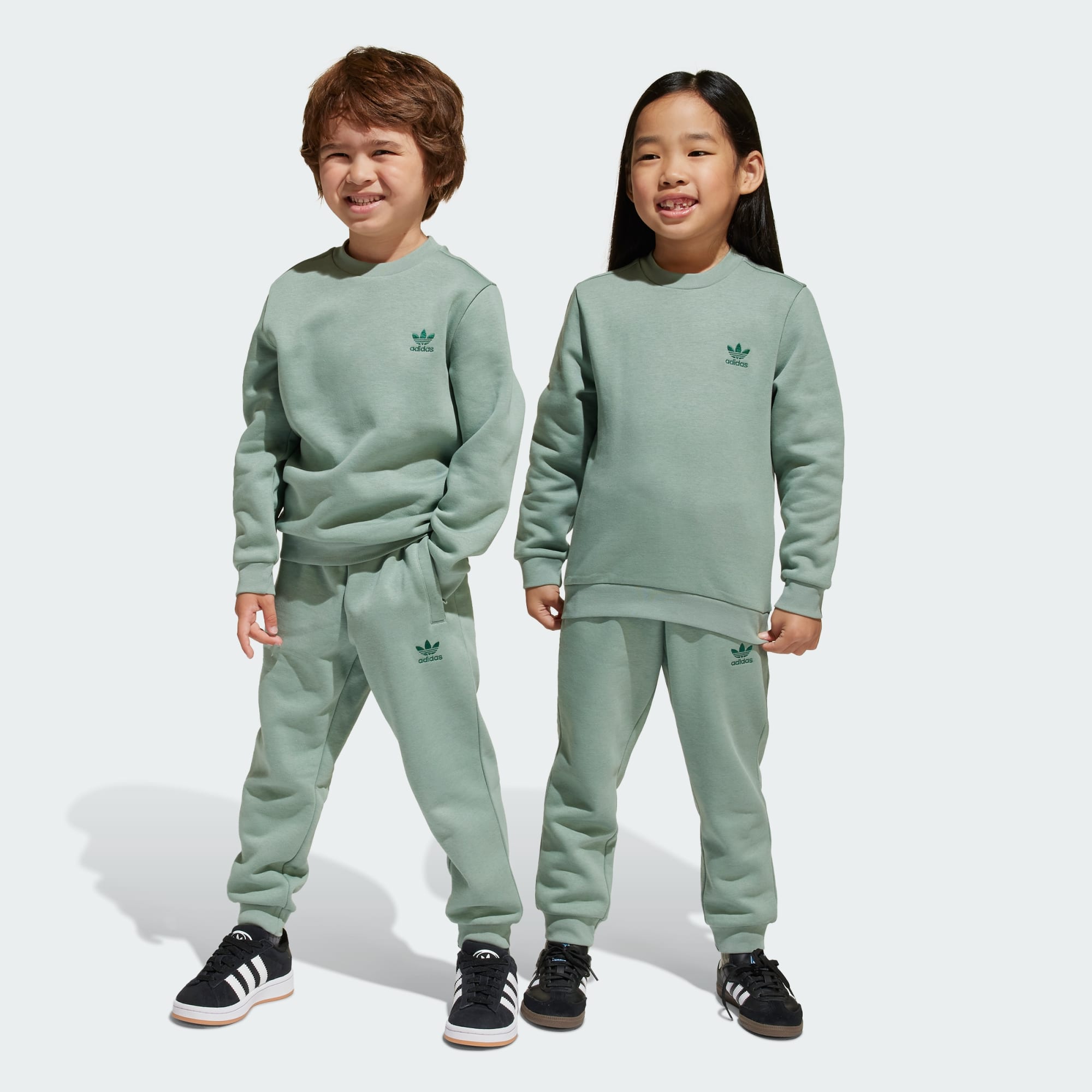 Conforto descomplicado para os jovens fãs da adidas. Esse conjunto infantil envolve as crianças em um fleece macio da cabeça aos pés, com gola, barra e punhos canelados para maior aconchego. Os logos Trefoil em cores contrastantes no moletom e na calça remetem à herança da adidas, conectando uma nova geração a um legado de esporte e estilo.