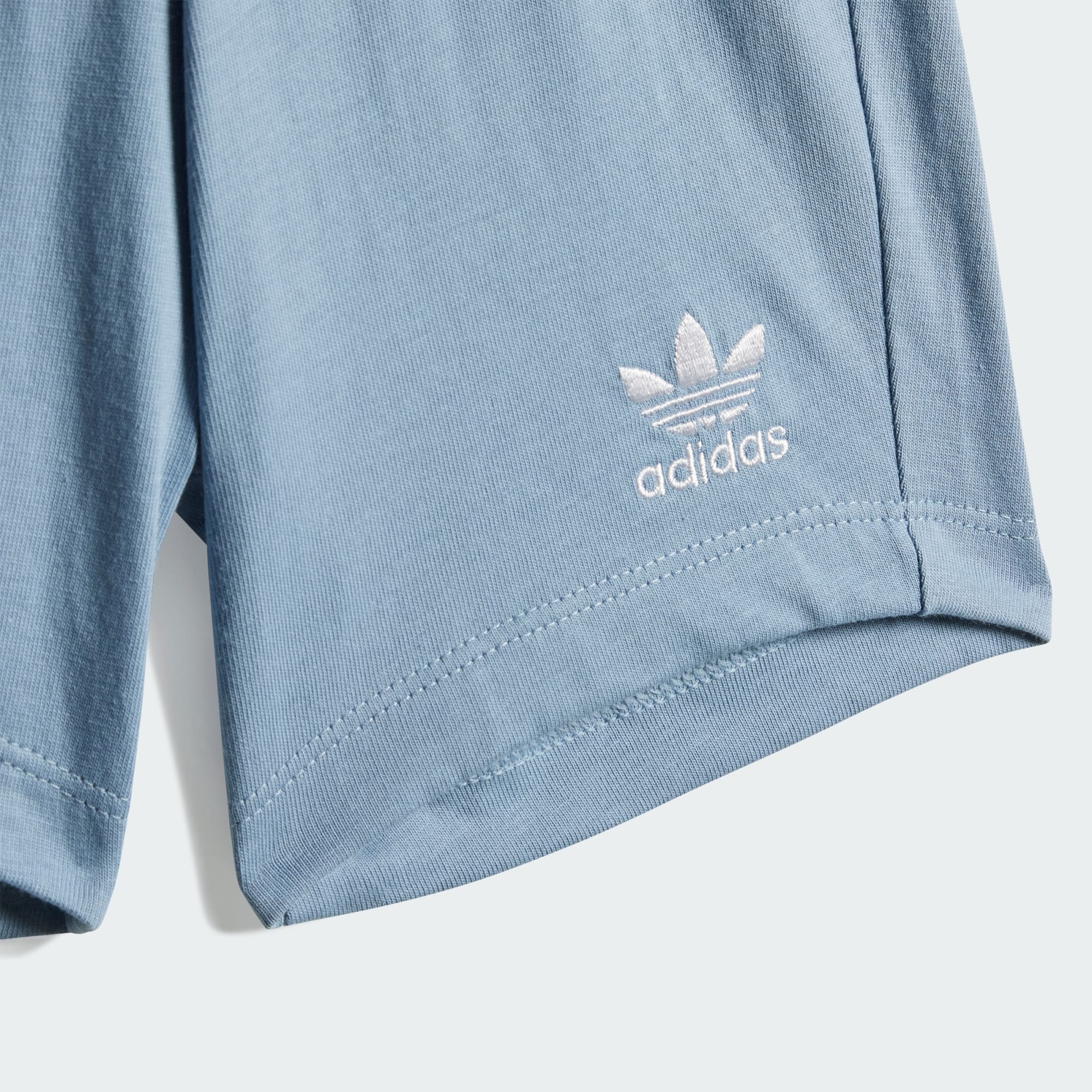 Quando a aventura bate à sua porta, o conforto vem em primeiro lugar. Este conjunto infantil de shorts e camiseta é confeccionado em malha simples macia de algodão e tem um fecho de botão de pressão na camiseta para facilitar na hora de vestir e tirar. O logo Trefoil bordado no peito e nas pernas, além dos detalhes canelados em toda a peça, dá ao seu filho um estilo esportivo clássico.