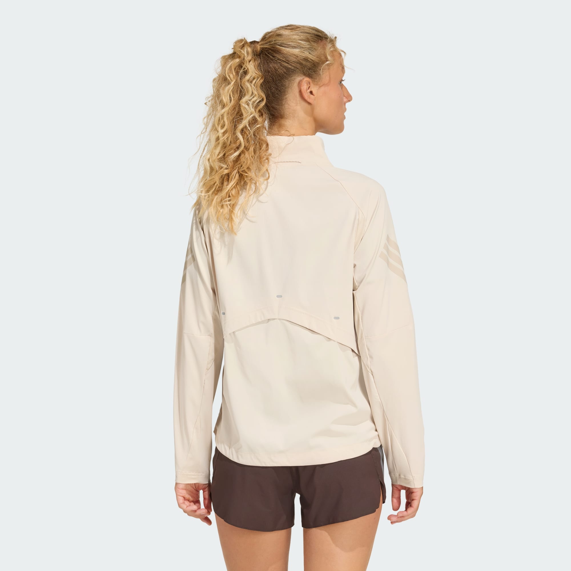 Jaqueta de corrida com apliques em malha elástica para maior respirabilidade.