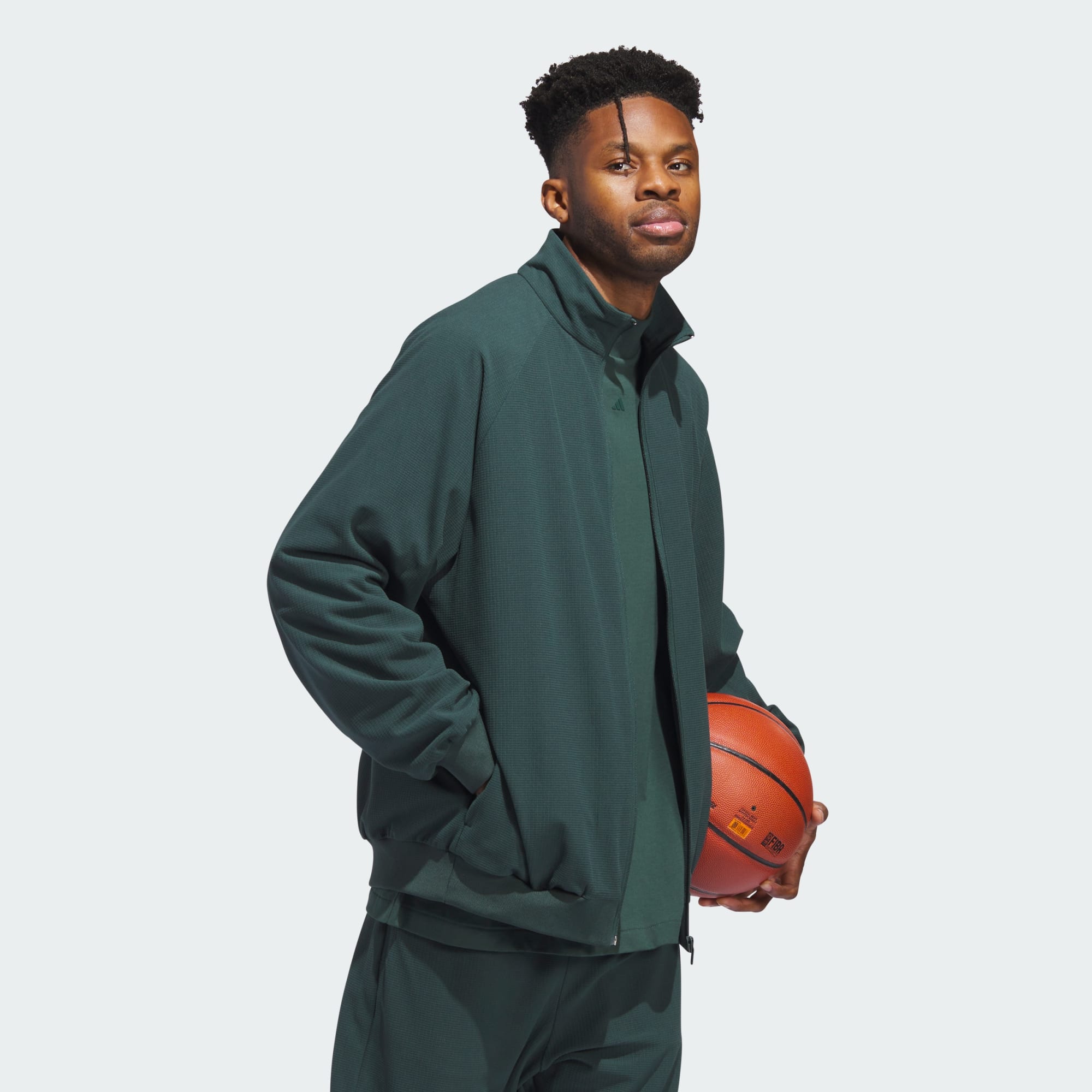 O próximo capítulo da adidas Basketball é uma jornada que explora forma, função e cor. Uma coleção feita para atender às necessidades do atleta moderno. Esta jaqueta de basquete é feita de malha escovada premium de poliéster reciclado e apresenta zíper frontal com gola alta para um look clássico. Um mínimo de 70% deste produto é uma mistura de materiais reciclados e renováveis.