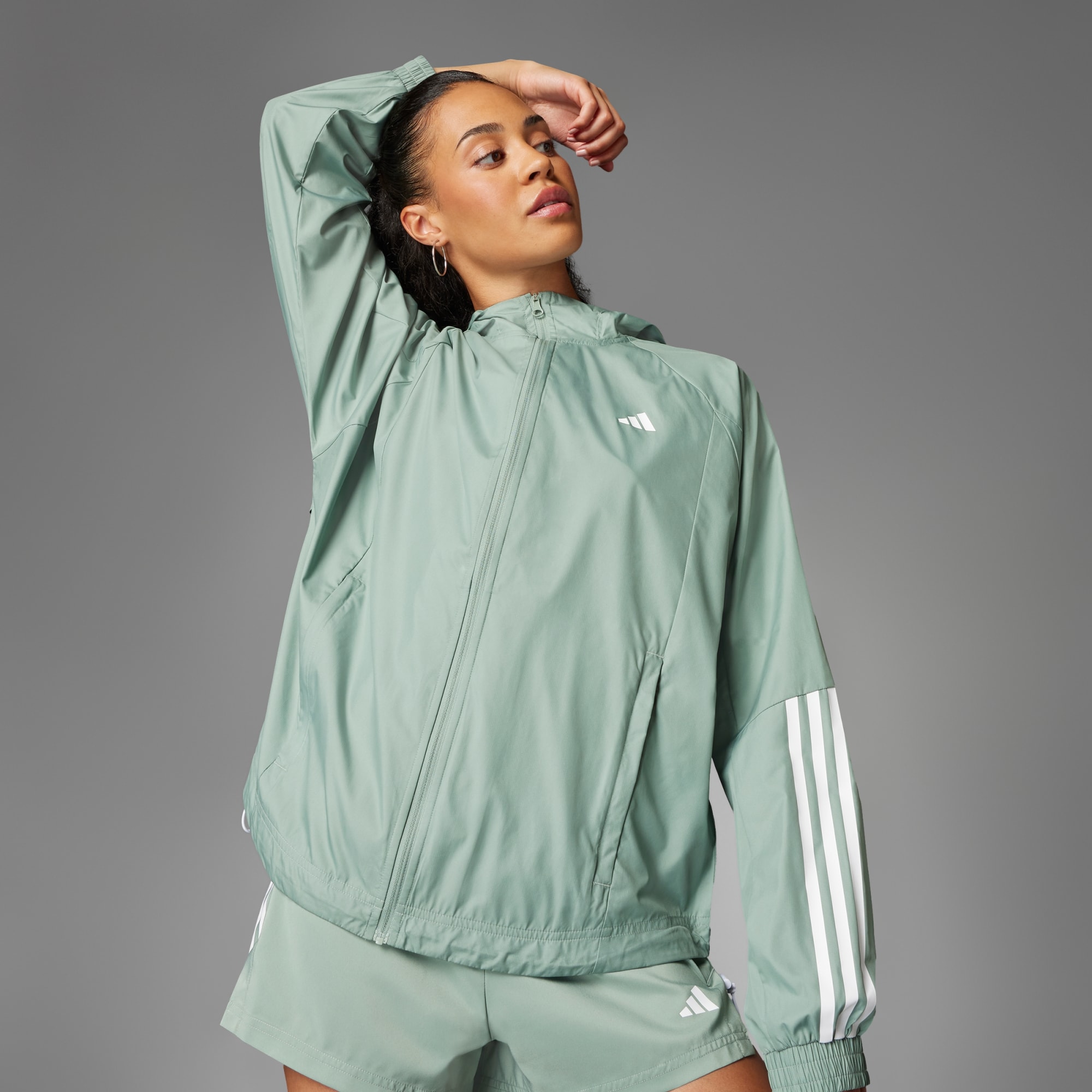 Vá para a academia ou para a aula de dança com esta jaqueta corta-vento adidas que permite que você enfrente o vento e a chuva leve sem perder o ritmo. Solta e esportiva, ela apresenta painéis de malha elástica para um conforto respirável. As mangas morcego e a barra curva com cordão ajustável dão um toque estiloso. Este produto é fabricado com pelo menos 70% de materiais reciclados. Ao reutilizar materiais que já foram criados, ajudamos a reduzir os resíduos, a nossa dependência em recursos não renováveis, bem como a pegada dos produtos que fabricamos.