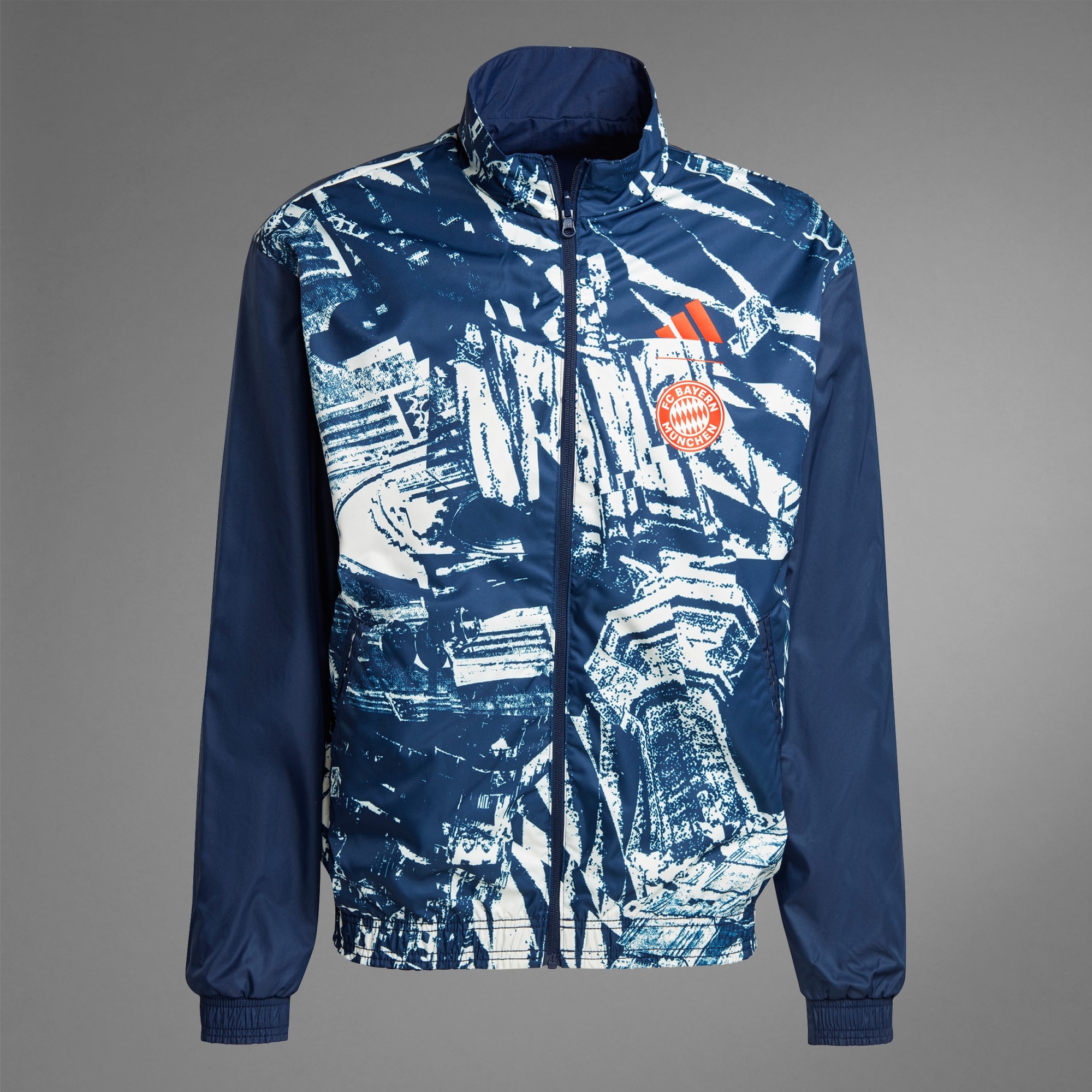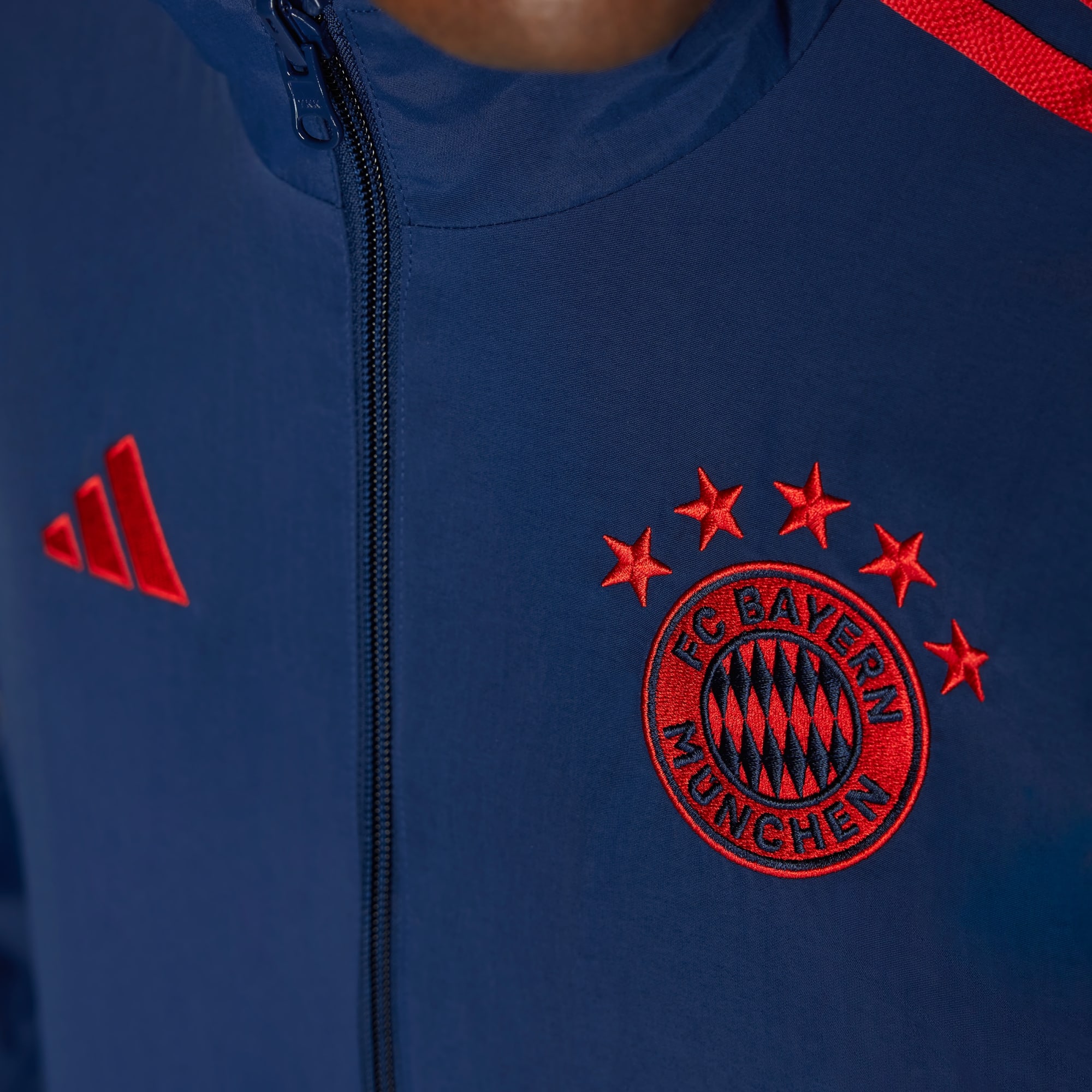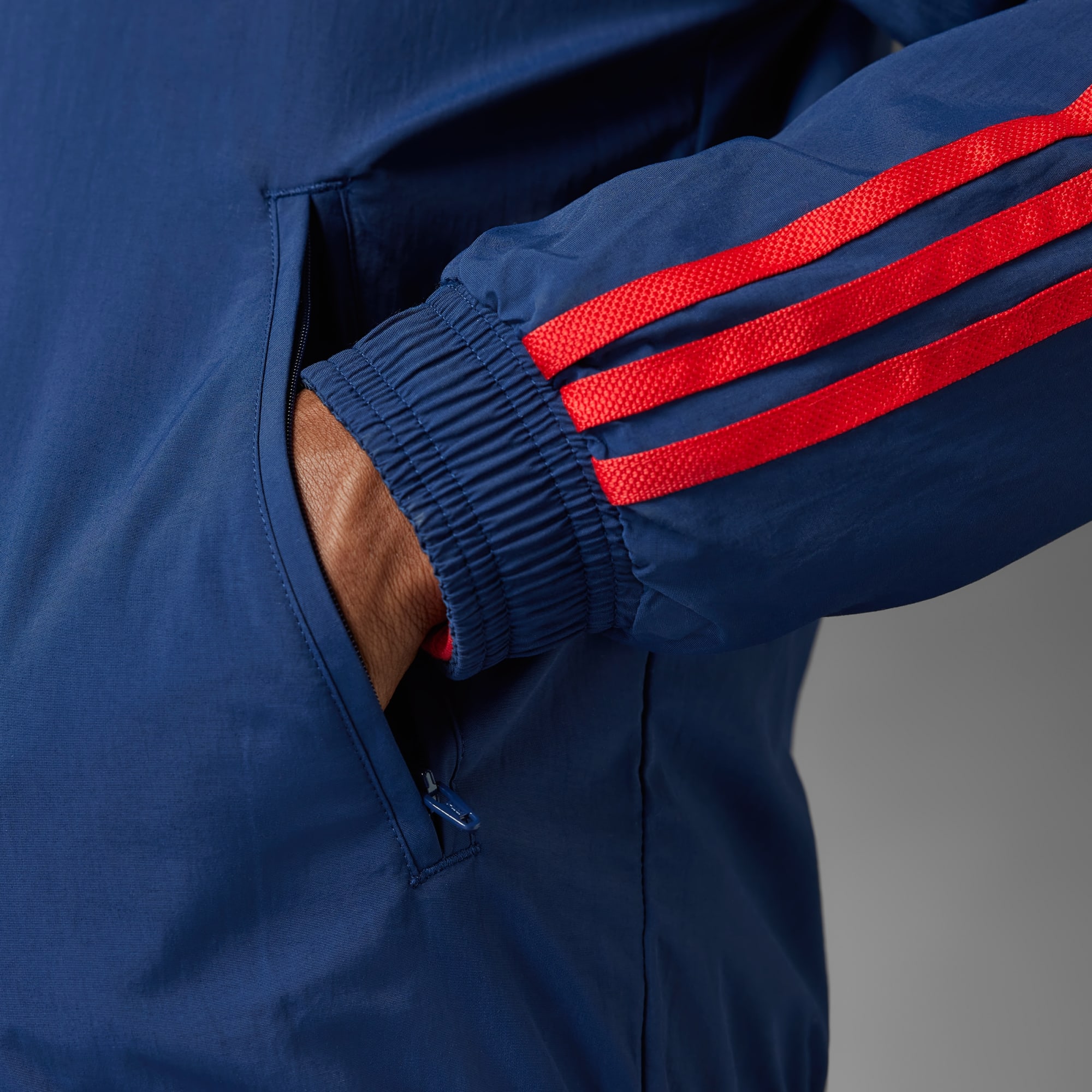 Uma jaqueta. Duas histórias. Sempre pronta para qualquer ocasião. Deixe claro para quem você torce com esta jaqueta hino do FC Bayern. Desenvolvida com design reversível, ela permite que você escolha entre duas estéticas icônicas, tornando as coisas mais divertidas nos dias de jogo. Uma mistura perfeita de funcionalidade e estilo, ela inclui bolsos com zíper para guardar os seus objetos essenciais e gola alta para ajudar a proteger contra o frio. A barra e os punhos elásticos garantem uma sensação de firmeza, enquanto o escudo do clube bordado e o logo de alto desempenho destacam quem a veste. Feito com uma série de materiais reciclados e pelo menos 60% de conteúdo reaproveitado, este produto representa apenas uma das nossas soluções para ajudar a eliminar os resíduos plásticos.