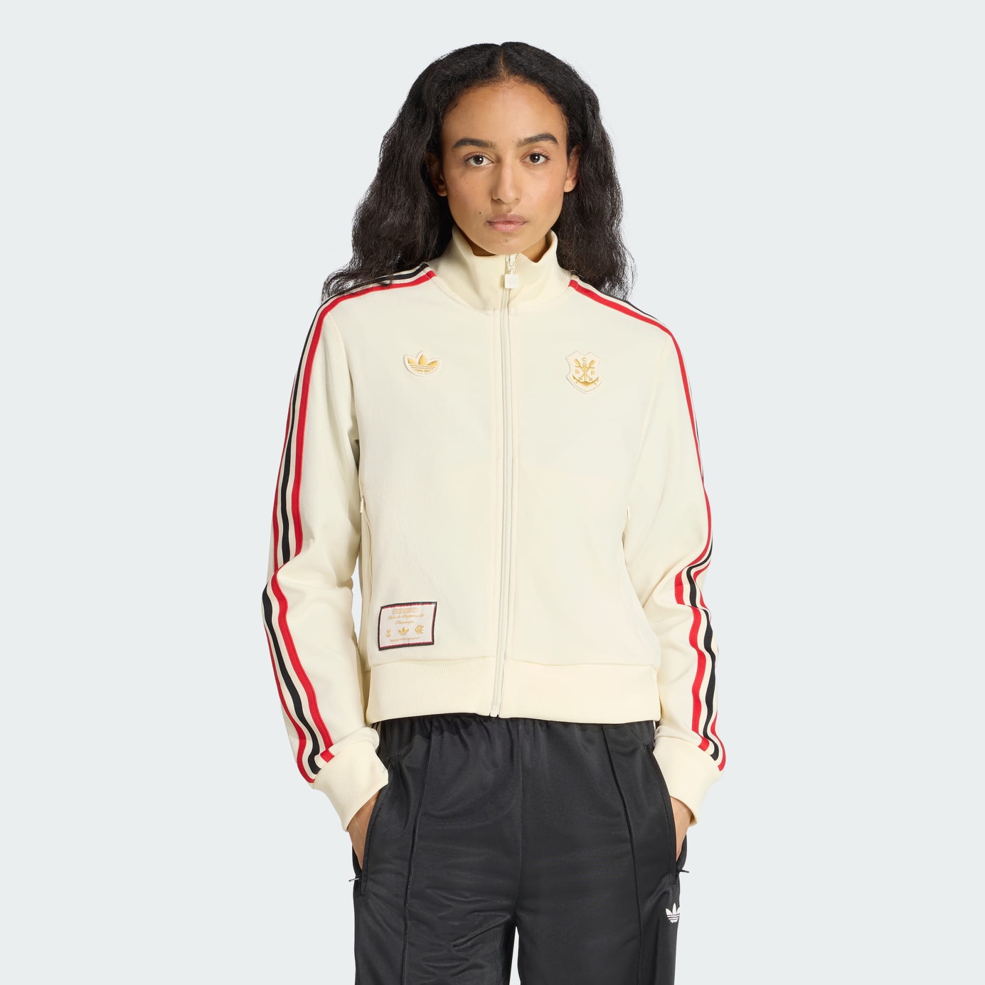 Esta Jaqueta adidas CR Flamengo é uma releitura moderna do estilo de futebol dos anos 80. Perfeita para apoiar seu time, é feita de tecido de sarja macio e suave e exibe um Trefoil e o emblema clássico do clube. Uma etiqueta tecida acima da bainha mantém as vibrações retrô.