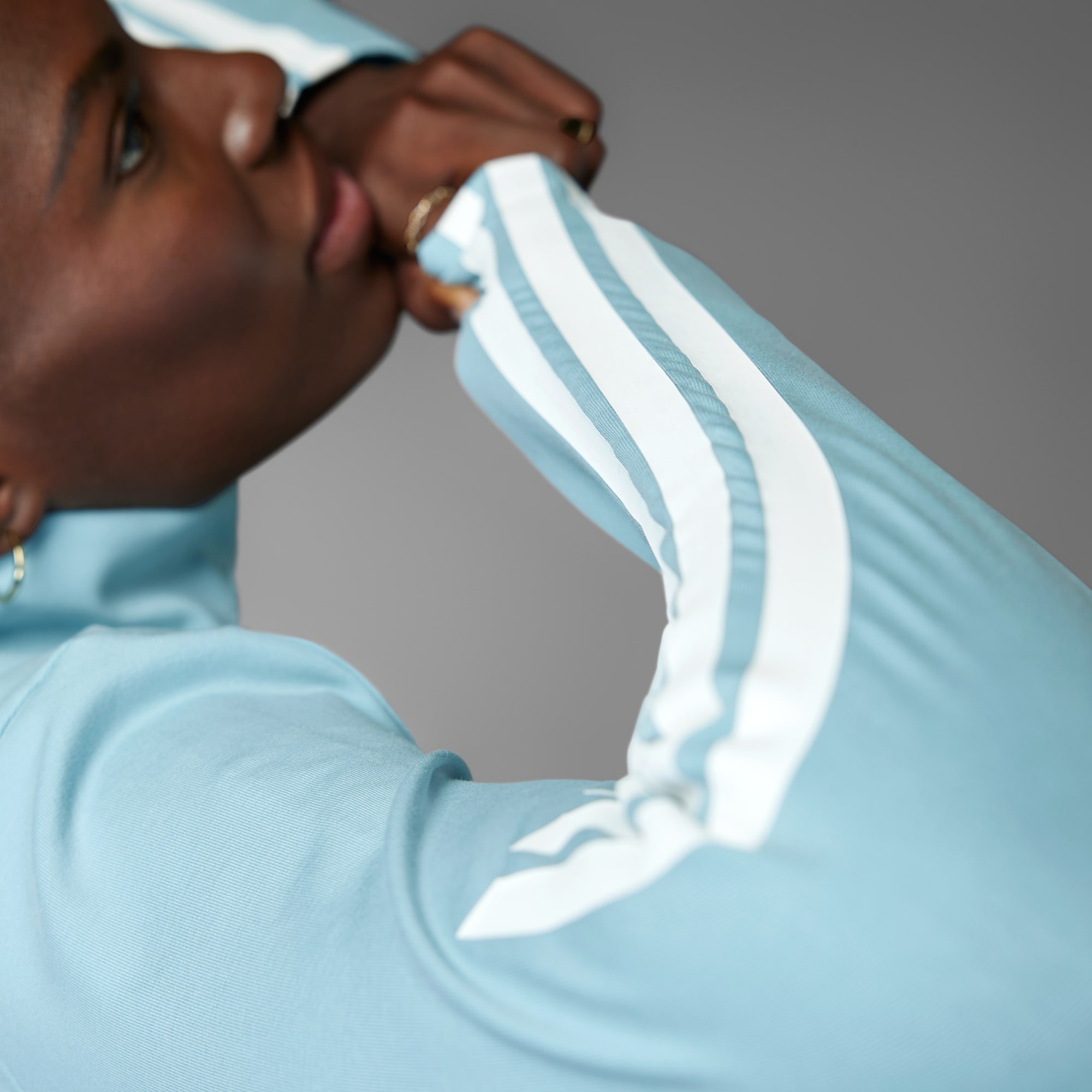 Jaqueta ajustada com inspiração no futebol.
