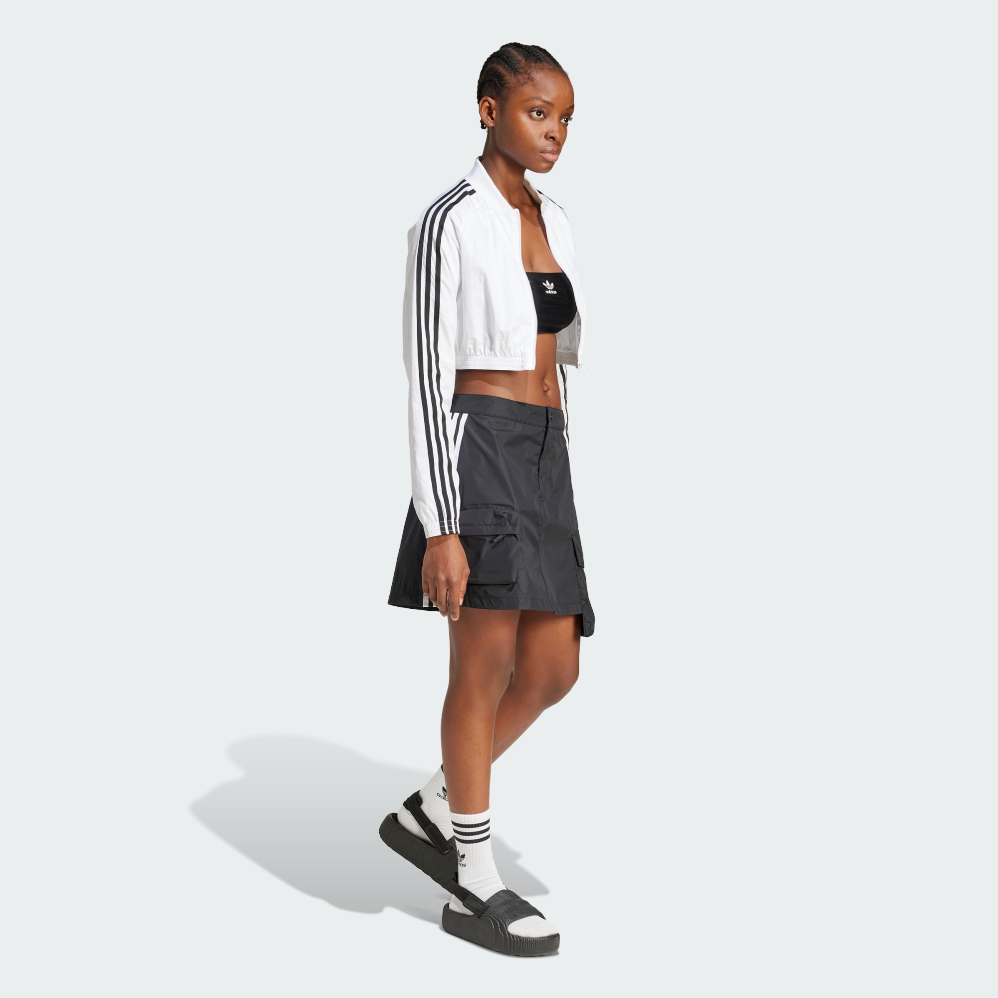 Inspirada nos vídeos de hip hop dos anos 90, esta minissaia cargo adidas é ao mesmo tempo esportiva e funcional. Ela tem detalhes que os dançarinos adoram, como bolsos cargo para itens essenciais. Além disso, a silhueta assimétrica fica ainda melhor quando você se movimenta. Este produto é feito com 100% de materiais reciclados. Ao reutilizar materiais que já foram criados, ajudamos a reduzir os resíduos, a nossa dependência em recursos não renováveis, bem como a pegada dos produtos que fabricamos.