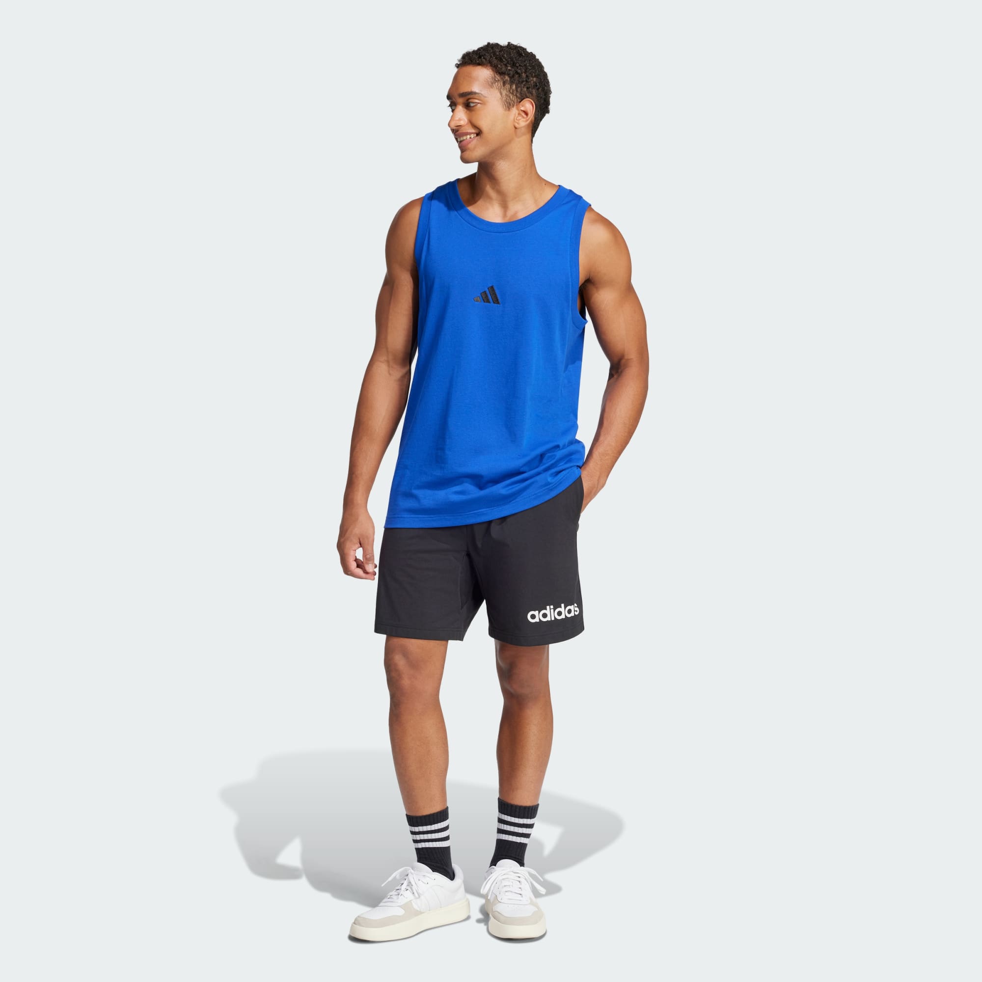 Coloque essa regata e você vencerá qualquer desafio do dia. Seja para treinar ou relaxar, o tecido macio de malha simples mantém o corpo confortável. O logo adidas bordado agrega um toque esportivo sutil.
