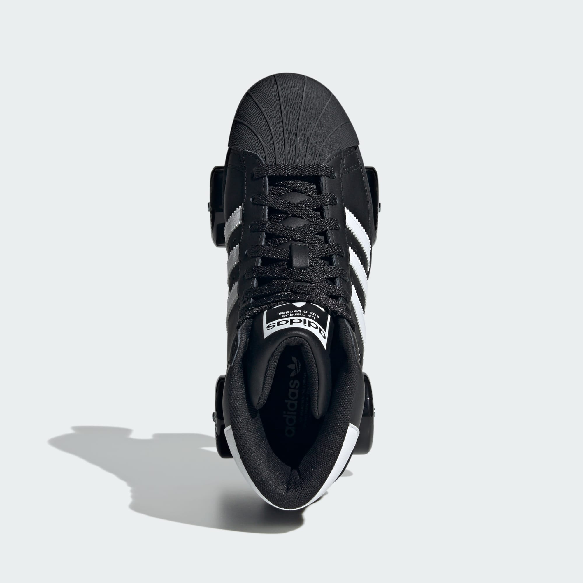 Mostre seu talento com estes patins adidas. Eles apresentam biqueira arredondada e as Três Listras serrilhadas para o estilo autêntico do tênis adidas Superstar. O cabedal de cano alto é feito de couro preto macio e revestido. O acolchoamento interno mantém você confortável em movimento. Os patins vêm completos com um freio frontal e a marca do tênis adidas Superstar nas rodas.