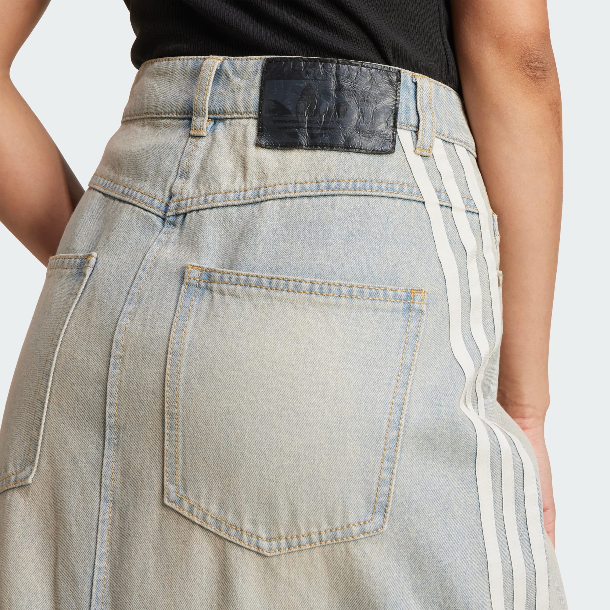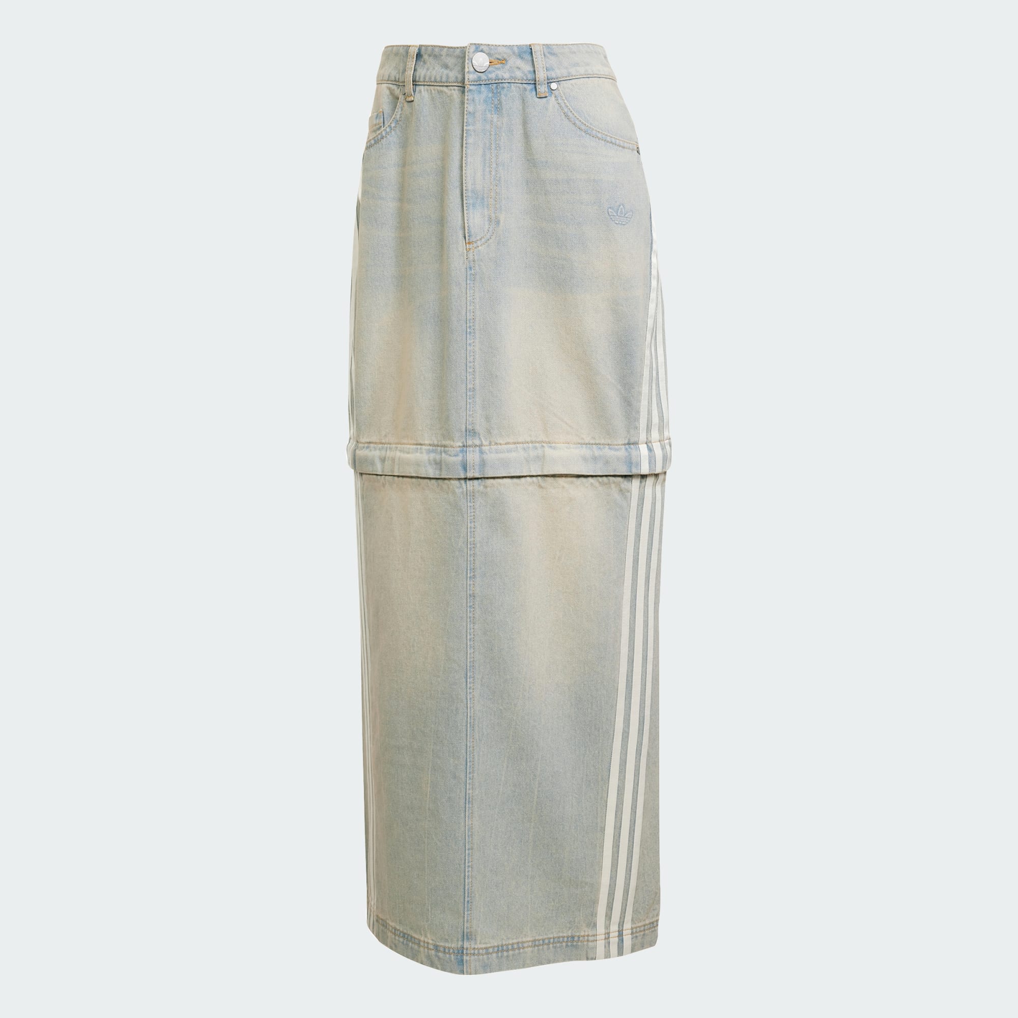 Curta ou extralonga, você não precisa se preocupar muito com isso. Isso porque esta saia adidas se transforma em segundos, graças a um zíper completo que transforma o look de jeans de cobertura total em um visual com pernas à mostra ou até mesmo em um vestido. Quando a parte de baixo estiver com o zíper fechado, você poderá usá-la como vestido. Os bolsos ocultam as alças anexadas. As Três Listras se curvam nos bolsos e na frente. Este produto é feito com pelo menos 70% de materiais reciclados. Ao escolher o reciclado, podemos reutilizar materiais já criados, o que ajuda a reduzir o desperdício e a nossa dependência de recursos finitos, além de reduzir a pegada dos produtos que fabricamos.
