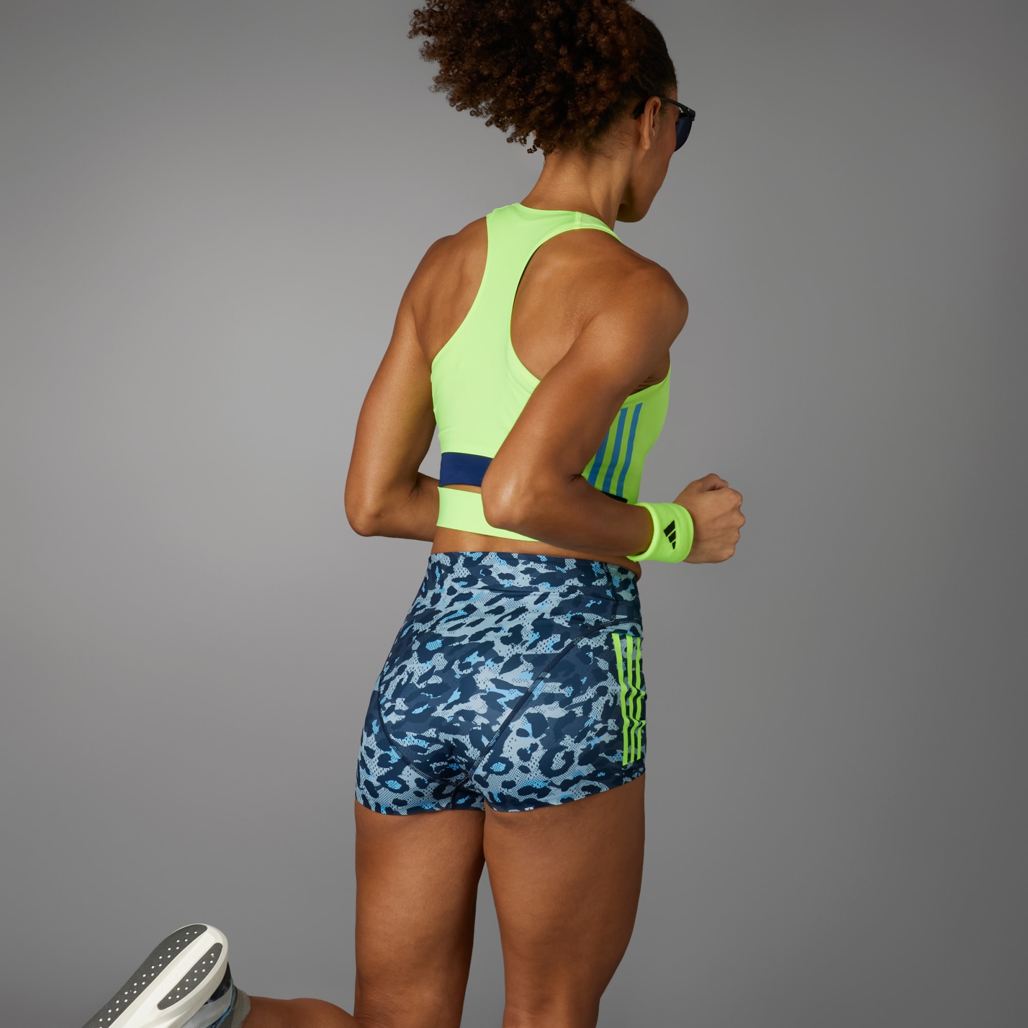A estrada para os recordes começa aqui. Esse shorts de corrida adidas acompanha seus movimentos graças à modelagem justa e flexível. A tecnologia AEROREADY mantém seu corpo seco e sua mente focada, não importa o quão longe sua corrida te leve. A estampa na peça transmite uma mensagem de estilo audacioso, seja na pista ou na trilha. Esse produto é feito com pelo menos 70% de materiais reciclados. Ao escolher o reciclado, podemos reutilizar materiais já criados, o que ajuda a reduzir o desperdício e a nossa dependência de recursos finitos, além de reduzir a pegada dos produtos que fabricamos.