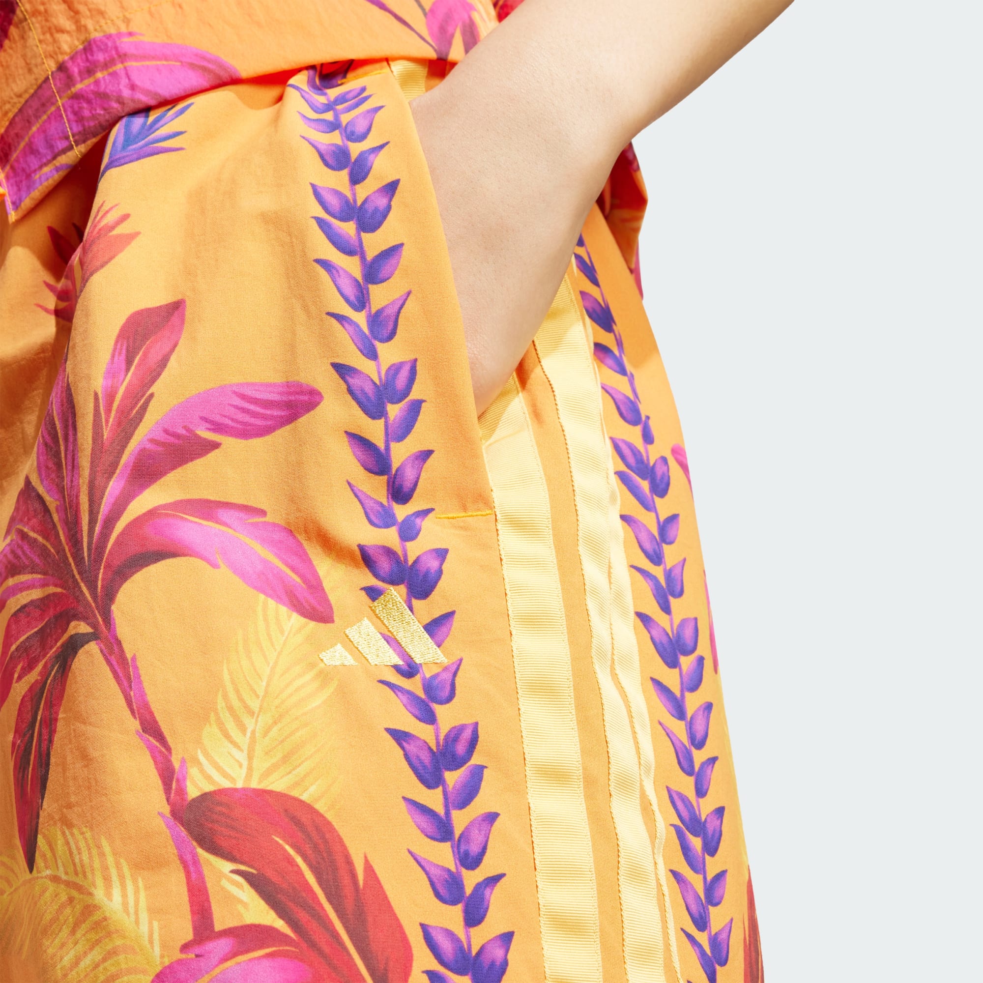 A vibe do deserto encontra a elegância esportiva neste shorts adidas. Desenvolvido em parceria com a FARM Rio, ele combina o melhor dos dois mundos para criar uma silhueta versátil que pode ser usada em todos os lugares, de estádios a locais de dança. A modelagem folgada e a cintura elástica tornam o caimento superconfortável, enquanto o tecido de nylon macio oferece um drapeado elegante e estiloso. Combine-o com sandálias ou tênis, de qualquer forma, seu look certamente chamará a atenção.