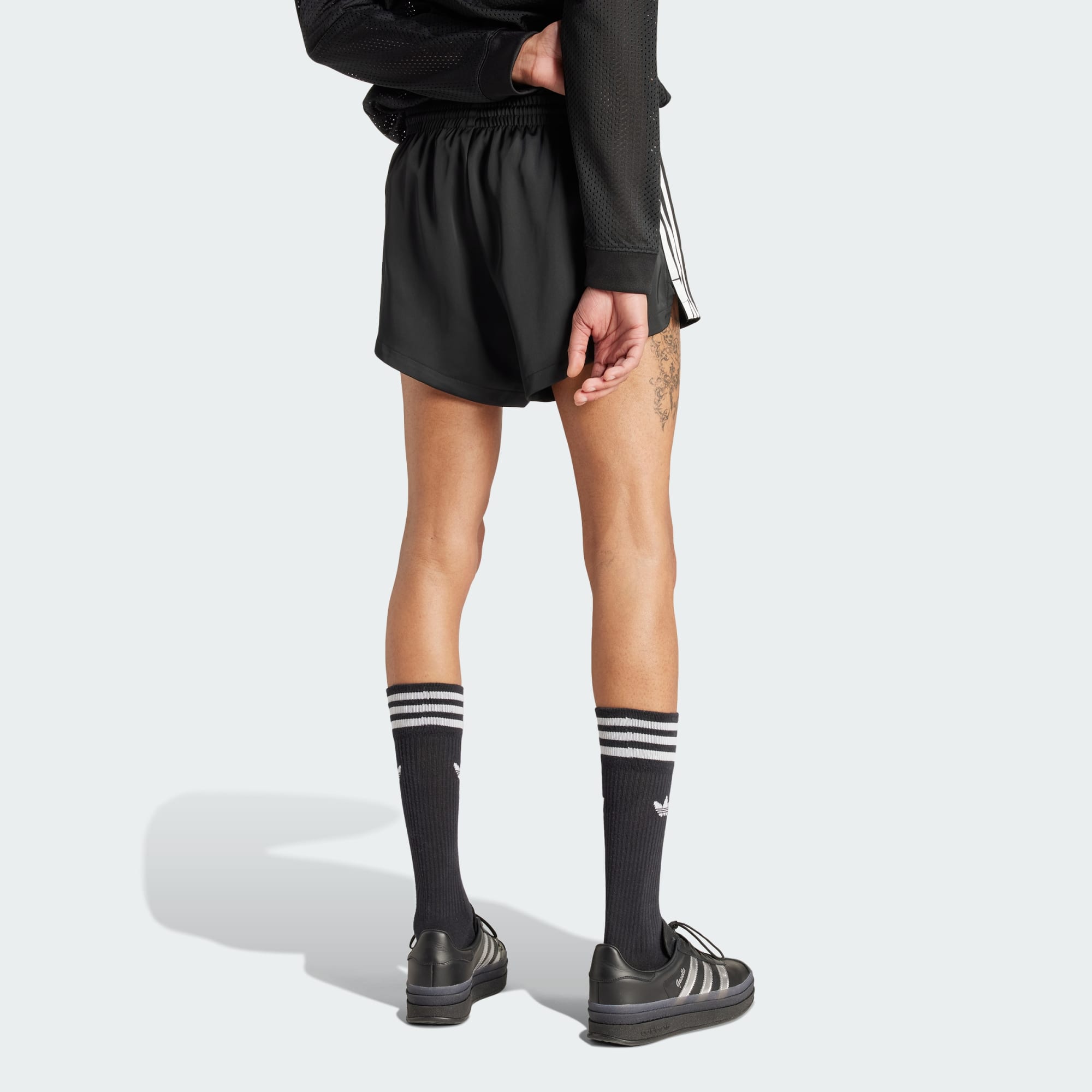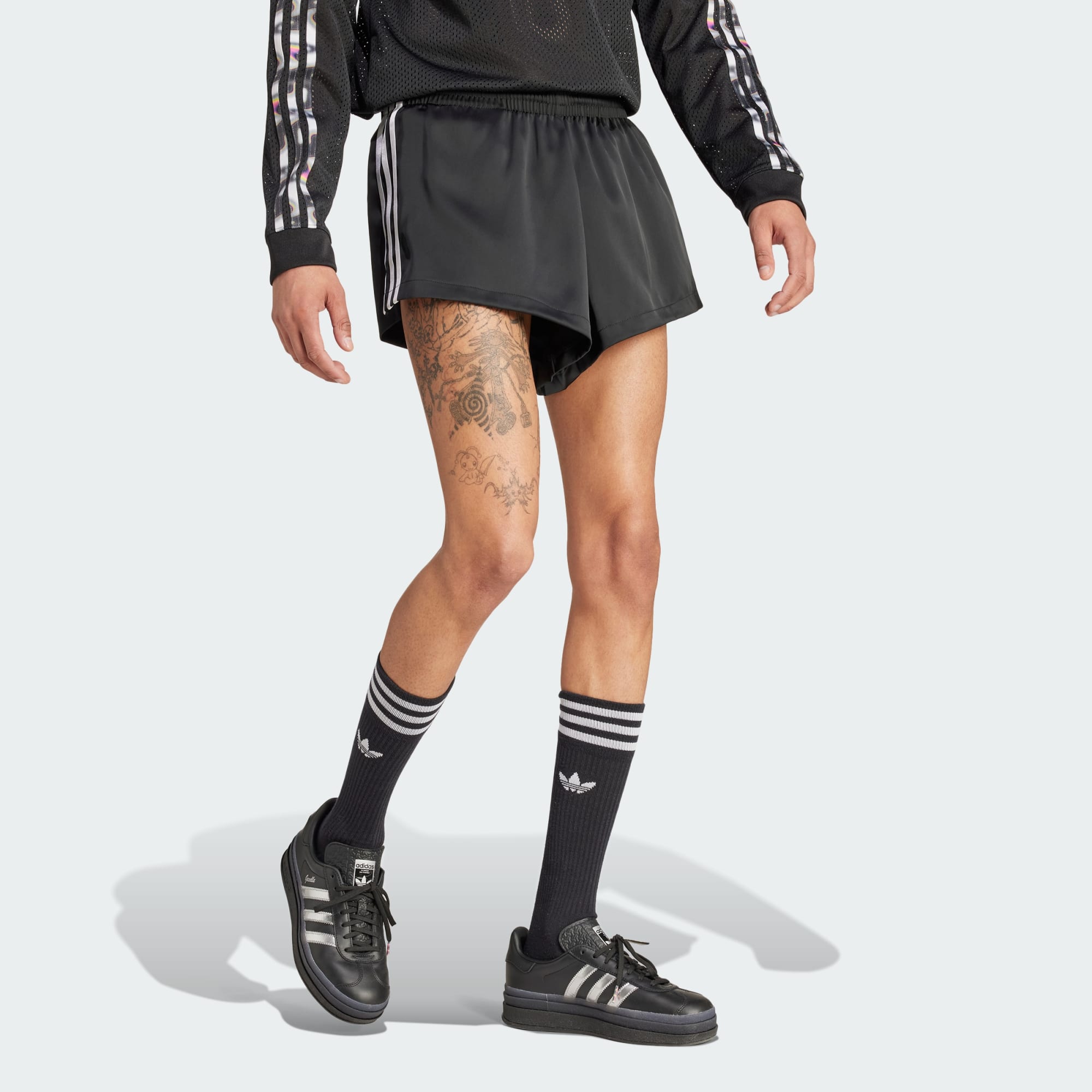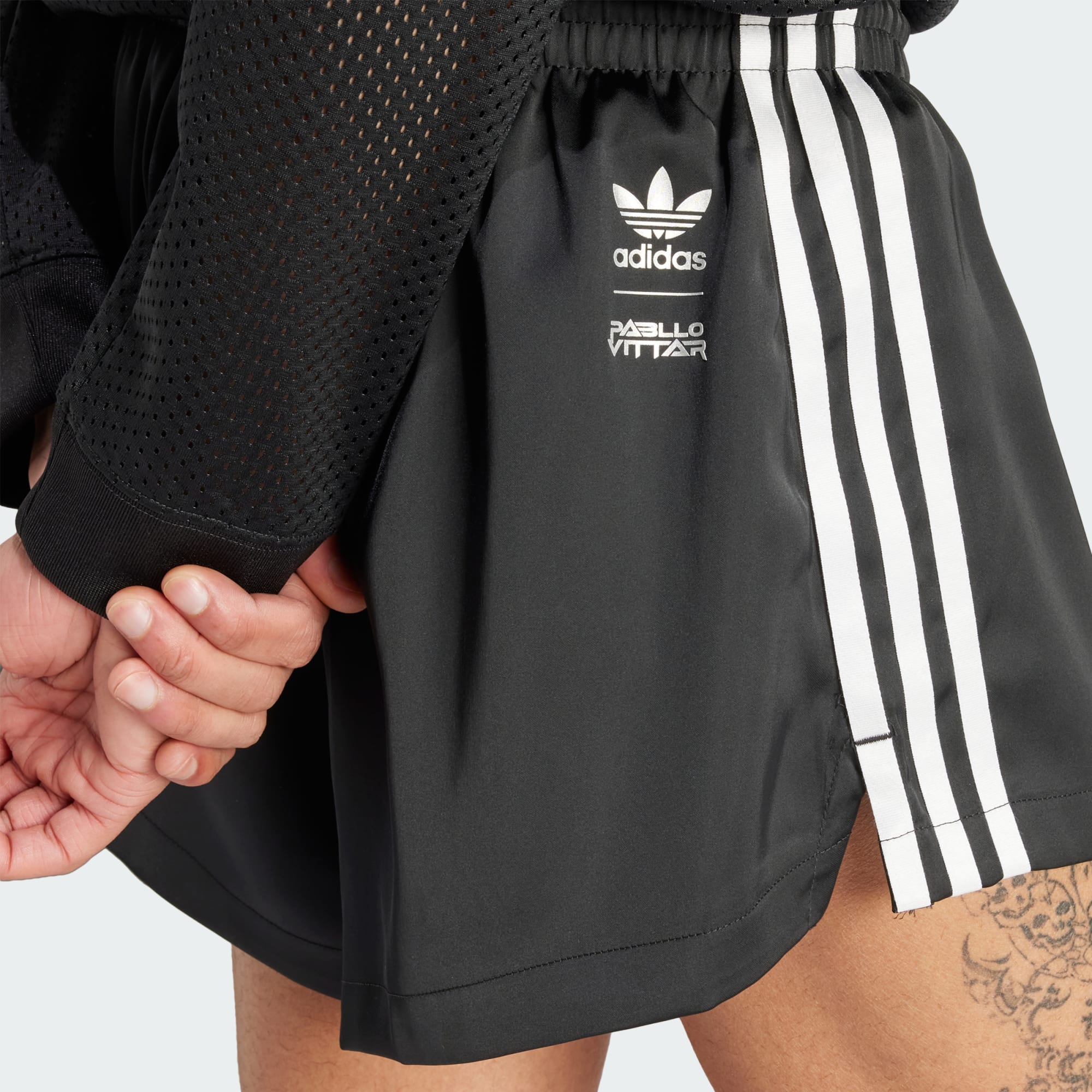 A coleção adidas x Pabllo Vittar Pride apresenta algumas das silhuetas clássicas da adidas, com cada peça inspirada no estilo característico de Vittar. Inspirada nos trajes de banho brasileiros, a coleção foi desenvolvida para complementar diferentes formatos de corpo, para que todos possam se sentir poderosos em sua própria pele. Com o lema "Love Unites" como seu grito de guerra, a coleção celebra a individualidade, aceitando nossos corpos como são e promovendo a solidariedade. Este shorts adidas traz a história do ícone pop brasileiro Pabllo Vittar. Feito de cetim macio e sedoso, é ideal para acompanhar seus movimentos durante a noite ou dia. O logo Trefoil combina com o logo da marca de moda de Pabllo para um design característico. Este produto é feito com pelo menos 70% de materiais reciclados. Ao escolher o reciclado, podemos reutilizar materiais já criados, o que ajuda a reduzir o desperdício e a nossa dependência de recursos finitos, além de reduzir a pegada dos produtos que fabricamos.