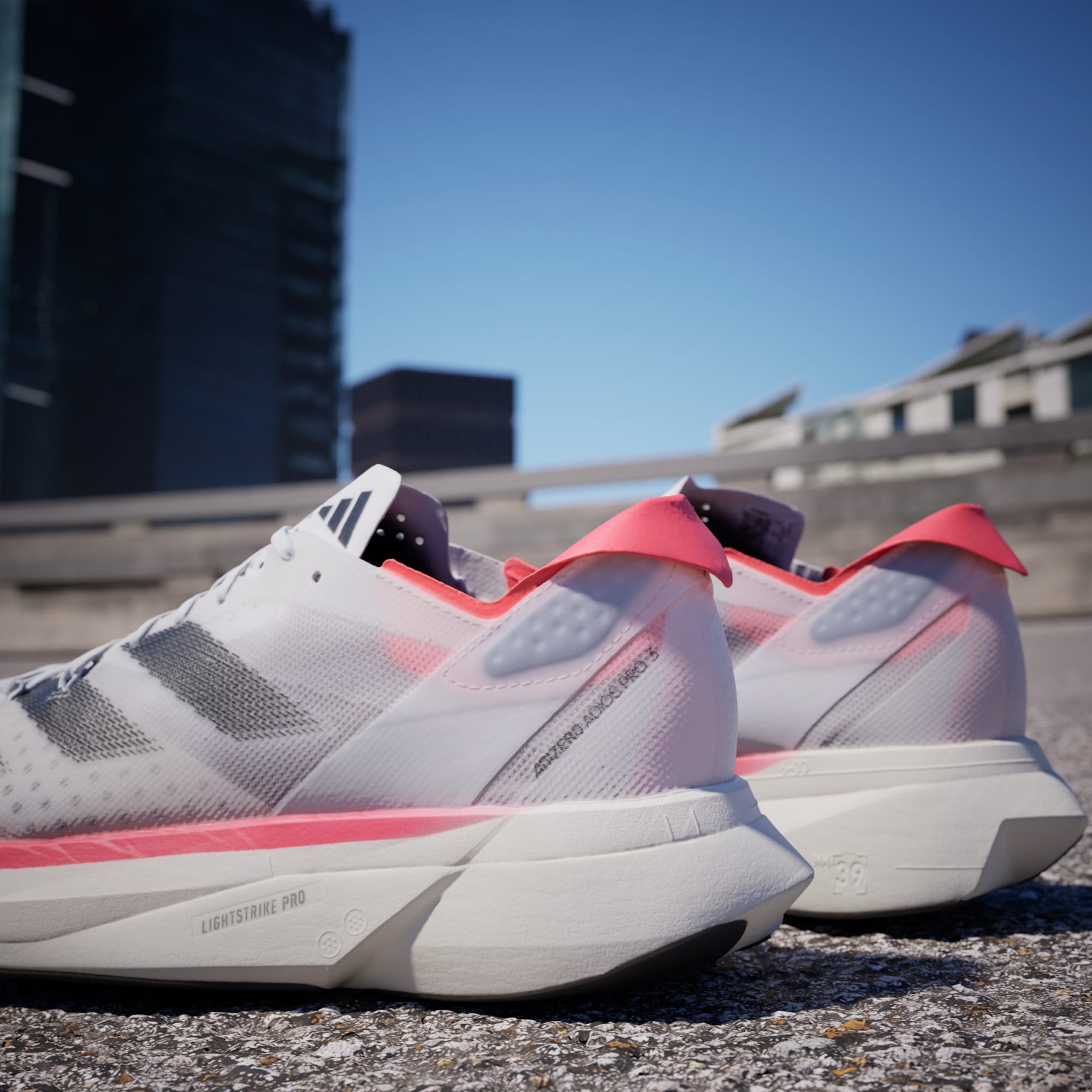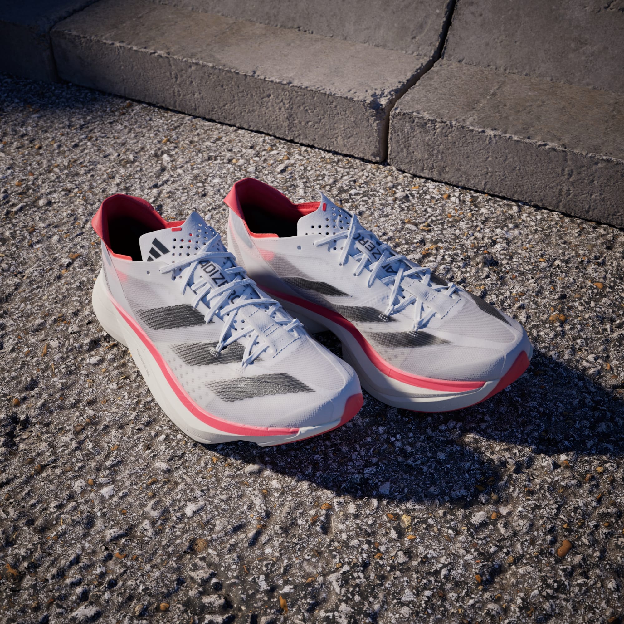O Adizero Adios Pro 3 é o expoente máximo dos produtos Adizero Racing. Foi projetado com e para atletas, visando alcançar feitos extraordinários. Seu objetivo é maximizar a eficiência durante a corrida. Nossos ENERGYRODS 2.0 com infusão de carbono proporcionam leve rigidez para uma passada mais ágil e eficiente. O Ultralight LIGHTSTRIKE PRO amortece cada passo com duas camadas da nossa espuma mais resistente, ajudando você a manter a energia a longo prazo. Tudo isso sobre uma fina camada de solado de borracha têxtil para tração extraordinária em condições secas e úmidas.