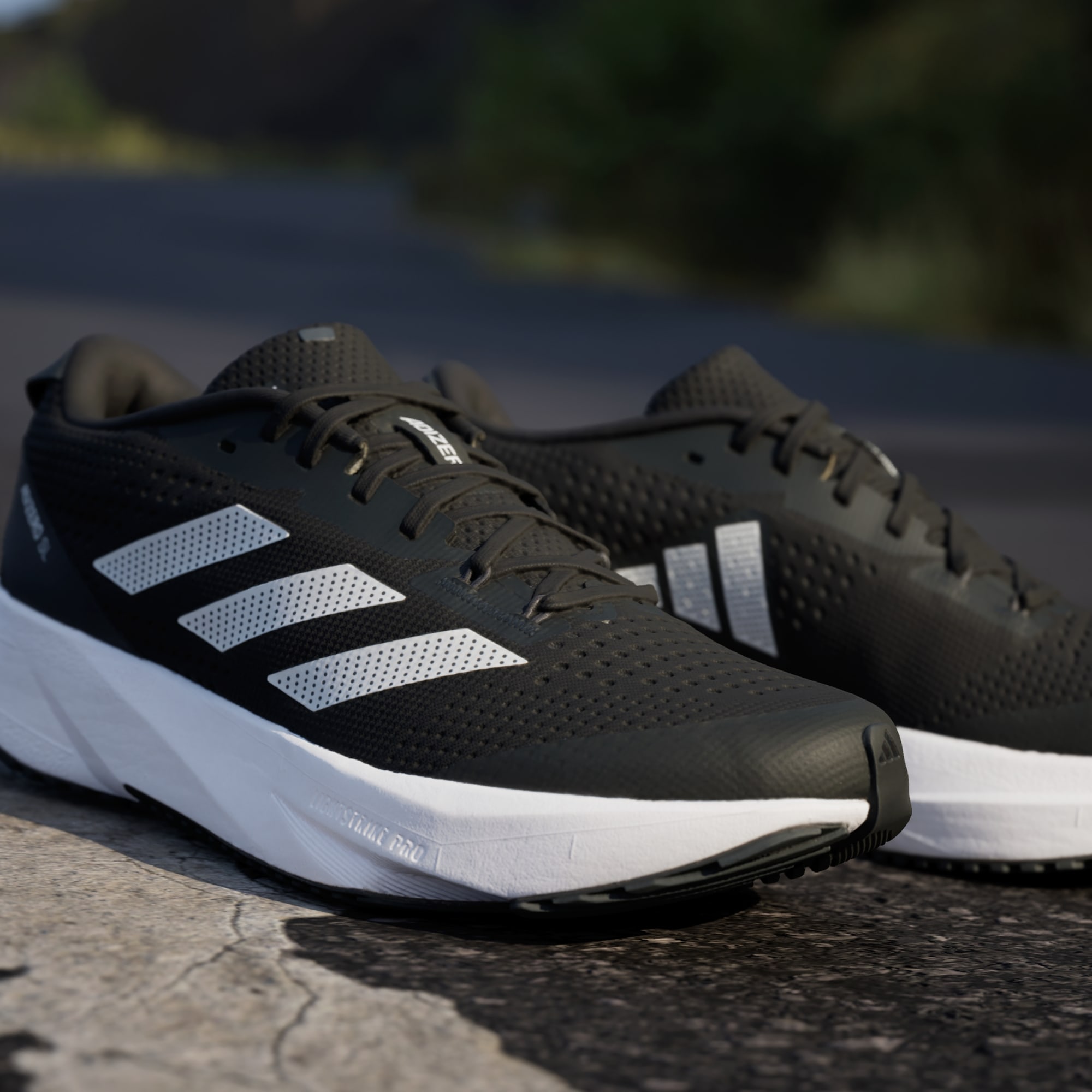 A espuma LIGHSTRIKE PRO, também usada nos modelos recordistas Adizero Adios Pro, é estrategicamente posicionada na parte frontal para as suas corridas mais rápidas.