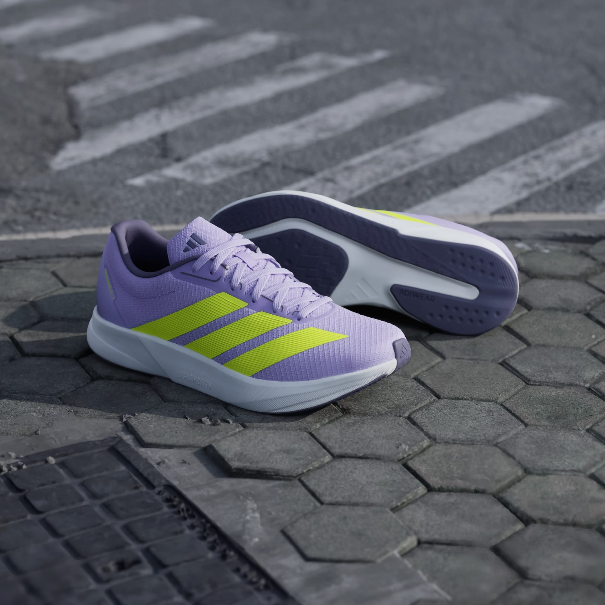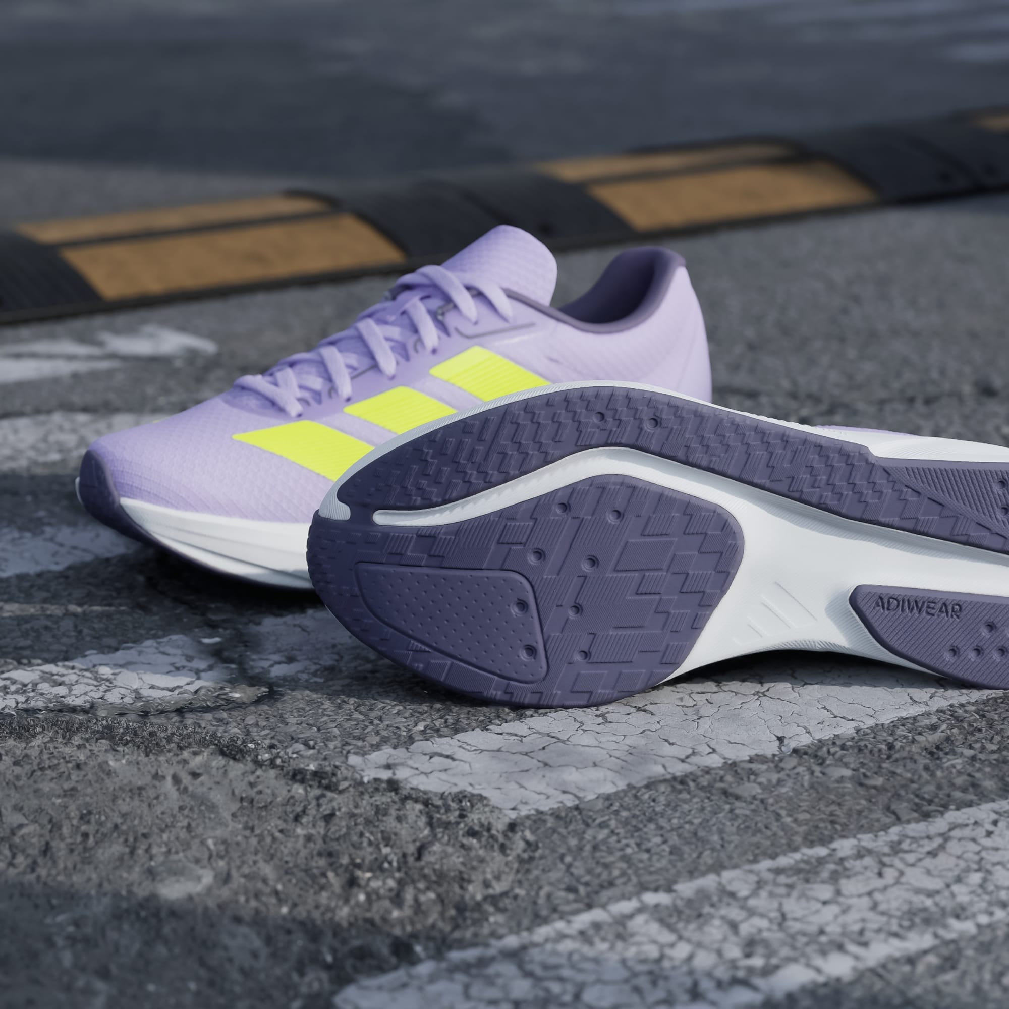 Tênis leve com solado Adiwear durável para uma transição sem costura.