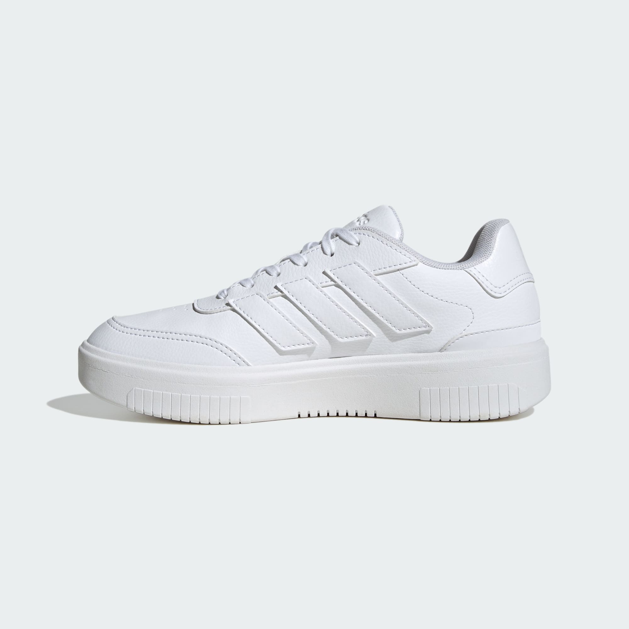 Divertido e moderno, este tênis adidas oferece um estilo ousado que nunca é demais. A entressola sobreposta oferece um pouco mais de altura, enquanto o cabedal sintético e o cupsole de borracha se unem para conforto o dia todo. Seja combinando com seu jeans favorito ou com um vestido casual, este tênis ajuda você a marcar presença de forma sutil.