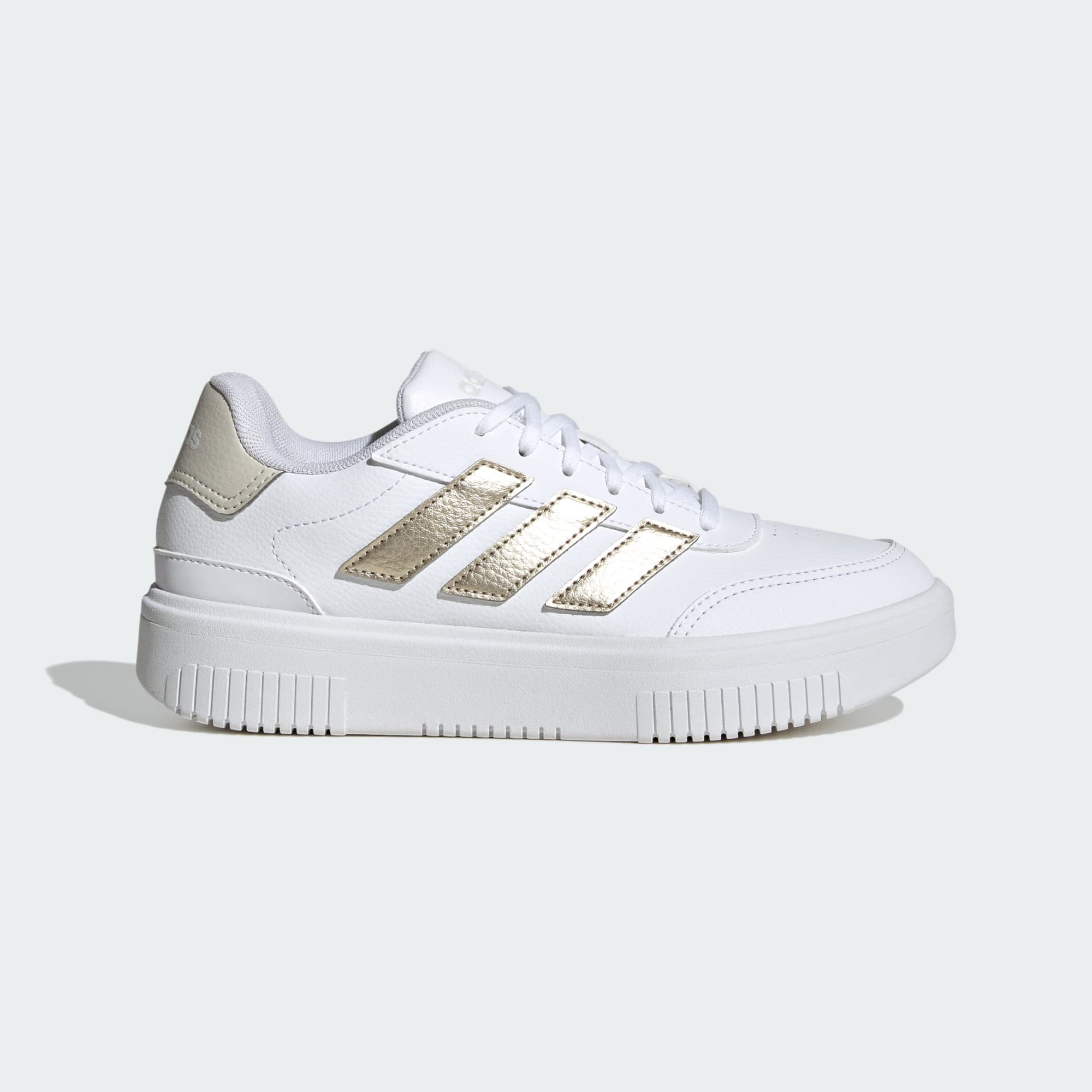 Divertido e moderno, este tênis adidas oferece um estilo ousado que nunca é demais. A entressola sobreposta oferece um pouco mais de altura, enquanto o cabedal sintético e o cupsole de borracha se unem para conforto o dia todo. Seja combinando com seu jeans favorito ou com um vestido casual, este tênis ajuda você a marcar presença de forma sutil.