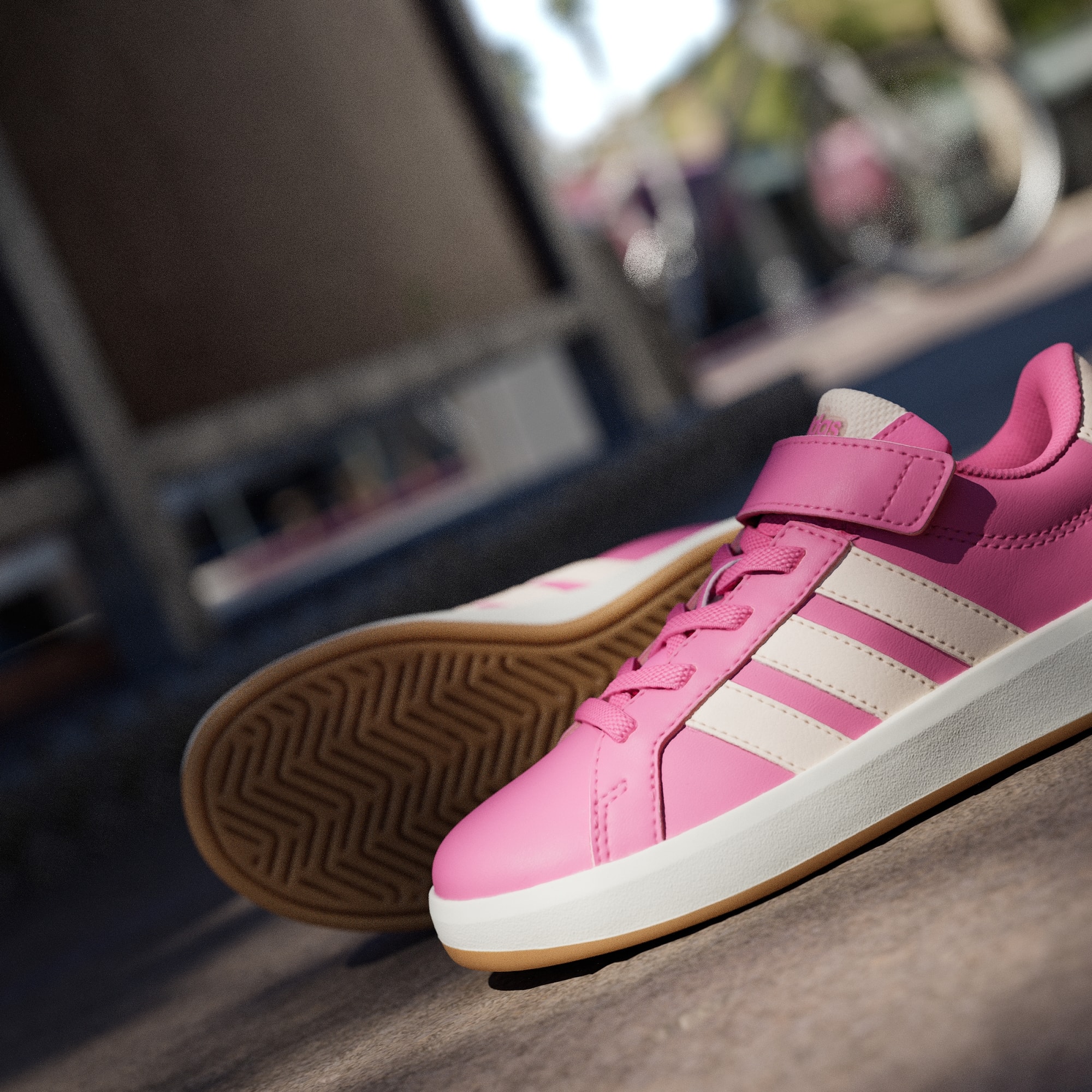 Estes tênis trazem uma atualização moderna para o icônico adidas Grand Court, oferecendo conforto aprimorado em um design que as crianças vão adorar. As brincadeiras continuam divertidas e as corridas escolares são mais rápidas graças aos cadarços elásticos que são fáceis de calçar e de tirar. Uma ponta do pé flexível dá um impulso aos passos dos jovens, com uma tira superior para garantir um ajuste confortável e estável. Os pais apreciarão o cupsole de borracha que não deixa marcas, com a qual você também pode contar para ter aderência e durabilidade. Elegante, porém resistente, estes tênis priorizam o estilo e a funcionalidade. A marca é a assinatura do visual clássico. Os logotipos no solado, no calcanhar e na língua agradarão aos jovens fashionistas, enquanto as Três Listras coloridas nos lembram que estes tênis foram feitos para a diversão.