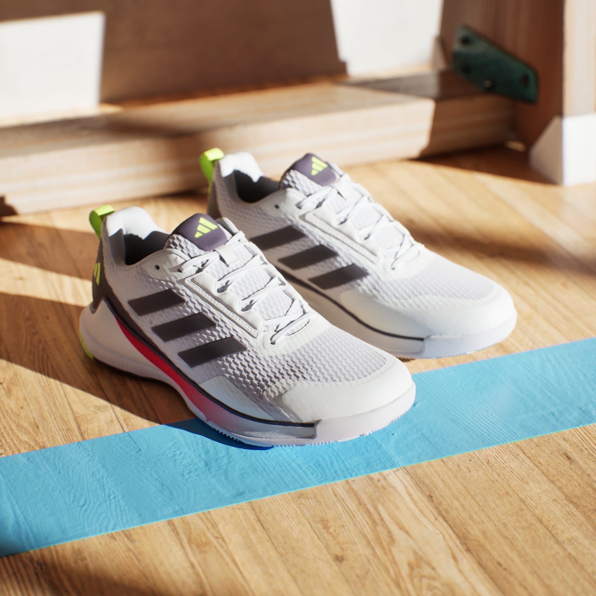 Esqueça pisar na quadra. Voe com este tênis indoor adidas. O cabedal macio, a língua e o colarinho acolchoados envolvem seus pés com conforto, para que você possa se concentrar em uma coisa: a vitória. A entressola em EVA proporciona amortecimento leve e suporte para cortes e saltos laterais rápidos. No calcanhar, a tecnologia Lightstrike absorve o impacto, além de ser responsiva, impulsionando seu primeiro passo com propósito. Por baixo, o solado Adiwear que não deixa marcas adere a superfícies internas para controle absoluto. Este produto contém pelo menos 20% de materiais reciclados. Ao escolher o reciclado, podemos reutilizar materiais já criados, o que ajuda a reduzir o desperdício e a nossa dependência de recursos finitos, além de reduzir a pegada dos produtos que fabricamos.