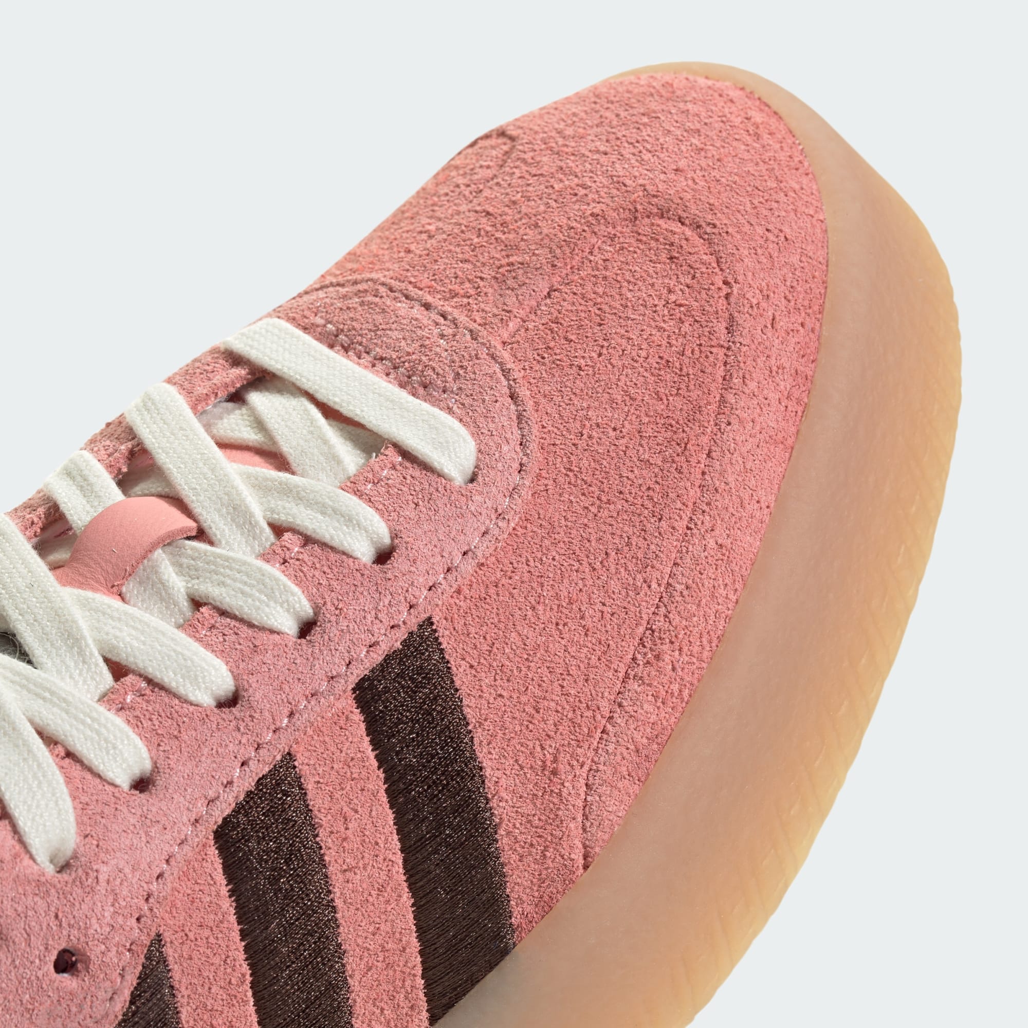 O icônico Samba, modernizado com um solado elevado e Três Listras bordadas.