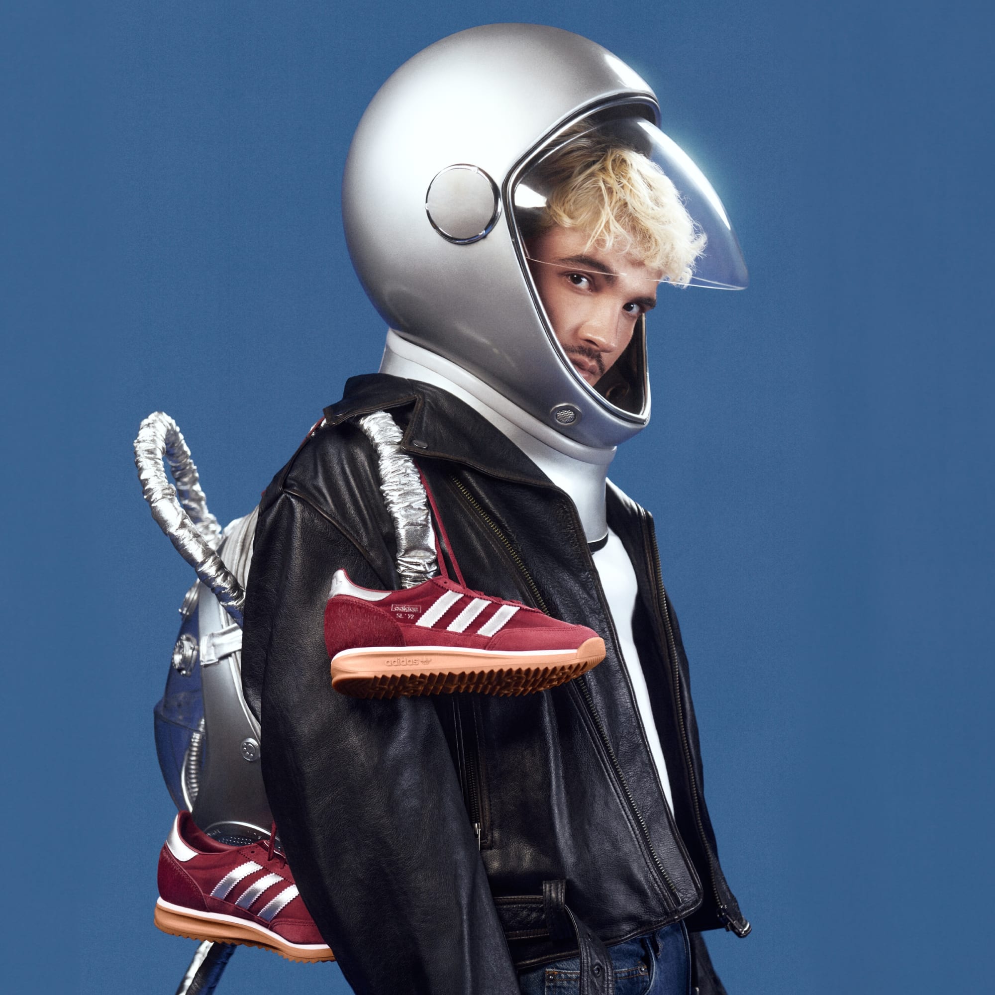 adidas e Jão em mais uma co criação! Em edição limitada, o tênis SL 72 Space Cowboy chegou. Inspirado pelo retrô futurista, o tenis traz elementos prateados que remetem ao espacial e as cores burgundy e textura da tendência western. Além disso, o tenis ainda tem uma cor extra de cadarço.
