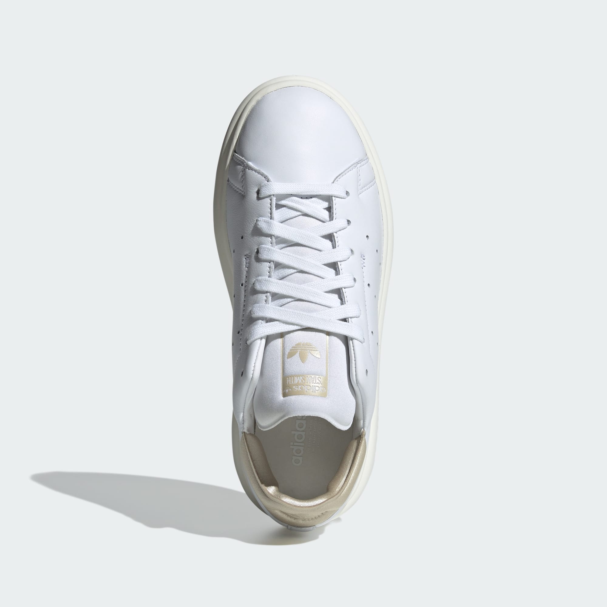 Expressando estilo e conforto o dia todo, este tênis Stan Smith PF eleva o ícone retrô a um novo patamar da moda casual. Confeccionada com cabedal de couro clean, costura distinta e minimalista e as icônicas Três Listras perfuradas, esta versão é colocada sobre um cupsole de borracha elevado que amortece e envolve seus pés. Sua silhueta atemporal recebe uma atualização com os logos dourados e prateados e um efeito brilhante e metálico no calcanhar, oferecendo uma versão feminina do clássico de todos os tempos. Combine este tênis com praticamente tudo, desde saias e vestidos até jeans ou joggers, passando o dia com propósito e elegância.
